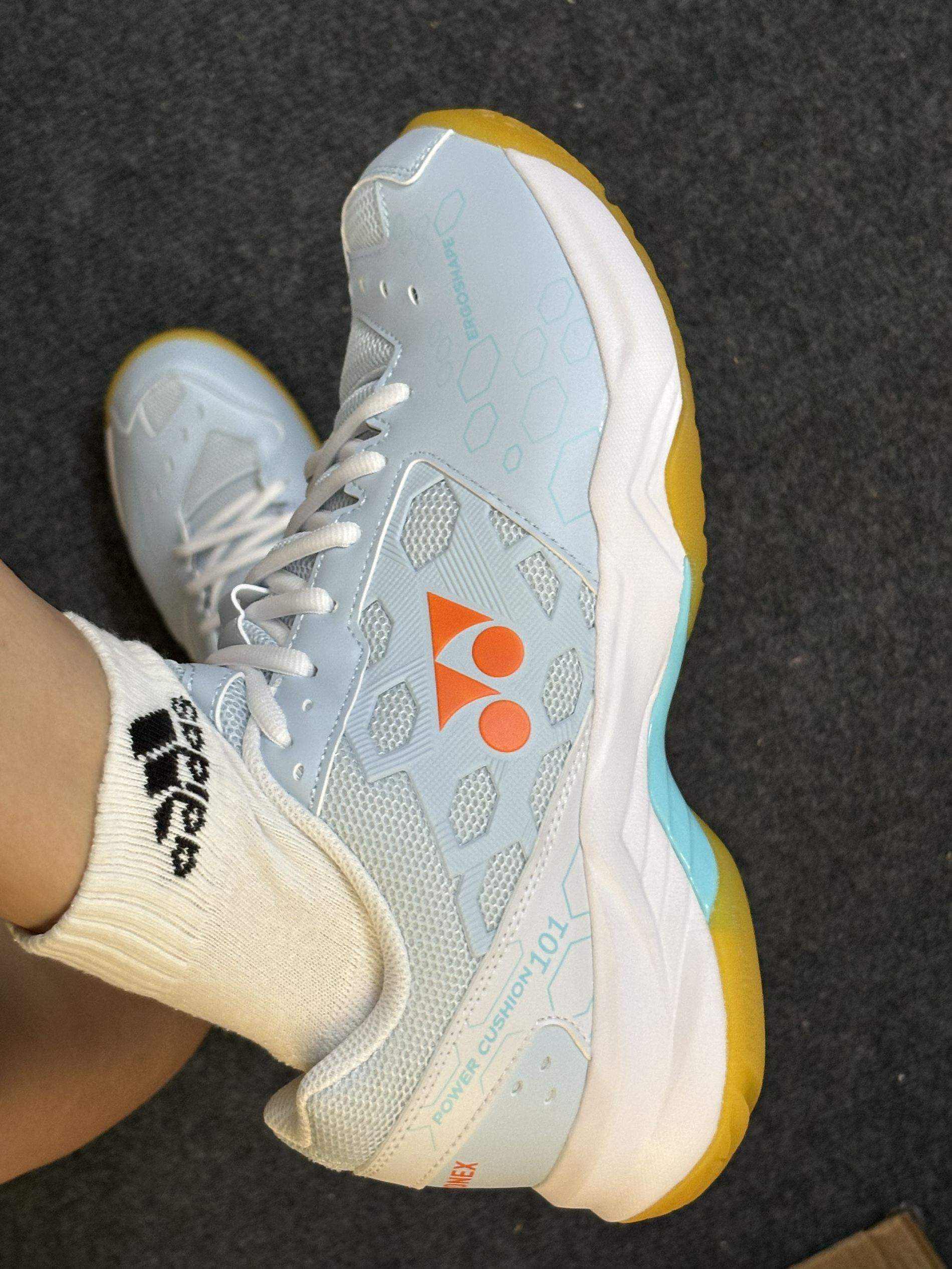 本篇笔记关联了YONEX/尤尼克斯 Power Cushion 101系列 羽毛球鞋 系带减震稳定轻便训练包裹性轻量圆头回弹合成革 淡蓝色等商品,为用户提供真实的使用体验和购买参考。