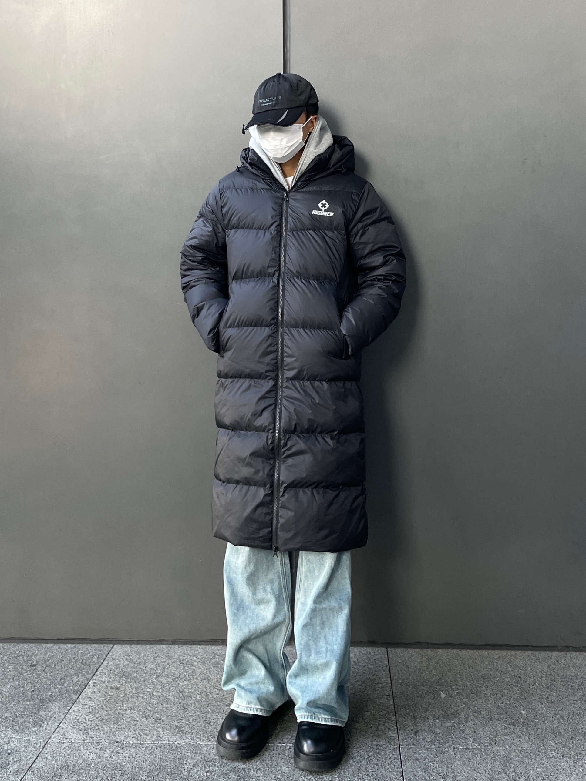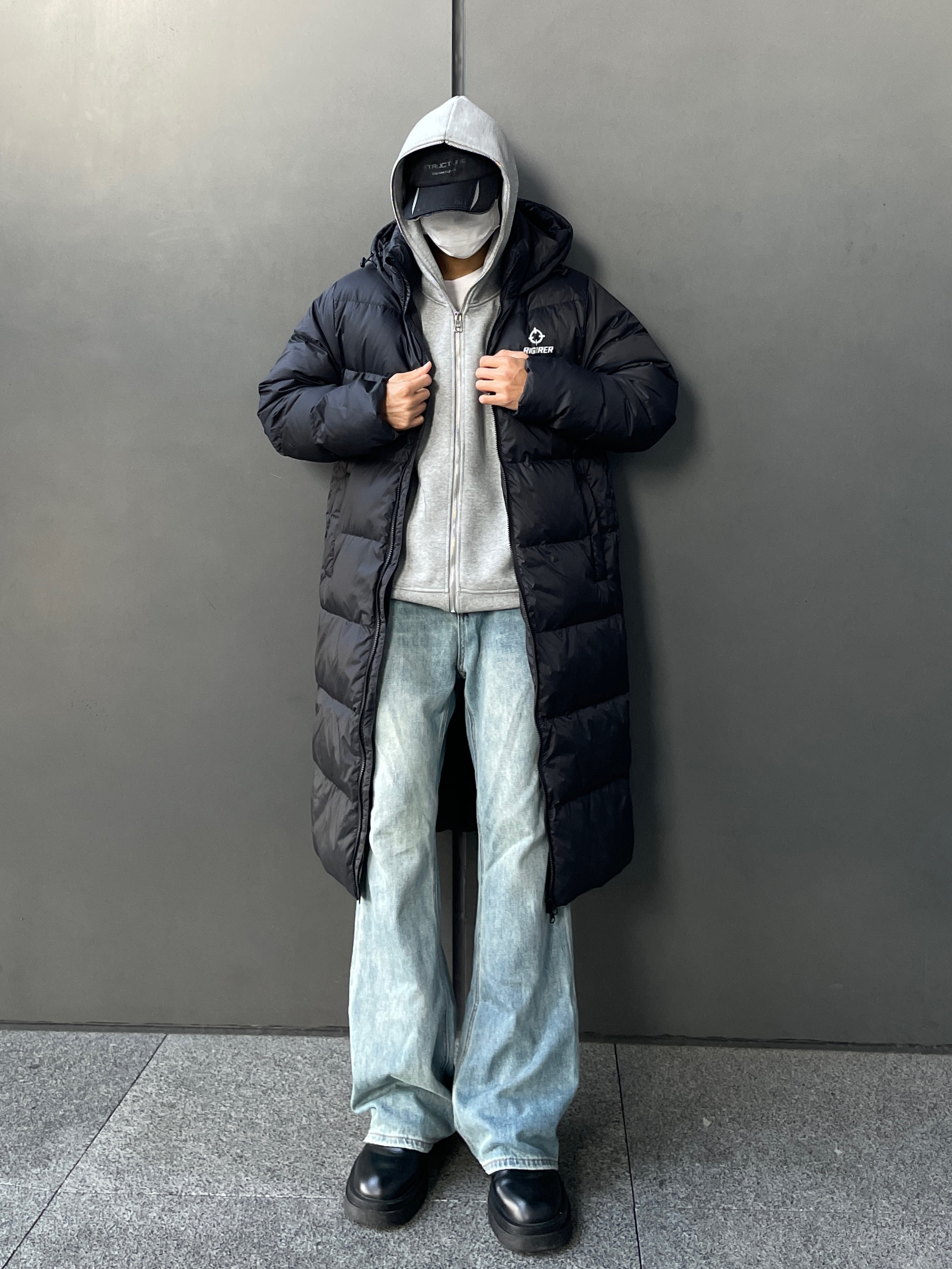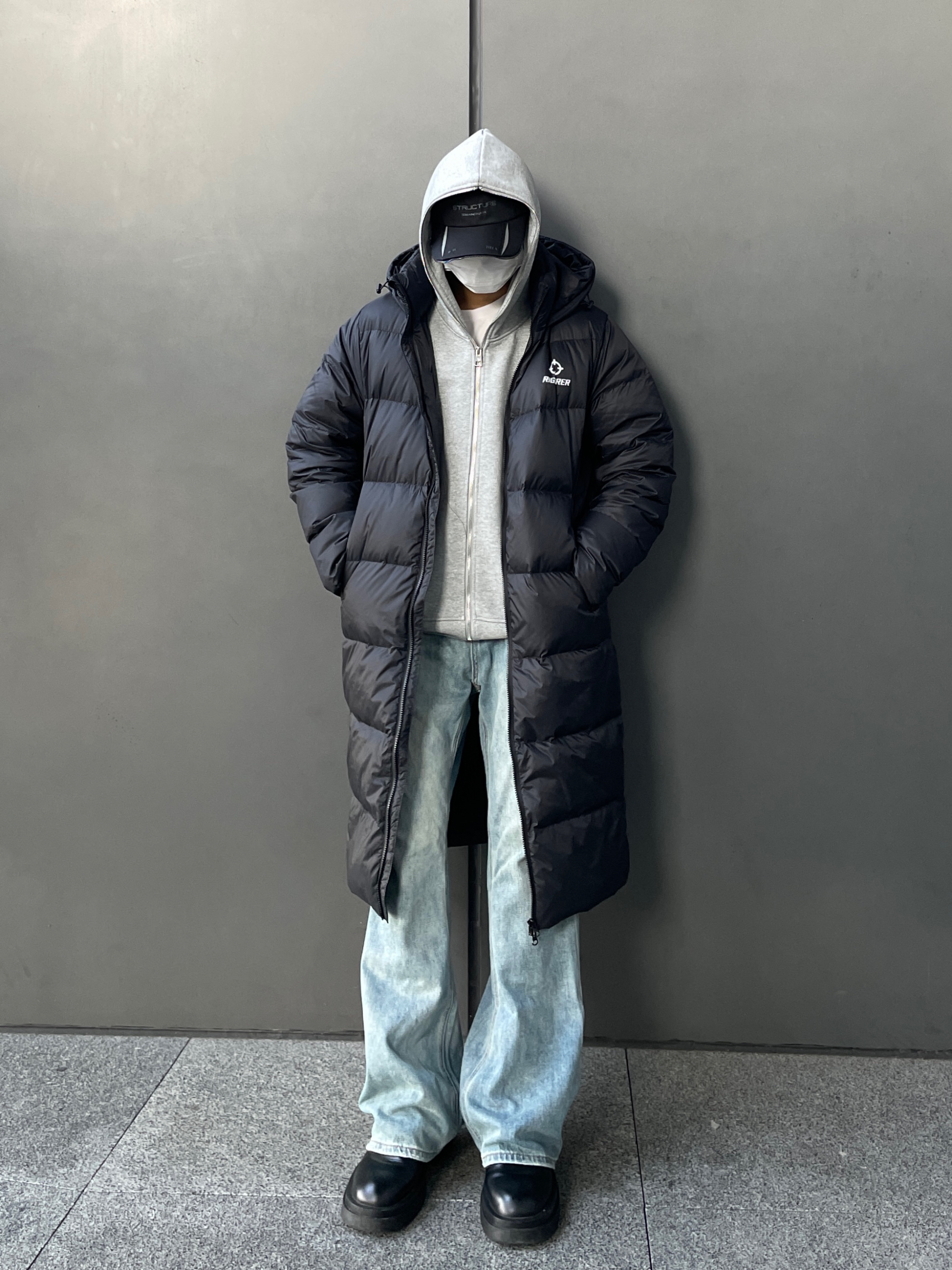 🧍♂️ 穿搭风格:高校风 👔 上衣:准者长款羽绒服 👖 下装:微喇牛仔裤 👟 鞋子:德比