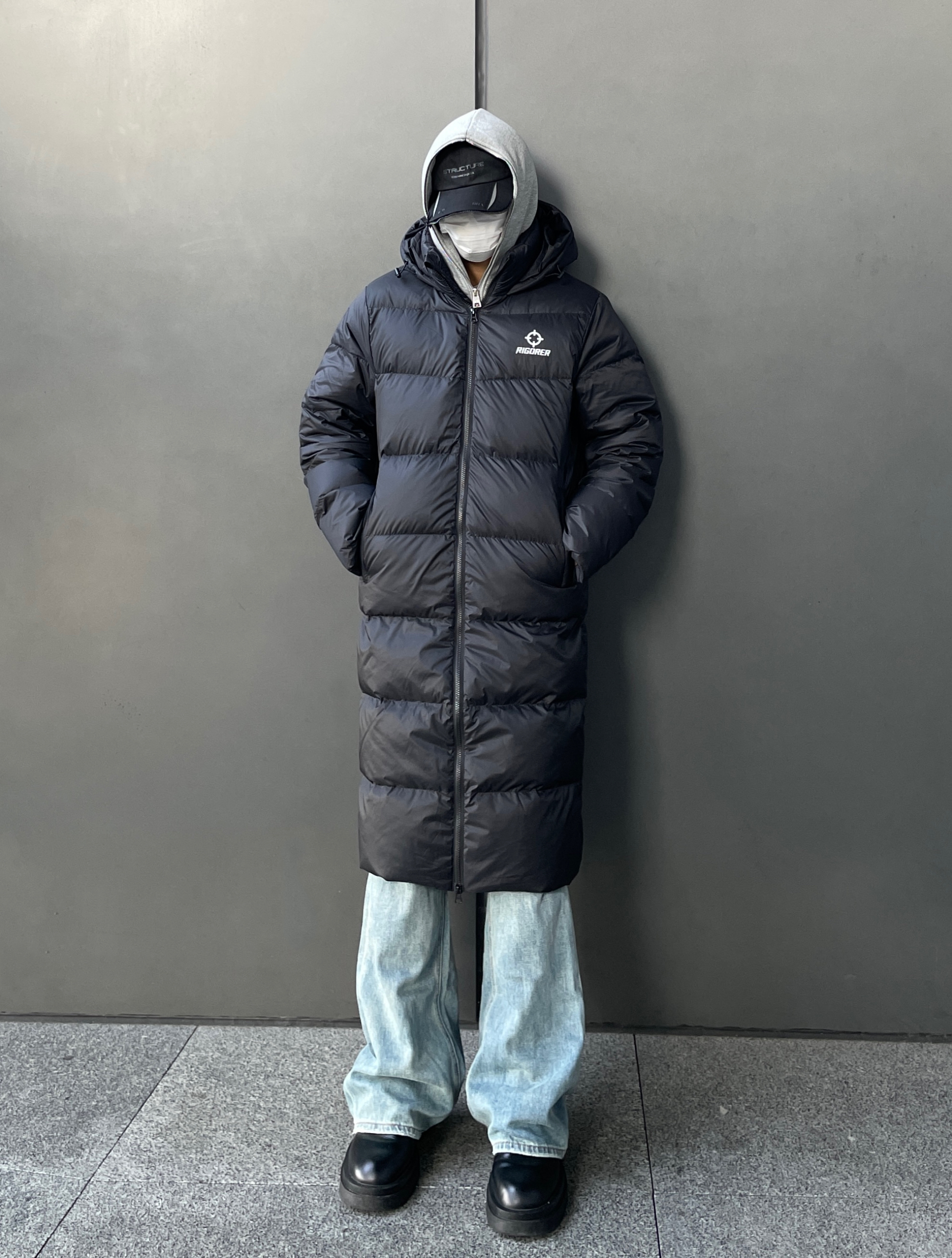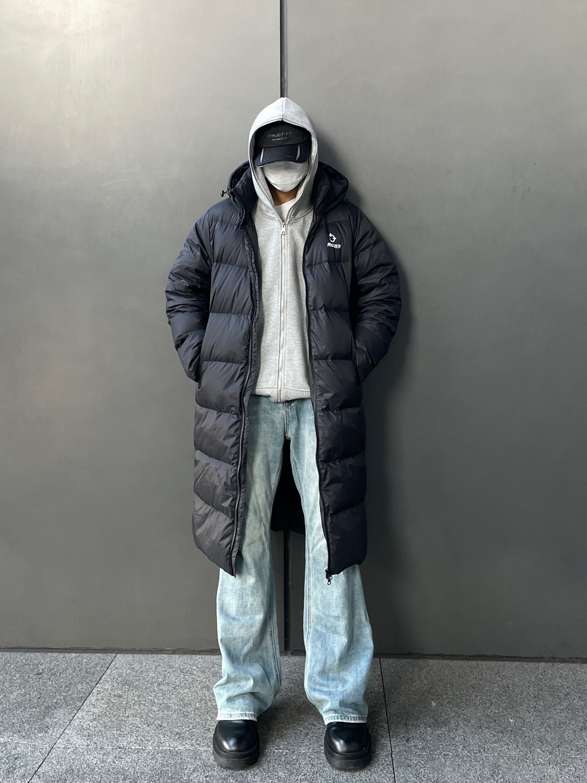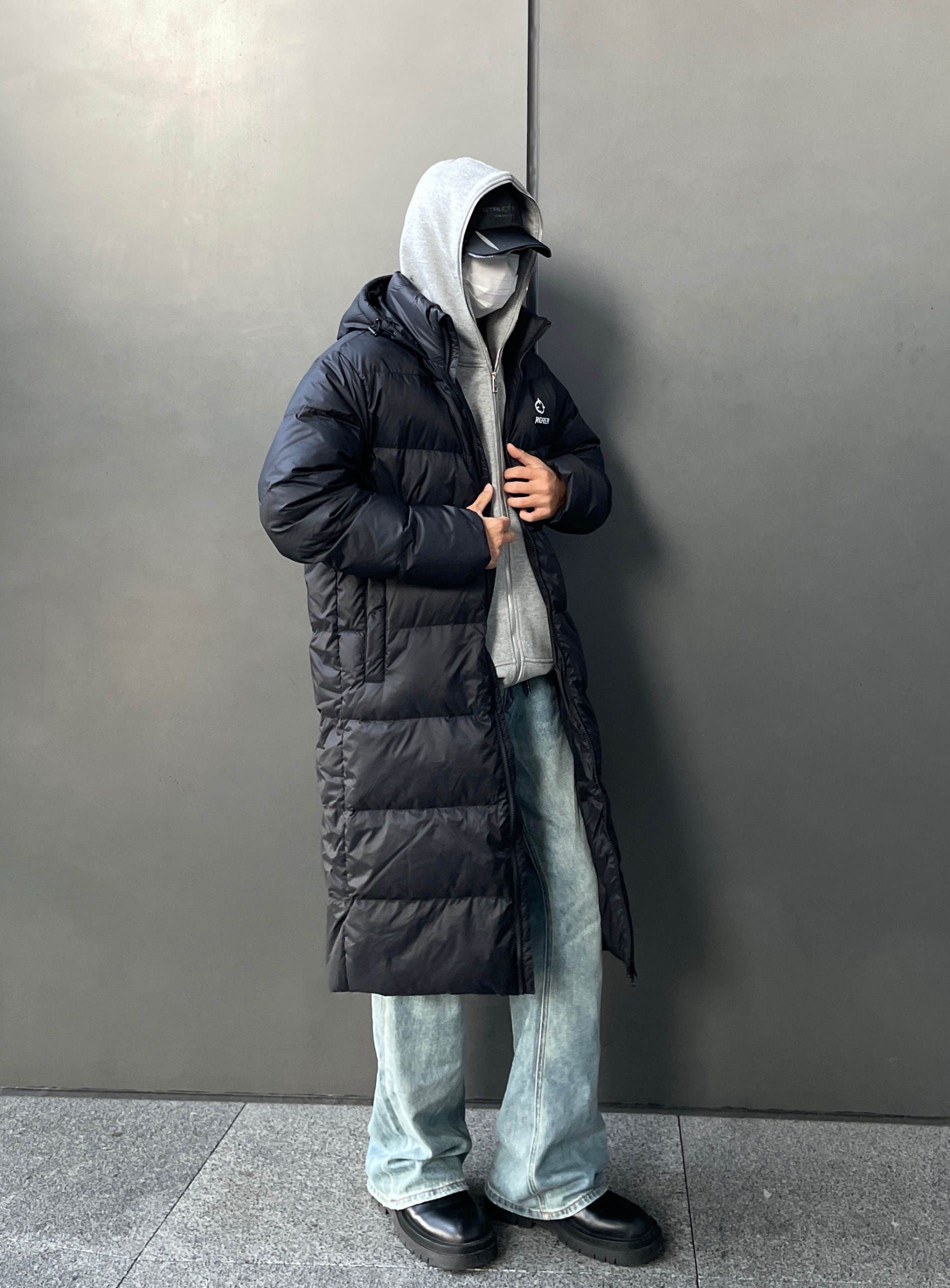 🧍♂️ 穿搭风格:高校风 👔 上衣:准者长款羽绒服 👖 下装:微喇牛仔裤 👟 鞋子:德比