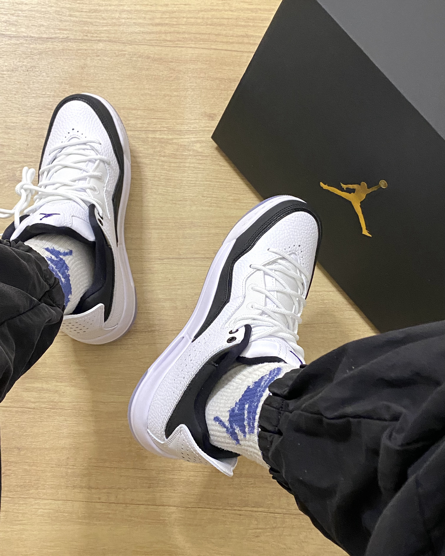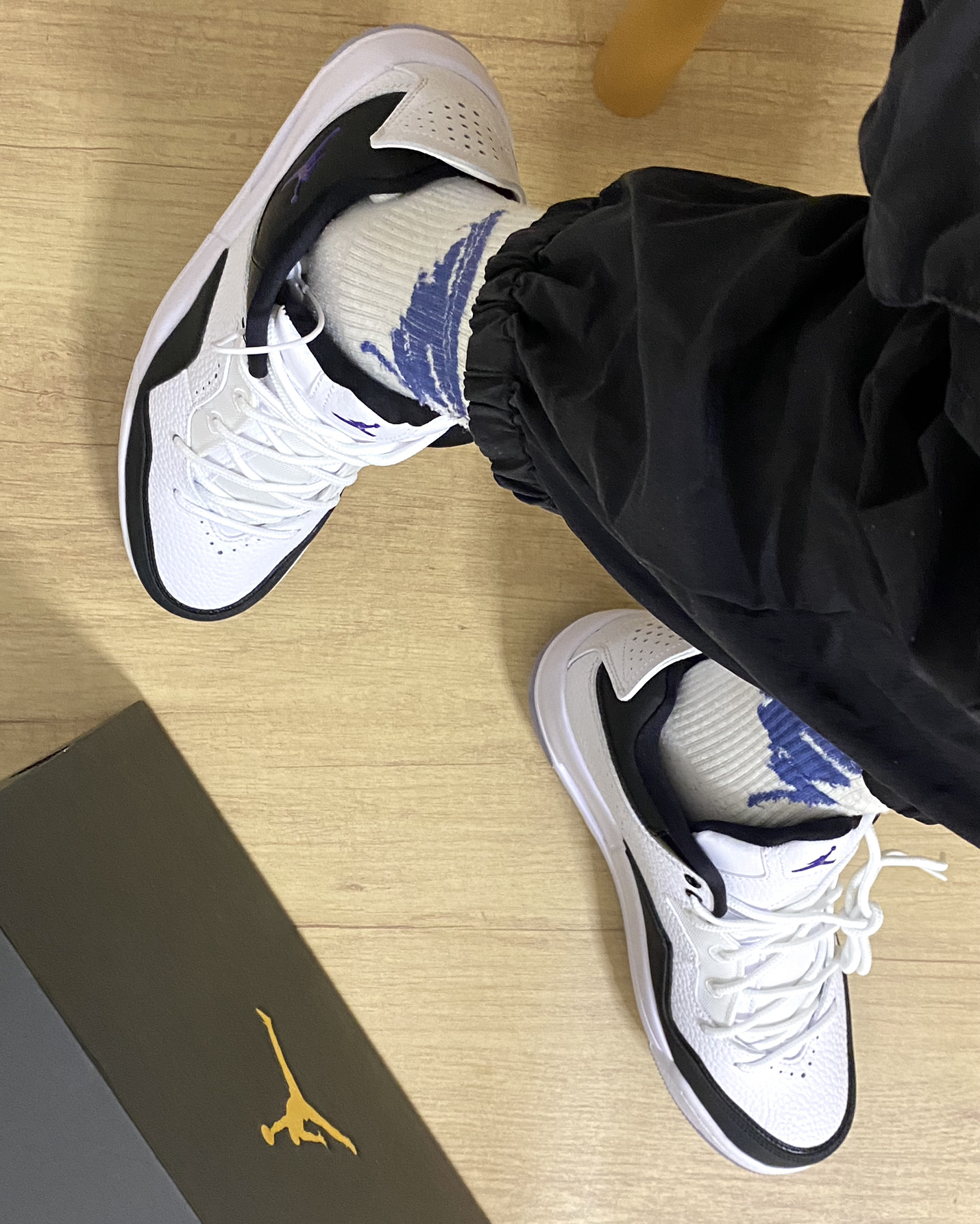 AIR JORDAN COURTSIDE 23运动休闲鞋板鞋 白黑拼接还带点奶紫色 上脚真的巨好看! 白色荔枝纹皮质鞋面 超级有质感 鞋帮和鞋舌都有小飞人logo点缀 鞋子包裹性很强很舒服 运动、出行穿搭超吸睛超百搭 对于aj这个价格真的很平价亲民 快快入手吧!!!