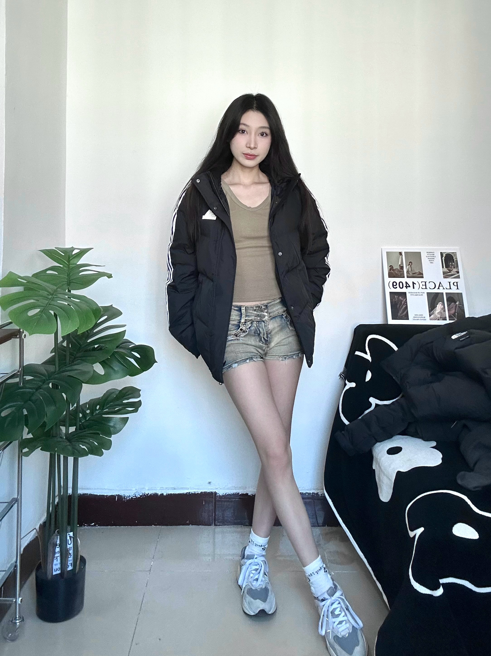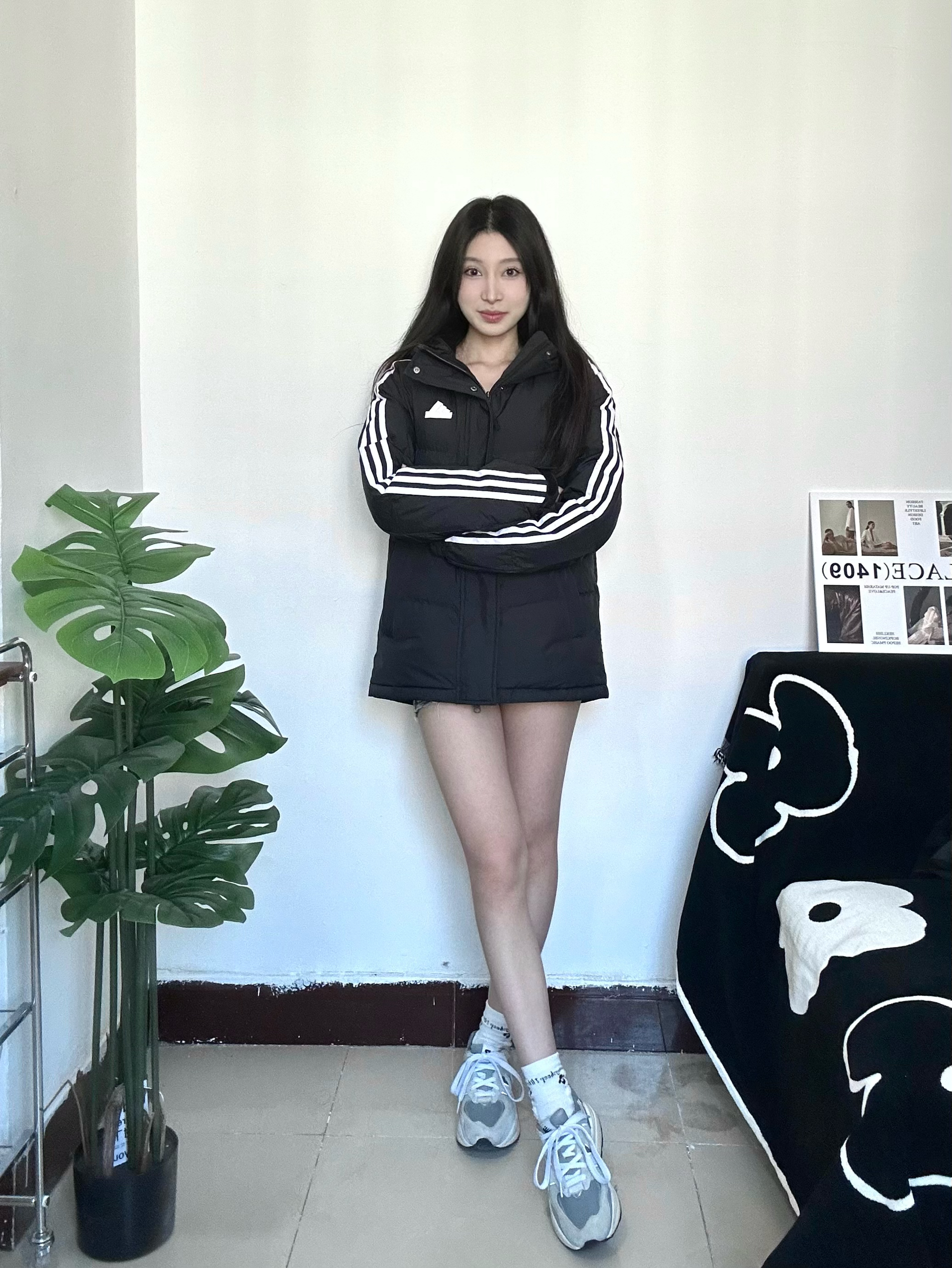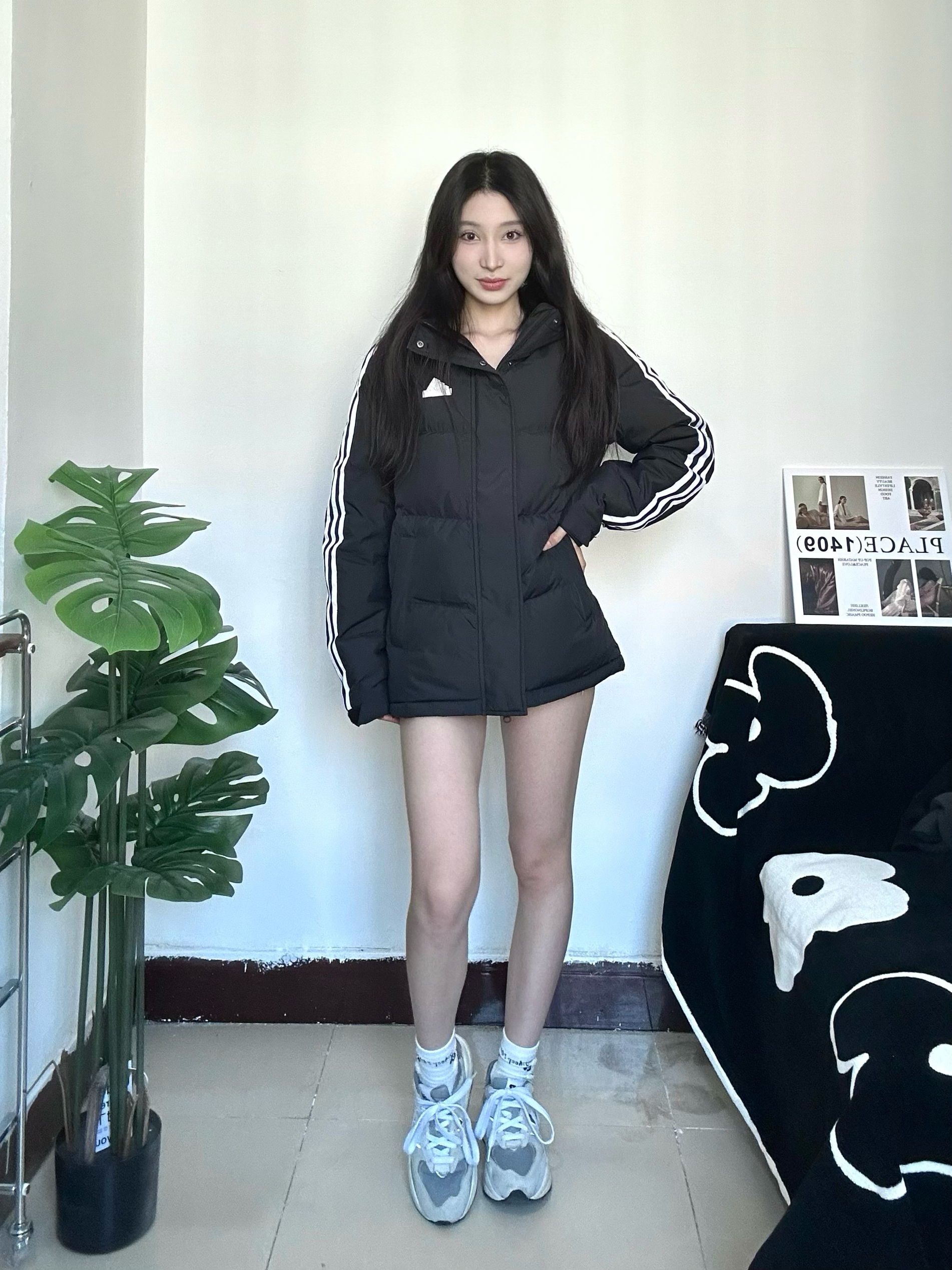 冬天也要穿好看亮眼哦 chao运动风的一身穿搭 厚厚的羽绒服很保暖又不显臃肿 黑色不仅简约也非常的耐脏 衣服很轻穿着没压力 搭配黑丝成熟又俏皮 全身非常休闲运动感满满 运动感十足校园回头率拉满 喜欢的宝快点下手哦