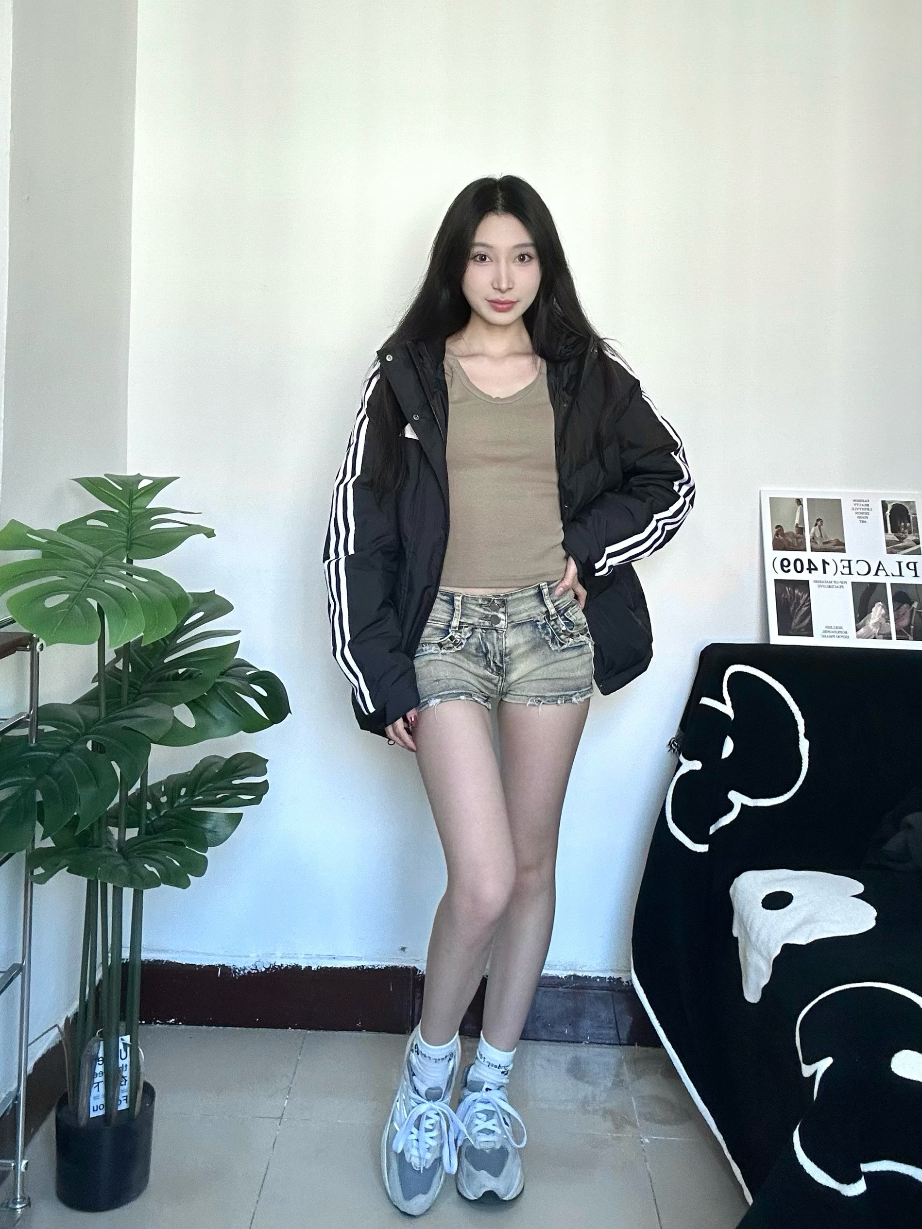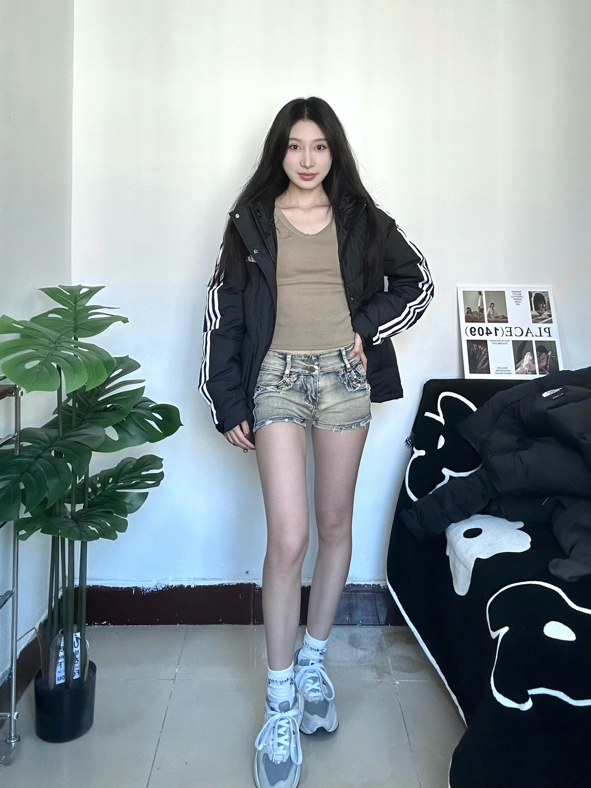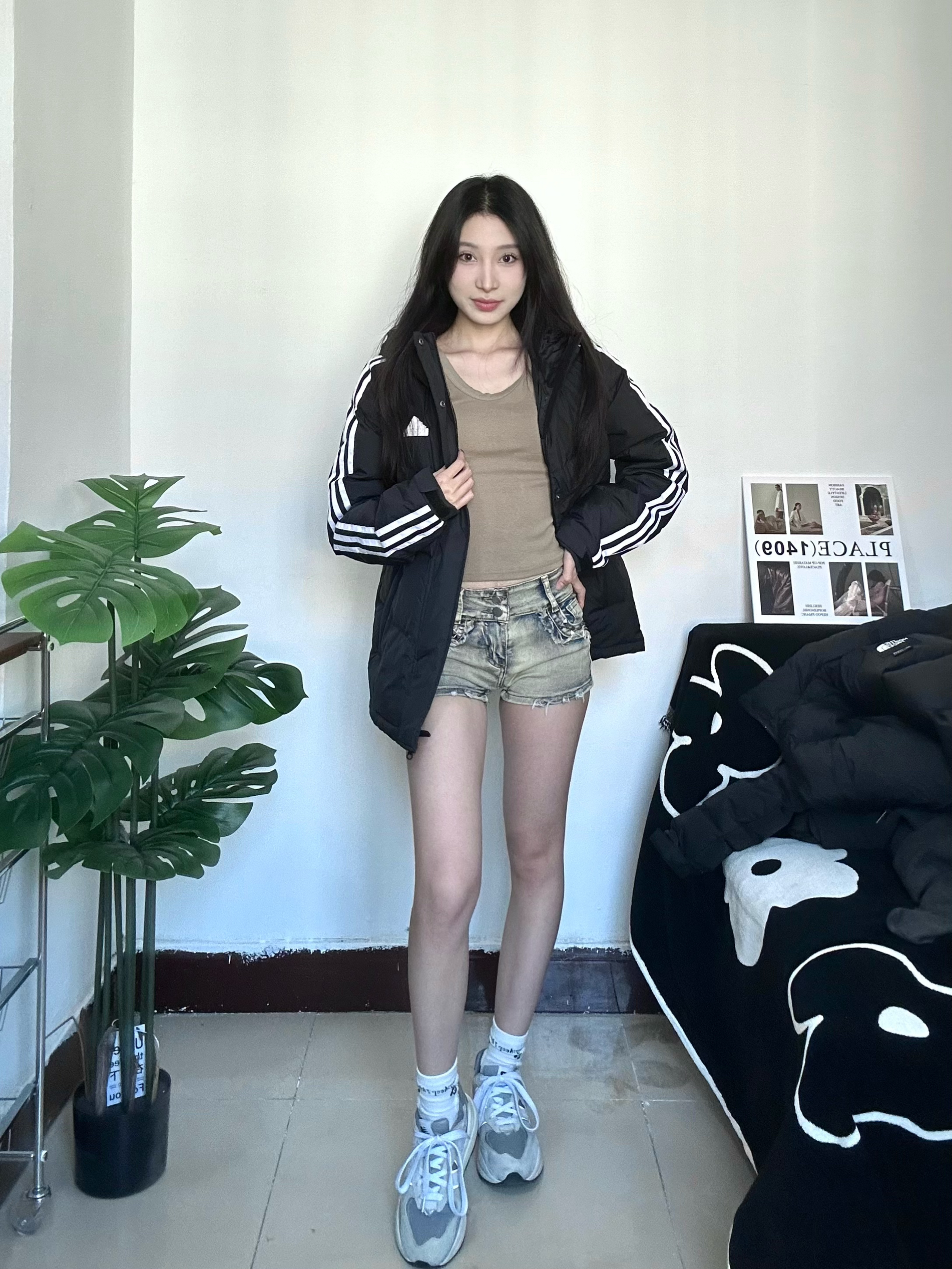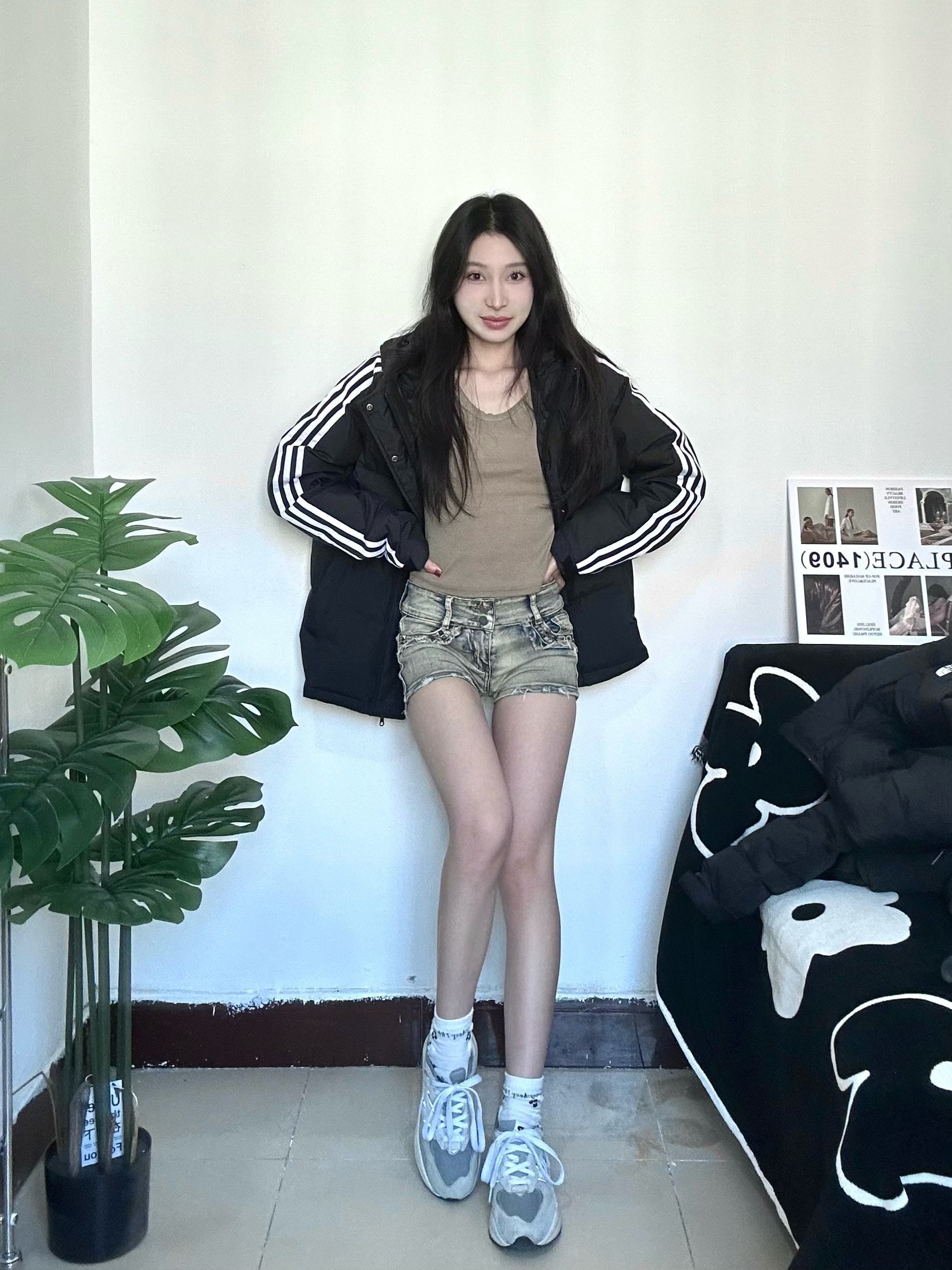 冬天也要穿好看亮眼哦 chao运动风的一身穿搭 厚厚的羽绒服很保暖又不显臃肿 黑色不仅简约也非常的耐脏 衣服很轻穿着没压力 搭配黑丝成熟又俏皮 全身非常休闲运动感满满 运动感十足校园回头率拉满 喜欢的宝快点下手哦