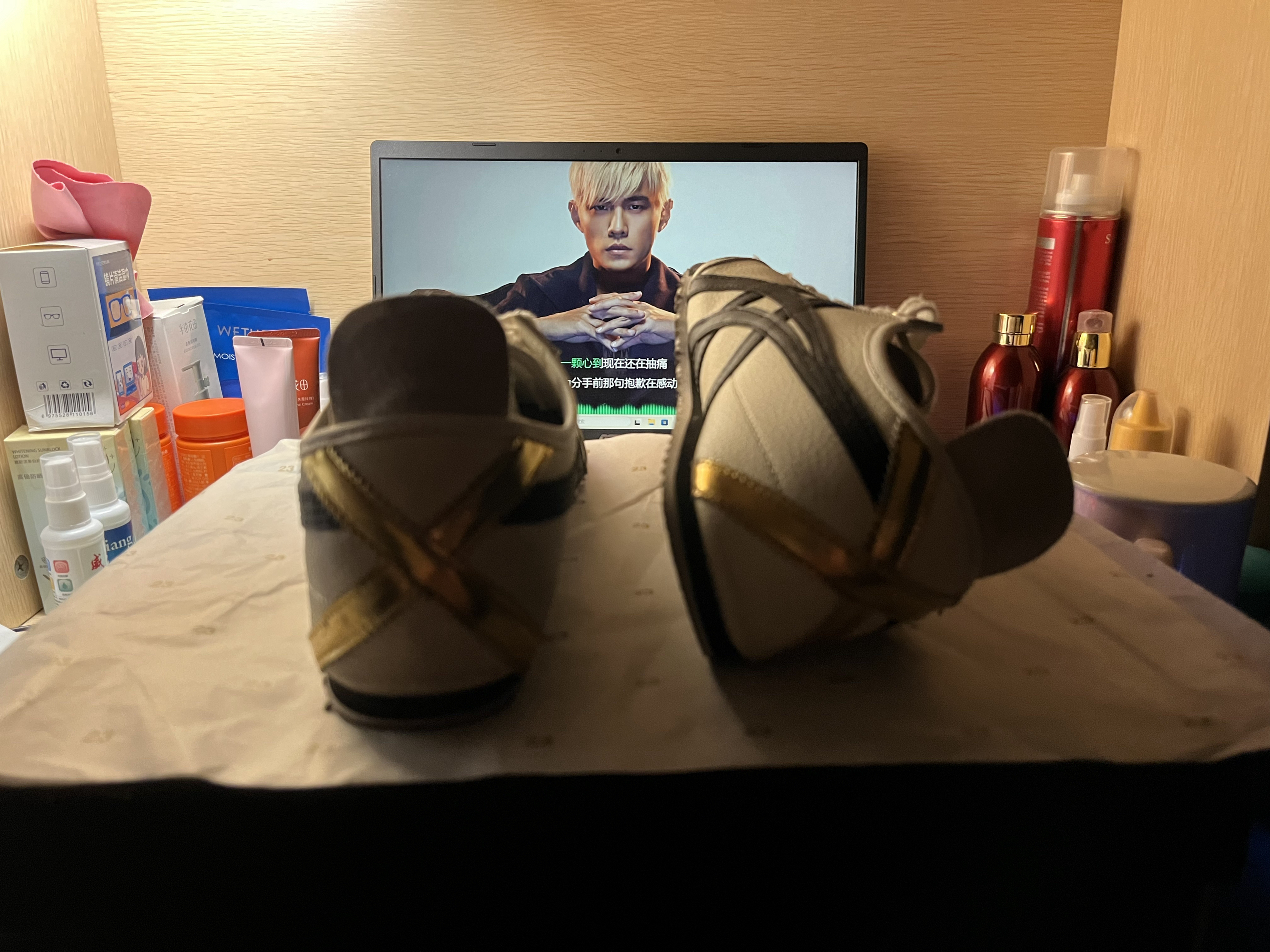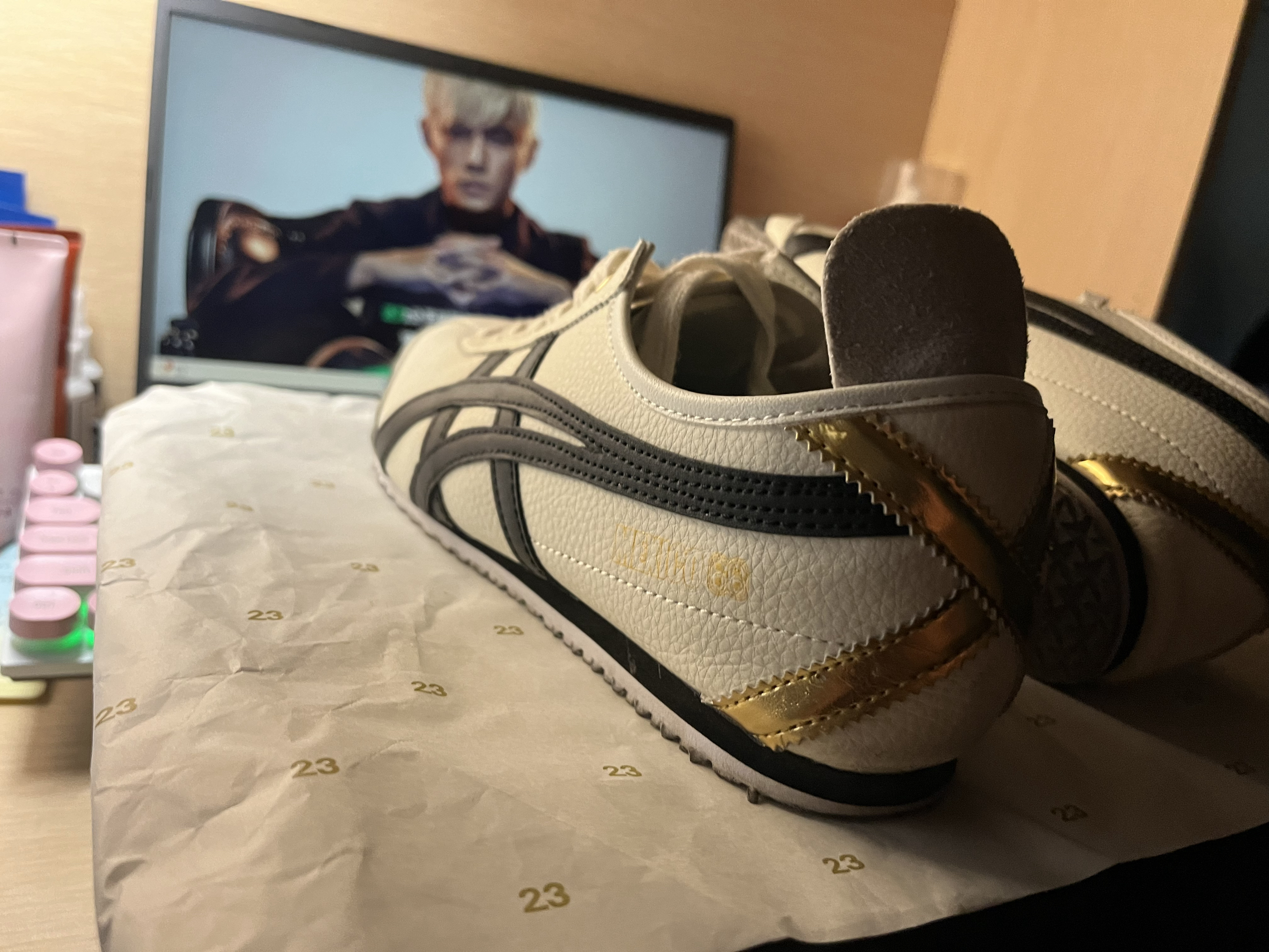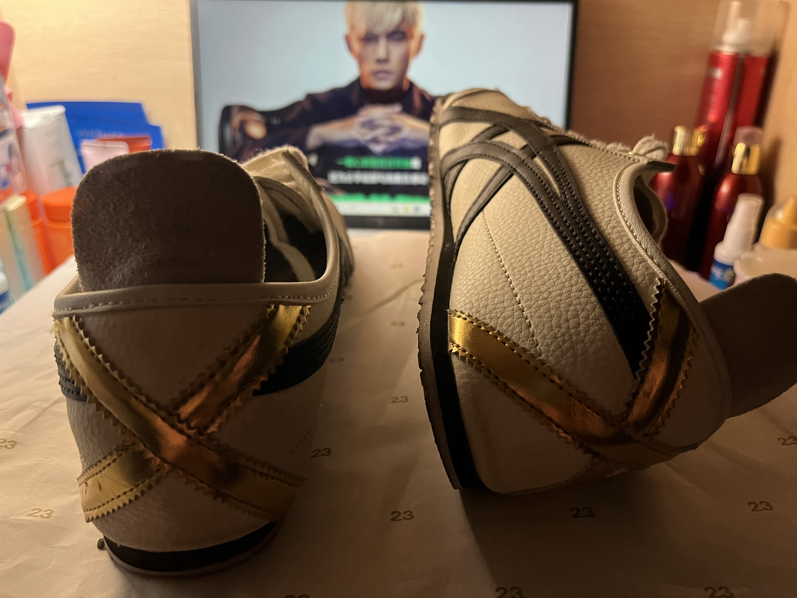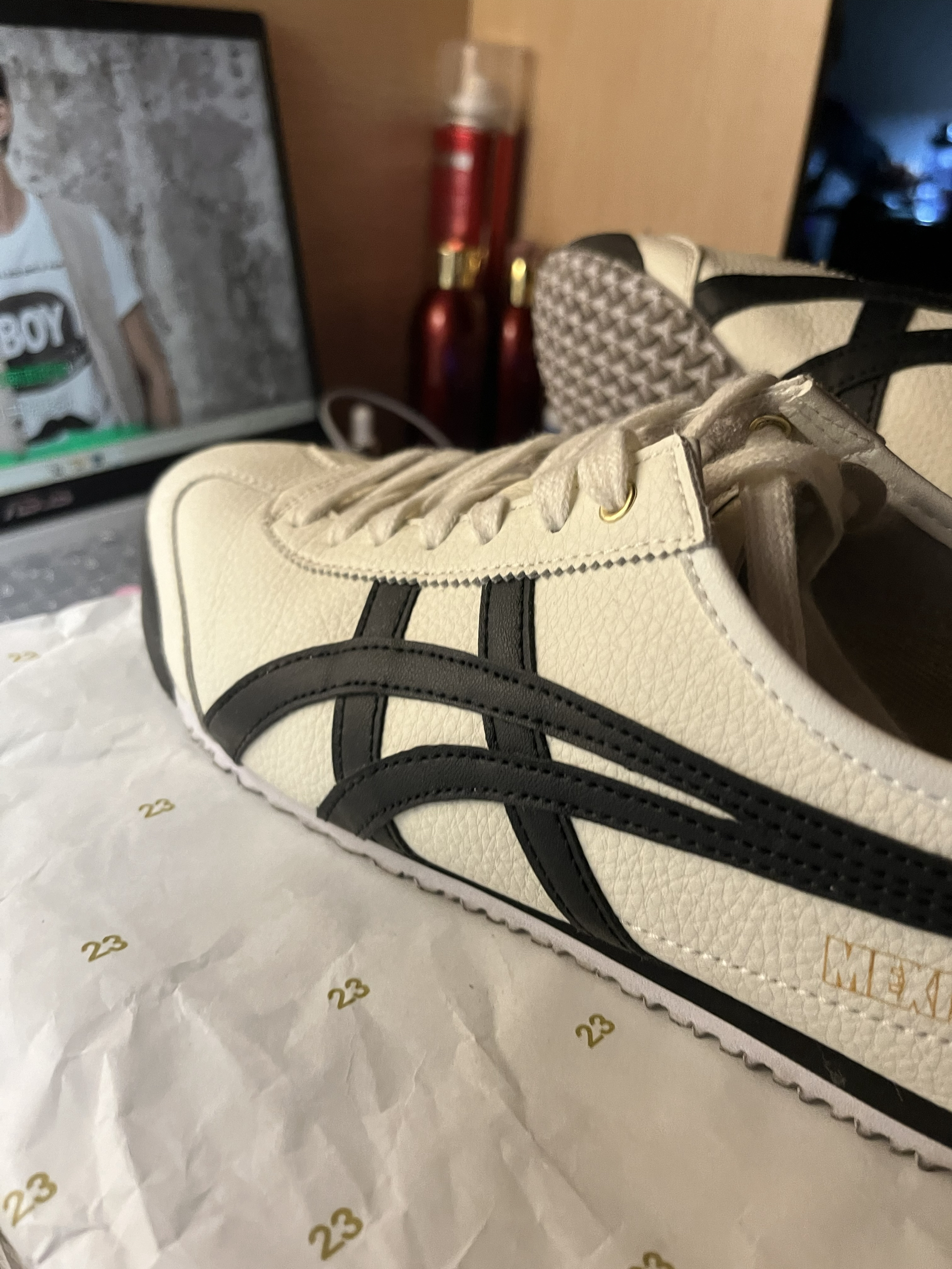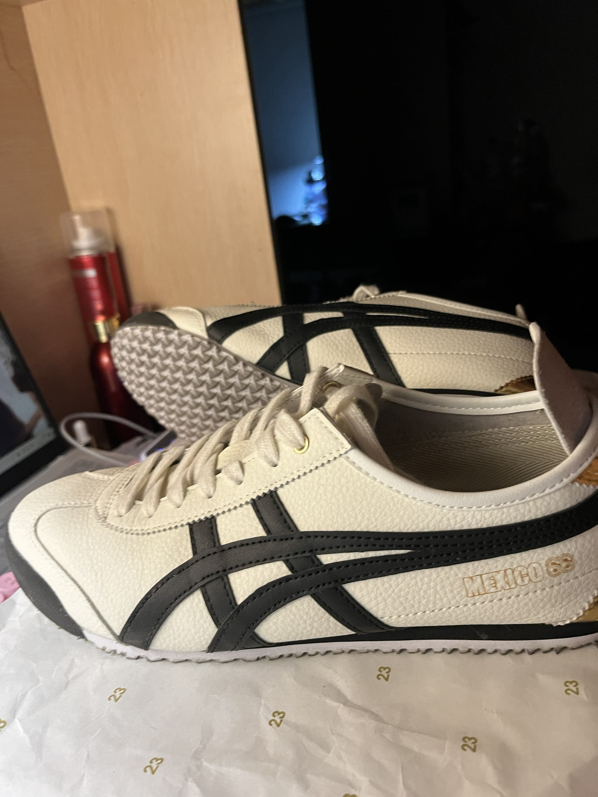 Onitsuka Tiger Mexico 66 复古 轻便透气 德训鞋 运动休闲鞋 黑色/灰色/烫金,我喜欢脚跟后面烫金的感觉,真的很喜欢。