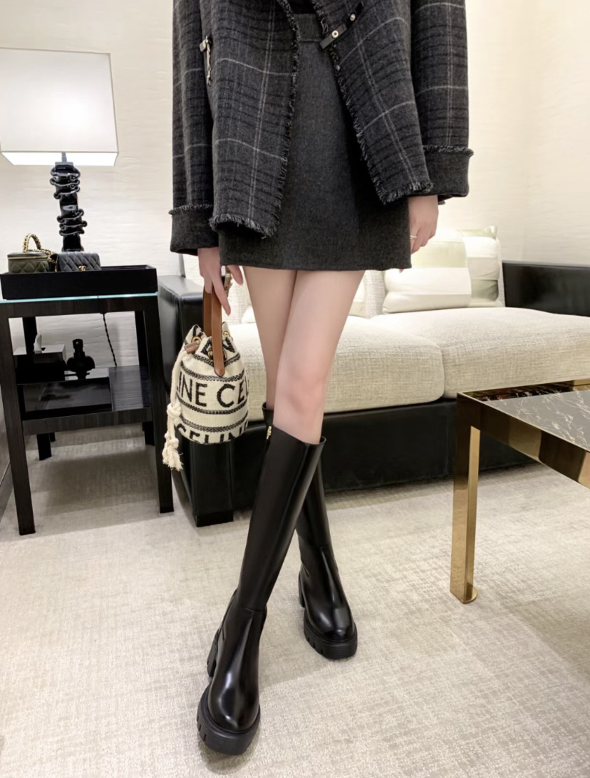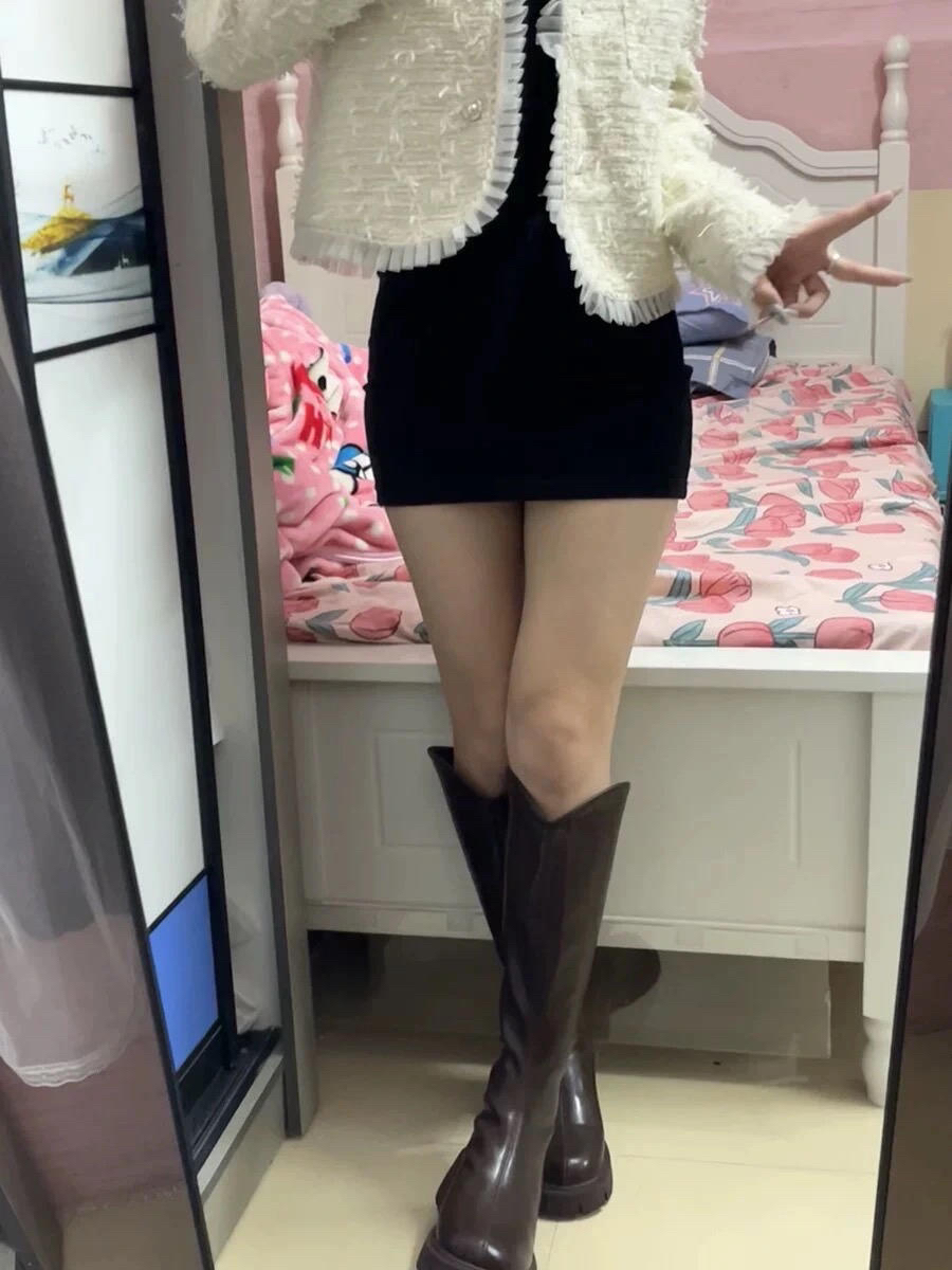跟着舍友买的棕色长筒靴👀 穿上真的很惊喜😍😍😍 V口设计✌️真的炒鸡显瘦显腿长家人们👍 靴👢筒也蛮贴合腿部的✅ 鞋子很好搭配很舒服😌 狠狠爱住了~💕💕