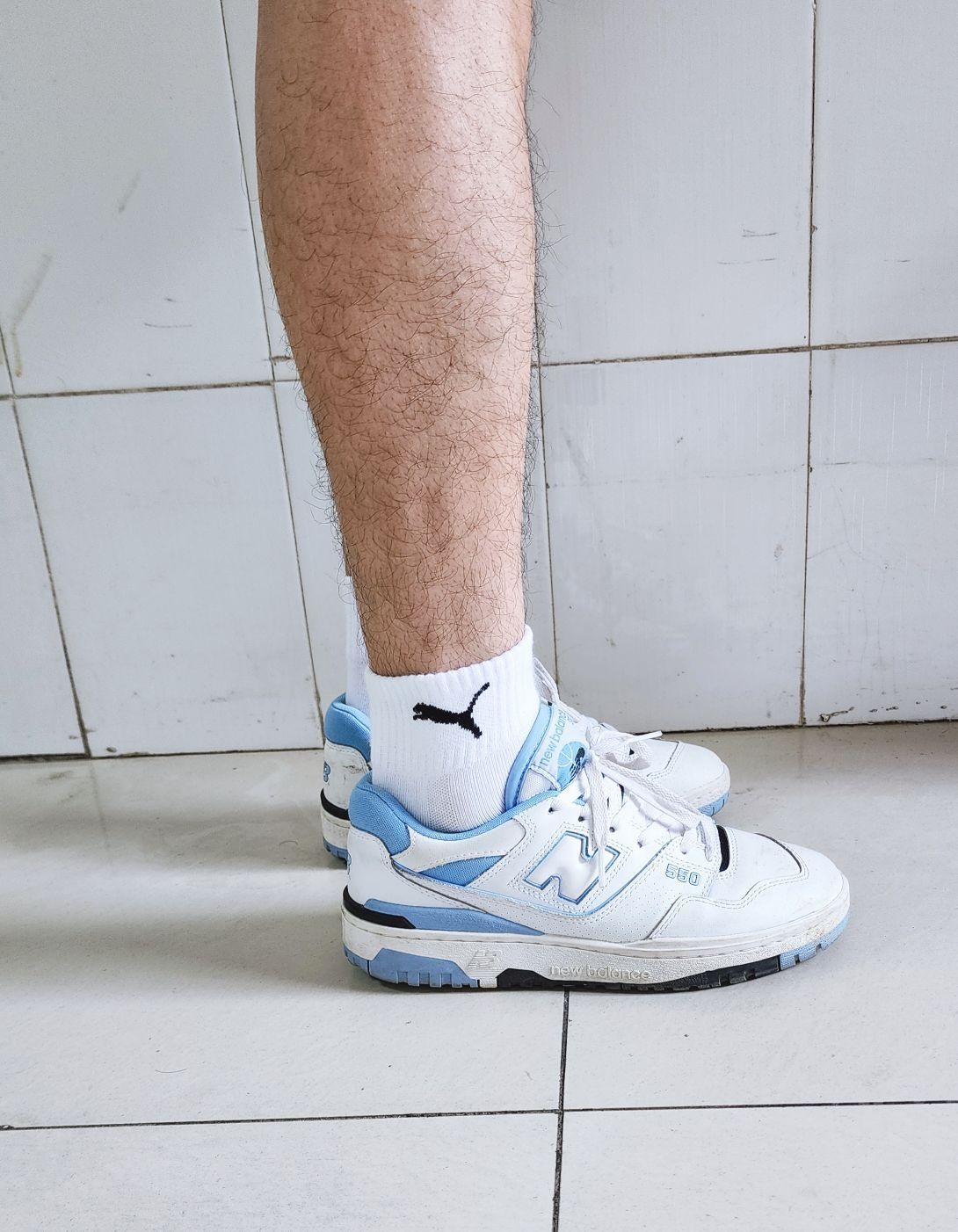 有北卡蓝的鞋子但不知道怎么搭配,这下好了,#Puma 小白袜解决了我的困惑,这一双双侧logo让🧦颜值拉满了,一点也不单调! 其次面料你懂的,很柔和很舒适没有走线,但大家要注意,这是一双中邦袜子,白色耐脏差一些!