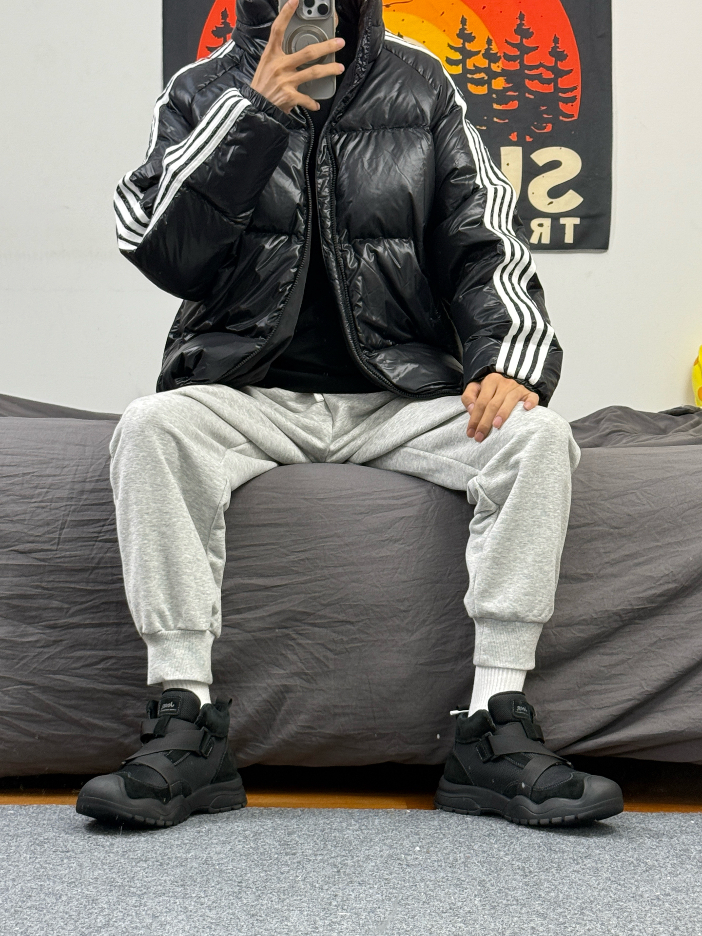 身高174体重48kg 今日上身 黑色羽绒服+灰裤子+登山鞋 👔是这种黑色的羽绒服 立领短款 侧边有四条杠设计 上身保暖舒适 短款的设计又会提升身材比例 👖搭配的灰色束腿裤 秋冬款,加绒加厚设计 束腿又不容易漏风 👟是 #Jeep 家的登山鞋 纯黑色 上脚不容易出错 款式偏轻薄,包裹性还挺好 小众的款式,出门的话不易撞款 脚码41,上脚41 个人感觉不偏码 #过冬换新术 #过冬保暖术 #学生...