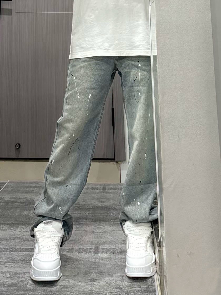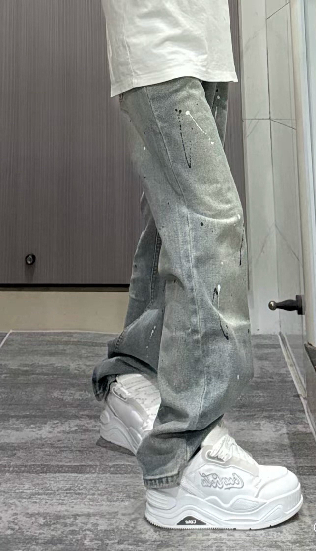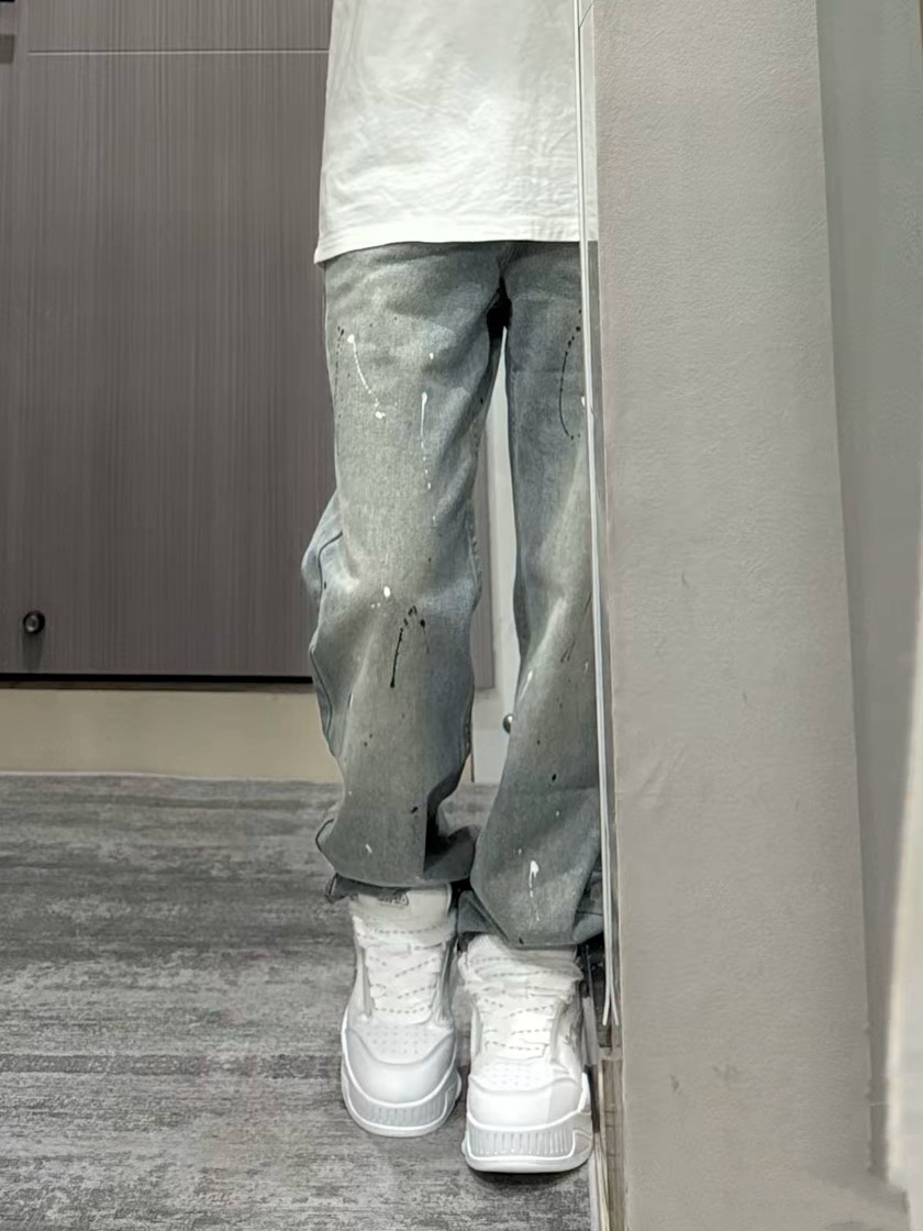 巨帅的泼墨牛仔裤! 这条浅蓝色泼墨牛仔裤好帅呀!采用了水洗做旧设计让裤子整体看上来很美式vibe风呀~宽松直筒版型不挑身材梨形姐妹也是能轻松驾驭的!上身显高显瘦显腿长!!搭配这双厚底增高面包鞋给我帅哭了!鞋子上脚舒适白色百搭款怎么穿都帅