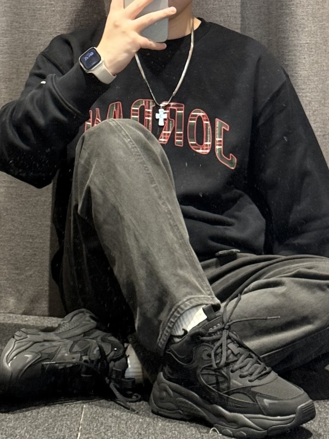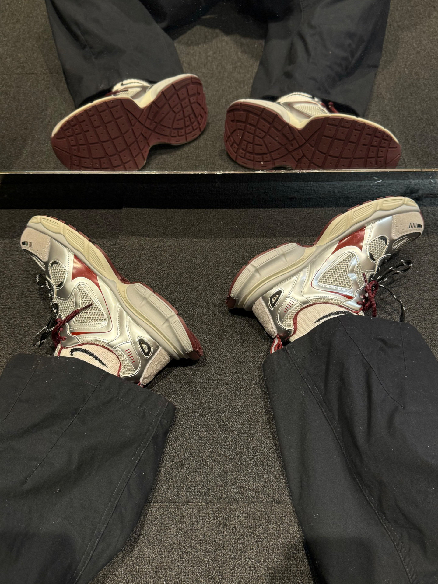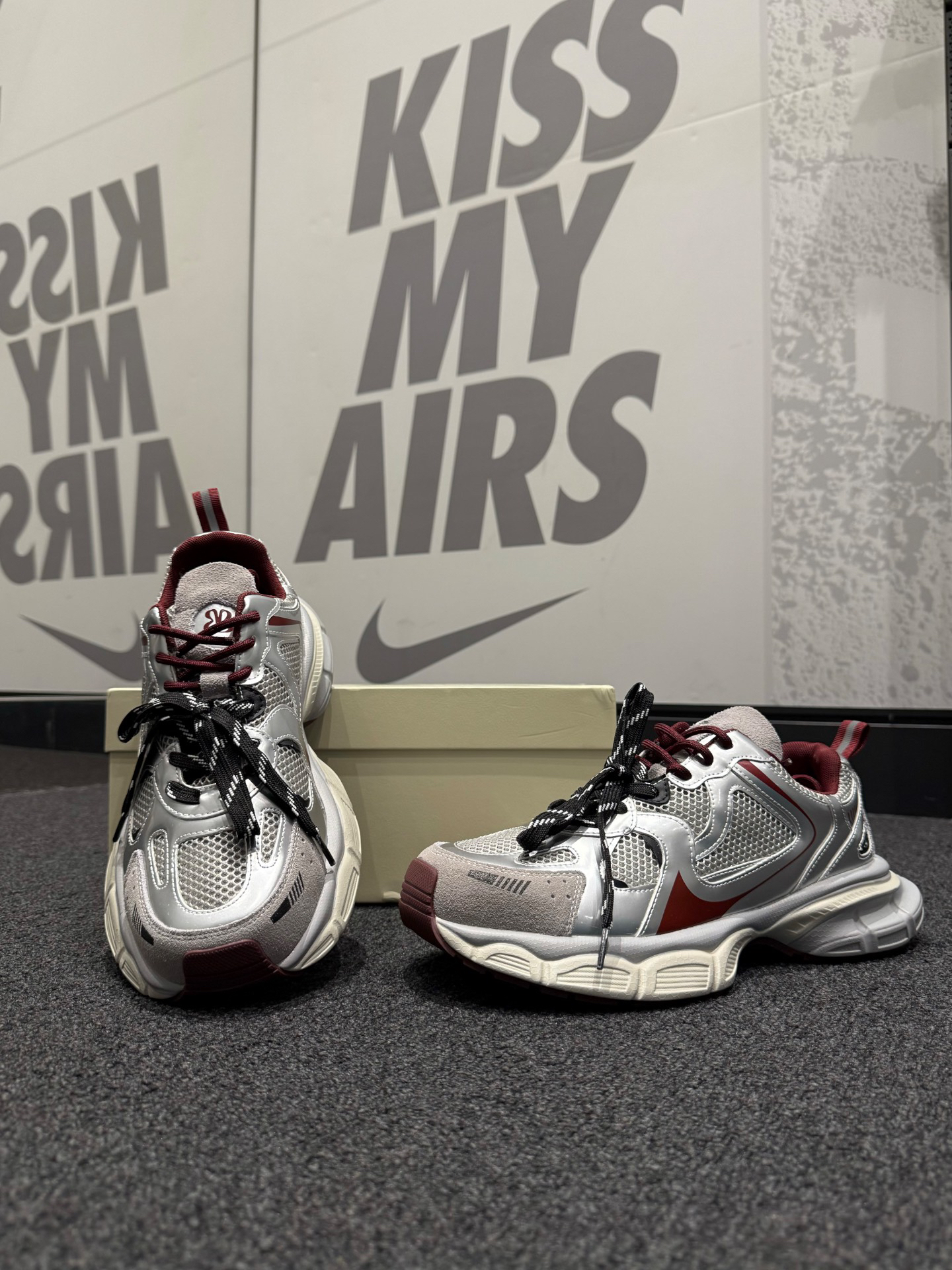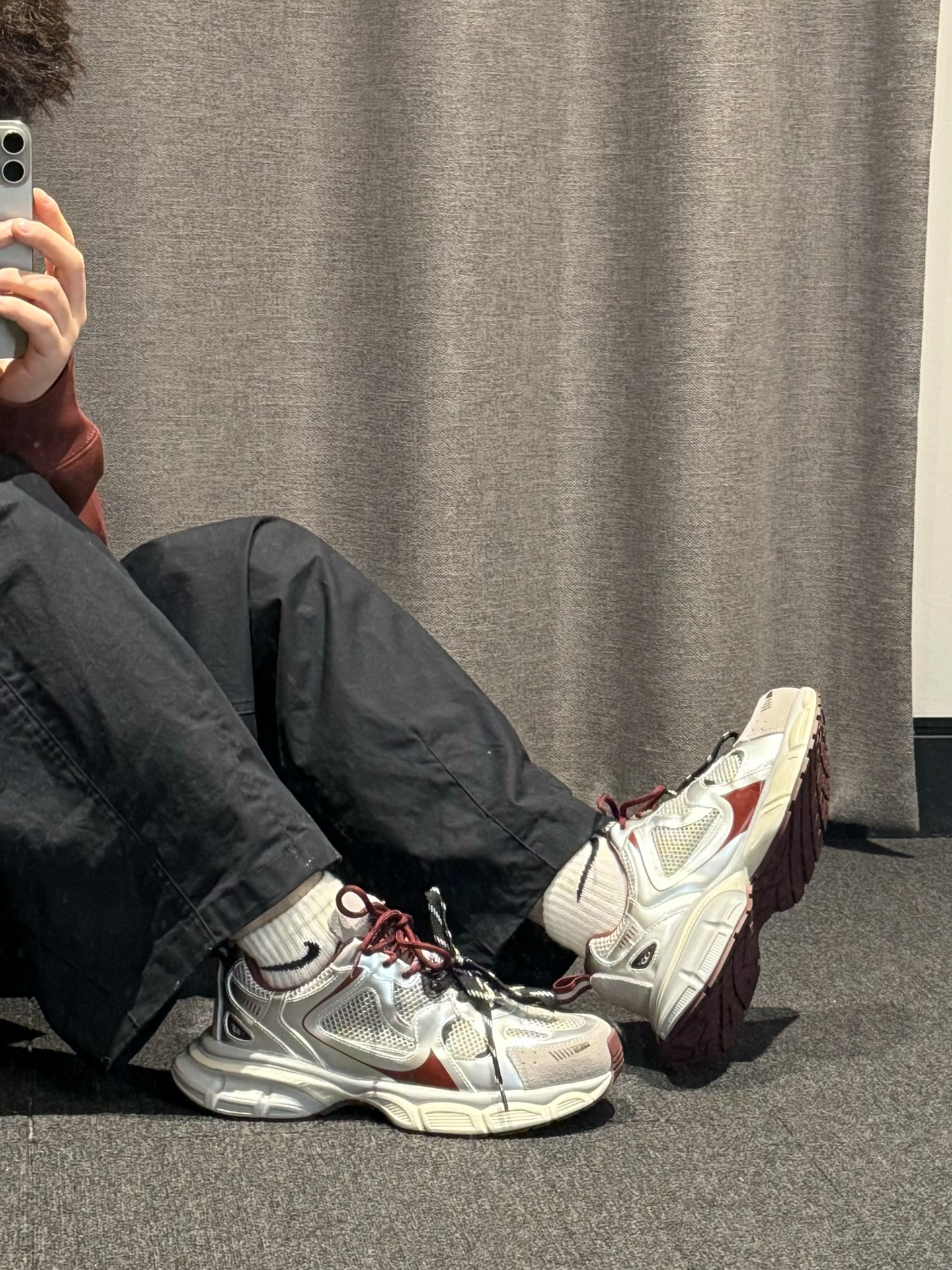 Nike 连帽卫衣➕Nike 阔腿裤➕ #EBLAN 老爹鞋,银➕红的调配让这双鞋子很适合秋日的搭配,而且鞋面整体大面积的网状鞋面,可以说是透气又柔软,中底的增高效果在日常穿着过程中也是轻松秒变大长腿,既有颜值又舒适的鞋款真的爱惨了,不论是日常通勤还是运动、上班都是一个不错的选择。