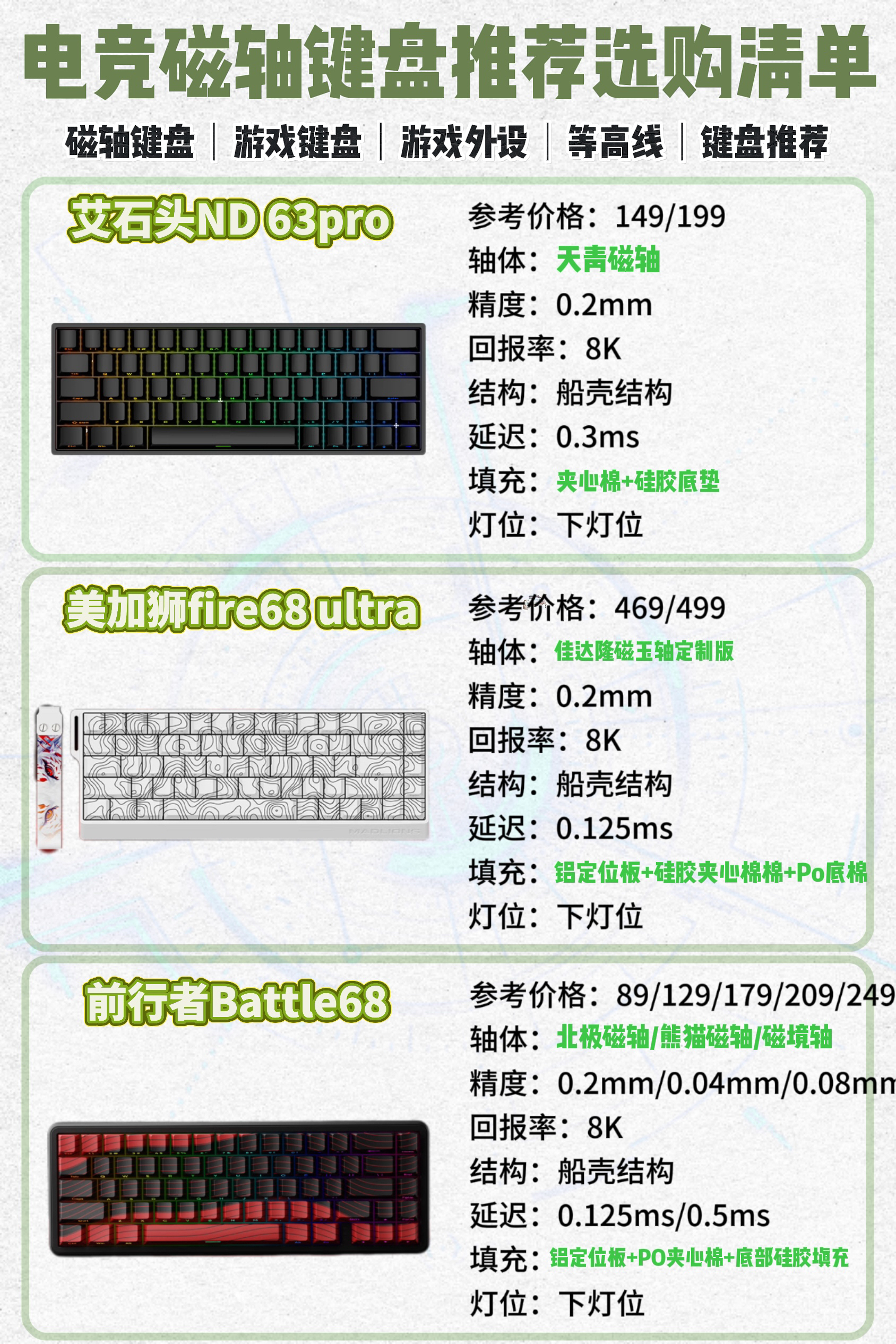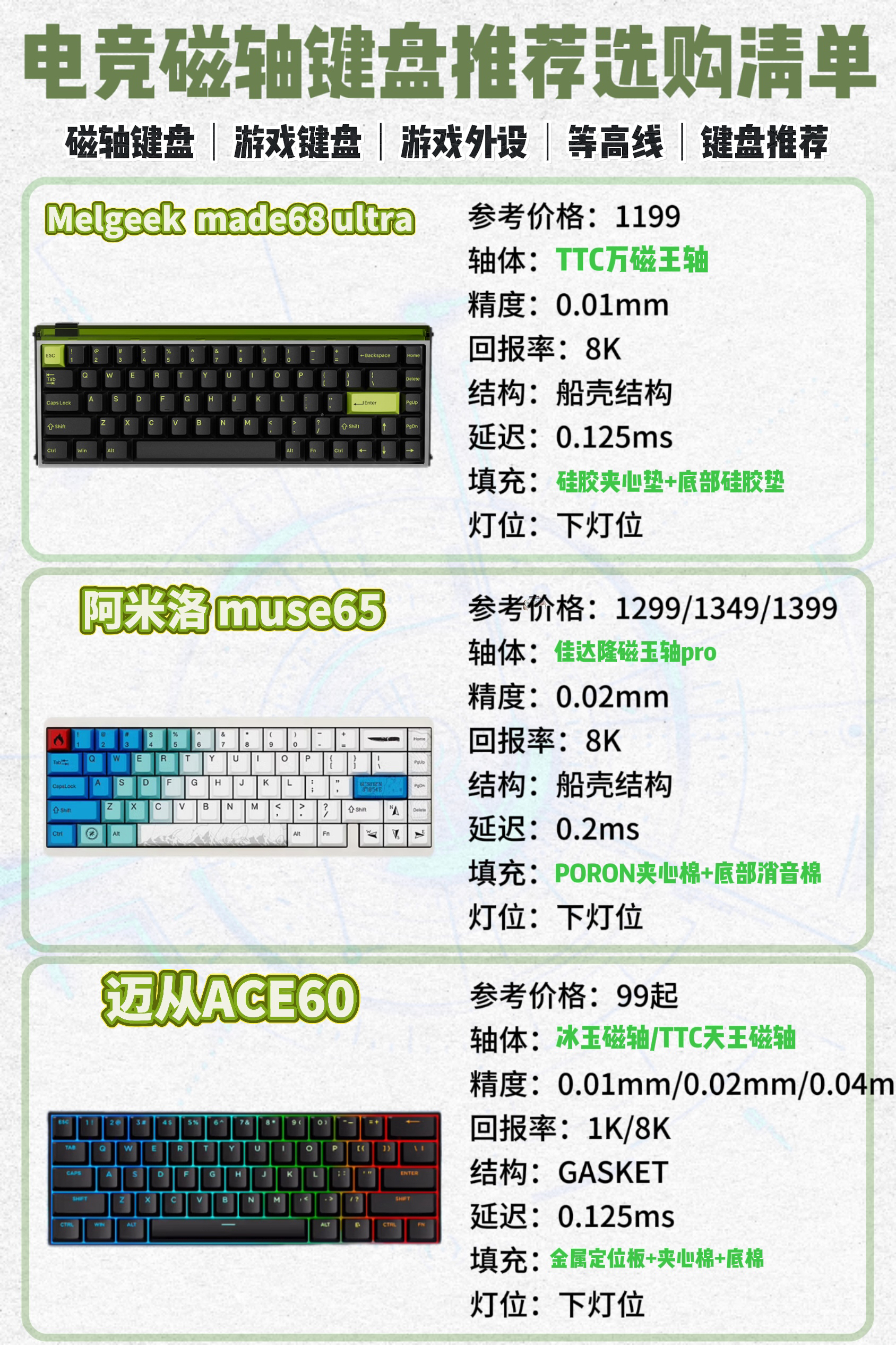 ⌨️本期一共整理了9款磁轴键盘、以及不同的价位段。 ⌨️包含了几十--千元价位!!! ⌨️大家可以根据自己的需求、预算作为参考。 ⌨️兄弟们有没有在使用同款呢!?