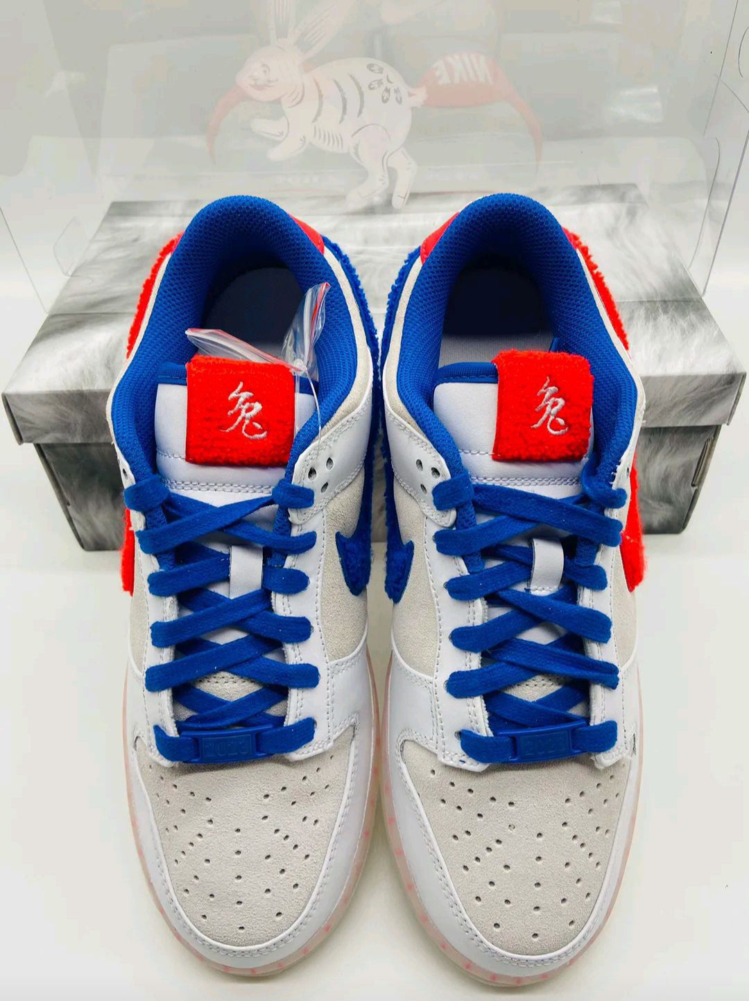 Nike dunk兔年! 这双鞋真的细节满满 无论是从鞋底的双年份大数字鸳鸯 还是从鞋根有个小兔子的设计来说 鞋带也是送了一双鸳鸯不同颜色 鞋舌上还有中文一个大大的兔字 诚意满满的设计 每一处深挖都能感受到不同与其他鞋款的设计 而且价格只用四张就能拿下!! 夸张!