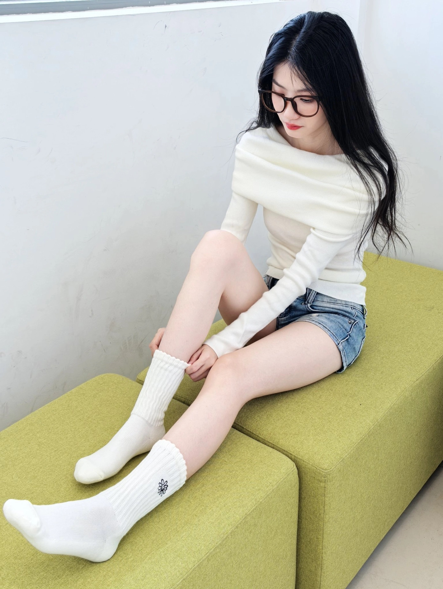 维动 VEIDOORN 笑脸花 日系粗线堆堆袜 很有特点的一双运动高筒袜 笑脸花的logo真的可爱🌸 运动堆堆袜 有两个好看的因素🥰 本身就是百搭的款式 然后多加了堆堆设计❣️因为秋冬堆堆袜搭配穿搭很多 修饰小腿 还有保暖作用 图源于@Yan崽随心拍,侵删