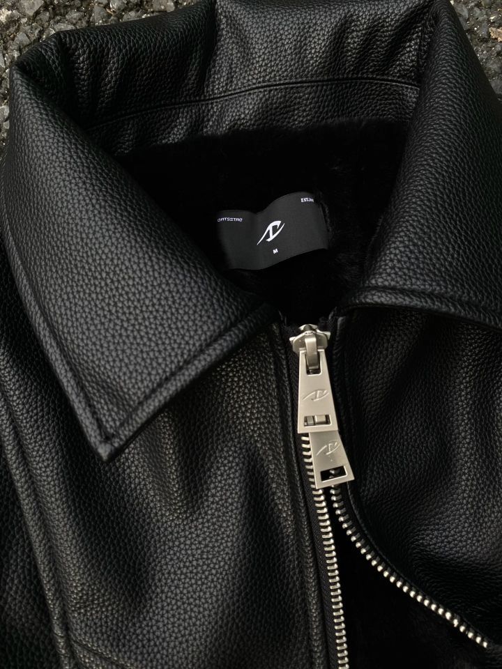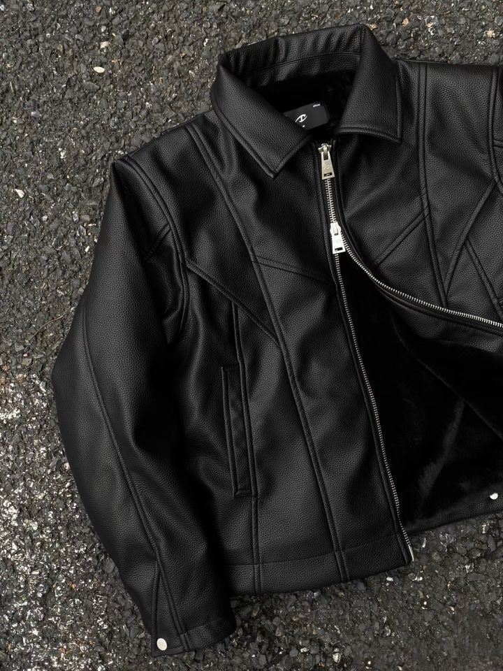 黑域皮座山雕 今年复刻了 皮料升级为粗颗粒仿牛皮纹理厚度0.8 加软内里复合 更加挺括 更保暖 内里定染人造水貂毛 袖子里也是 合体的剪裁配合厚实的质感 上身秒变双开门