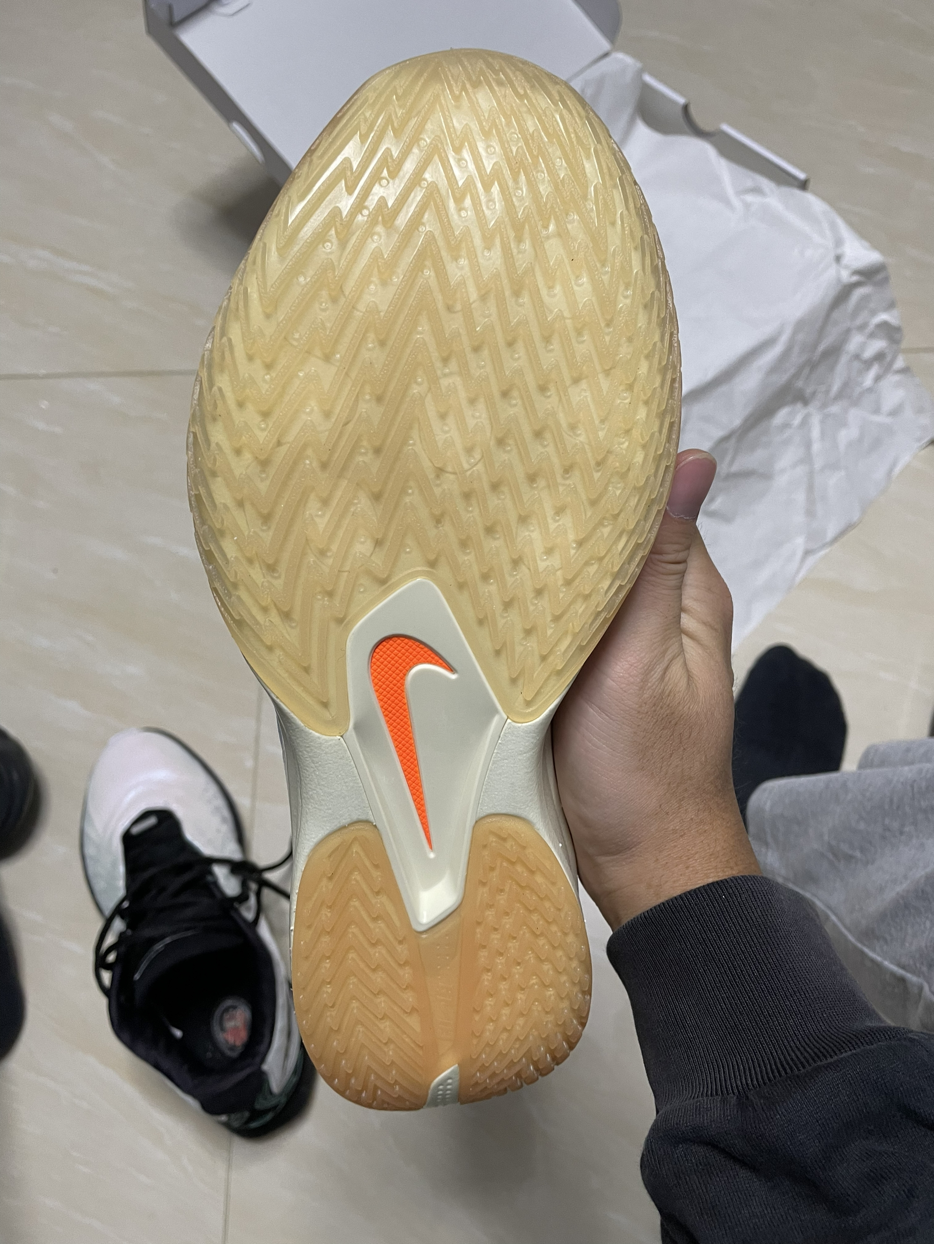这双团队旗舰款一直想尝试,没有心水的配色,直到看到这双,并且价格来到6开后立刻下单。 对比我之前入手的lbj21它更轻便,反应更快,尺码上由于前掌较宽松,我选择小半码42码。有什么想问的欢迎提问