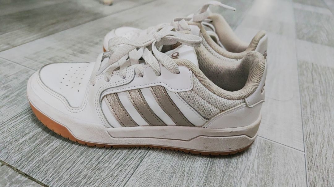 今天推荐一款我觉得性价比很高的一双板鞋 这款就是来自adidas neo Entrap板鞋 这款板鞋的配色有点低饱和 白金色个人是比较喜欢这种经典的版型的日常通勤很百搭舒适 价格呢也是来到2开 唯一美中不足的是鞋面材质比较难清洁 不过 从整体来看 问题不是很大 很值得入手~