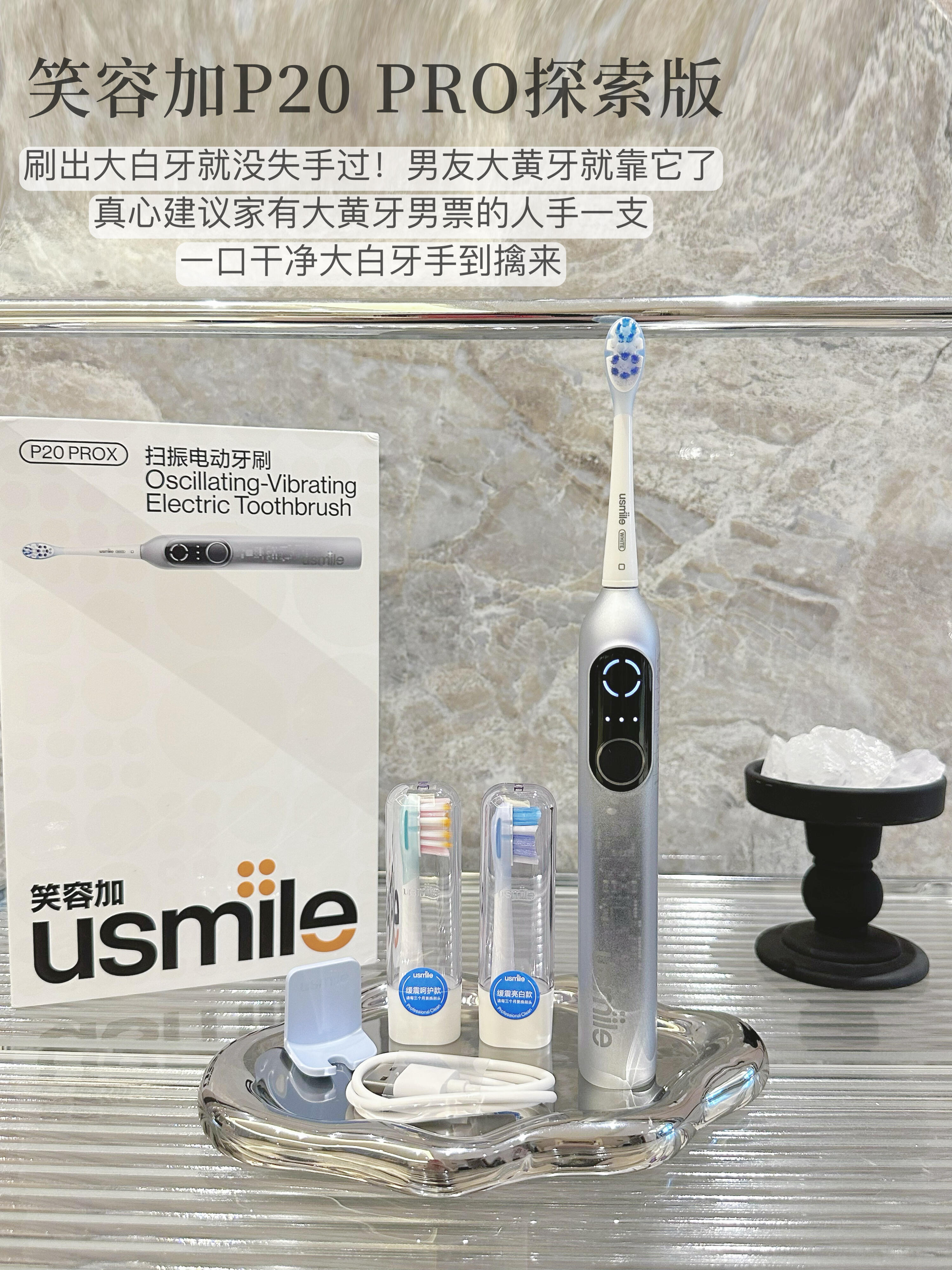 本篇笔记关联了usmile P20 PROX 成人款 电动牙刷 缓震 扫振一体 强清洁力 新一代 漏刷提醒 充电式 四区 圆屏 软毛 深度清洁 智能扫振 不打牙 防水 送男女朋友 冰银色【刷头*2】等商品,为用户提供真实的使用体验和购买参考。