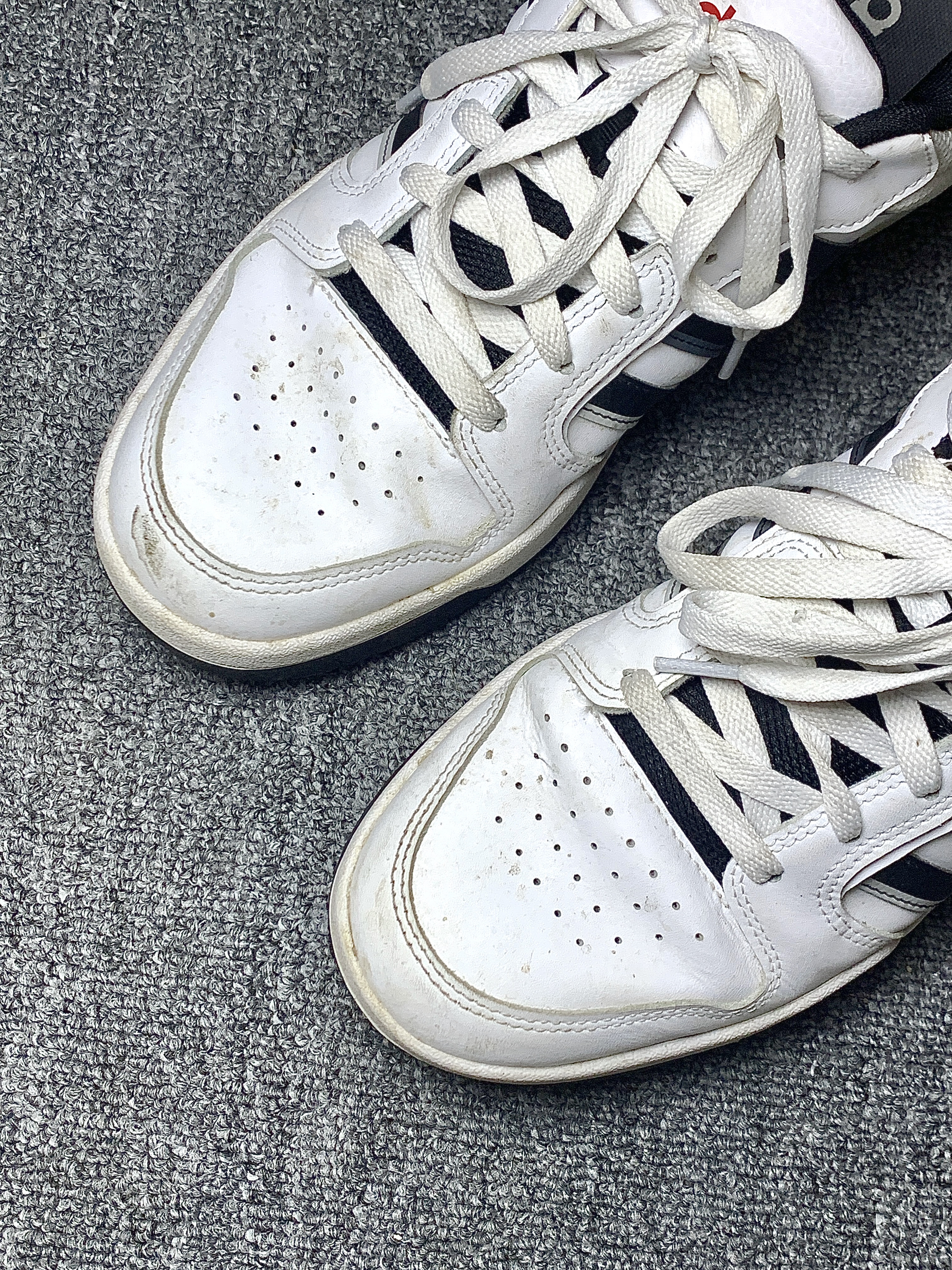 这双二开的阿迪穿了快一年了 除了板鞋通病——鞋面容易褶皱 其他没什么大毛病 这款配色搭啥都好看 而且鞋底不会很硬 防滑耐磨也很优秀✅ 真心推荐大家尝试一下