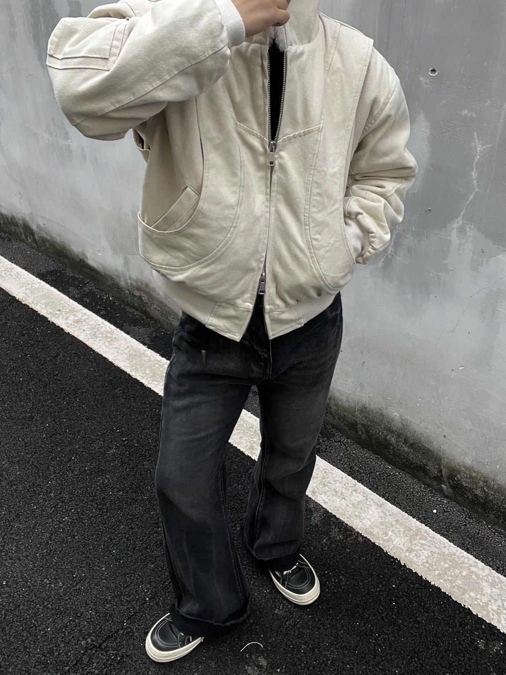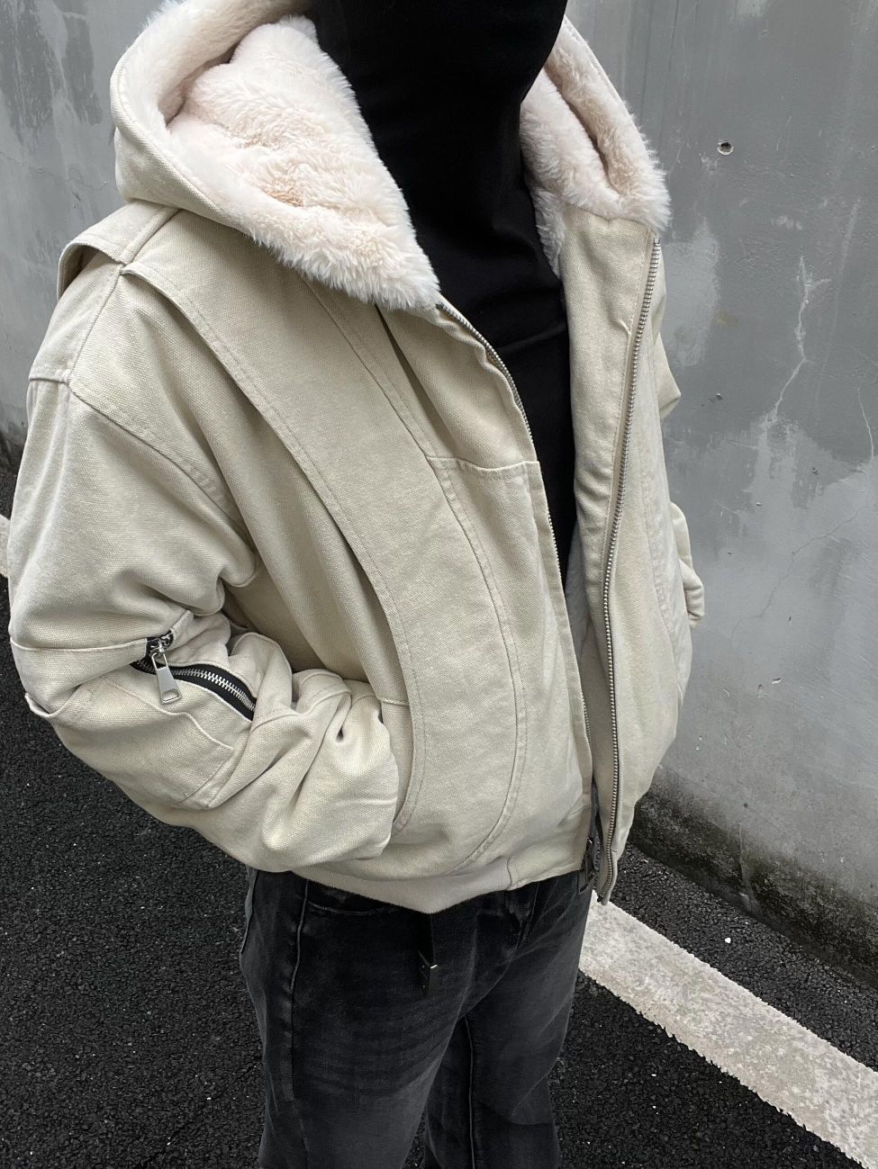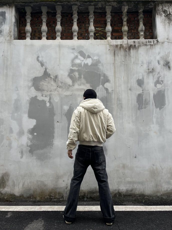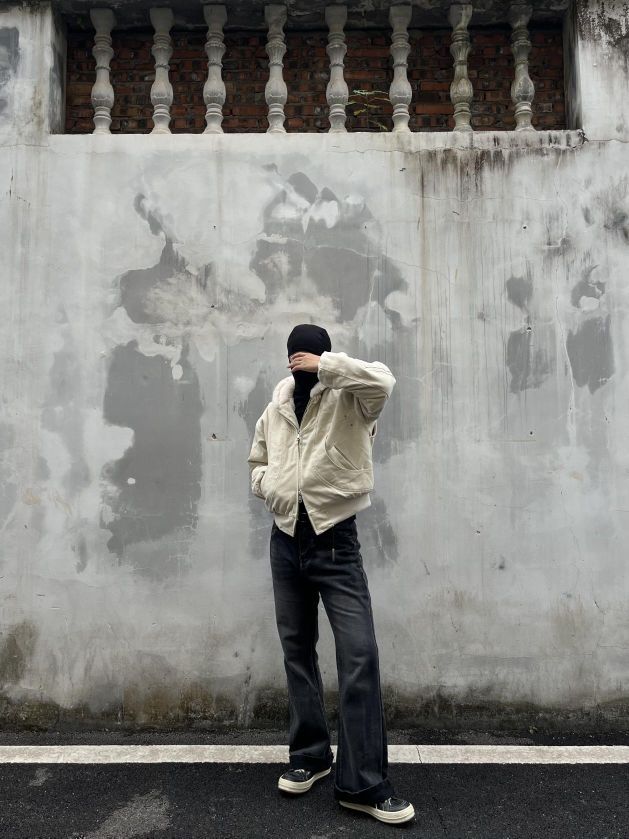 今天: 🧥benmyshower 👖gangzy 这款“座山雕”是来自benmyshower斑马线 家的(BMSR)2024冬加绒连帽外套,cleanfit风格简约,重磅帆布材质。穿上身舒适,加绒暖和,日常穿无敌了。 裤子是来自Gangzy 家的日本冈山黑牛 这条是微喇款,有刀割破坏和猫须水洗设计,带着巴黎风。它非常百搭,搭T恤很休闲,配衬衫也合适。裤子穿着舒服,还能修饰腿型,让腿部线条看起...