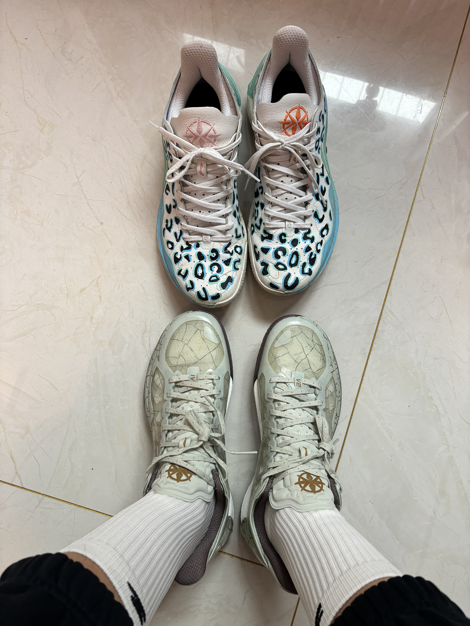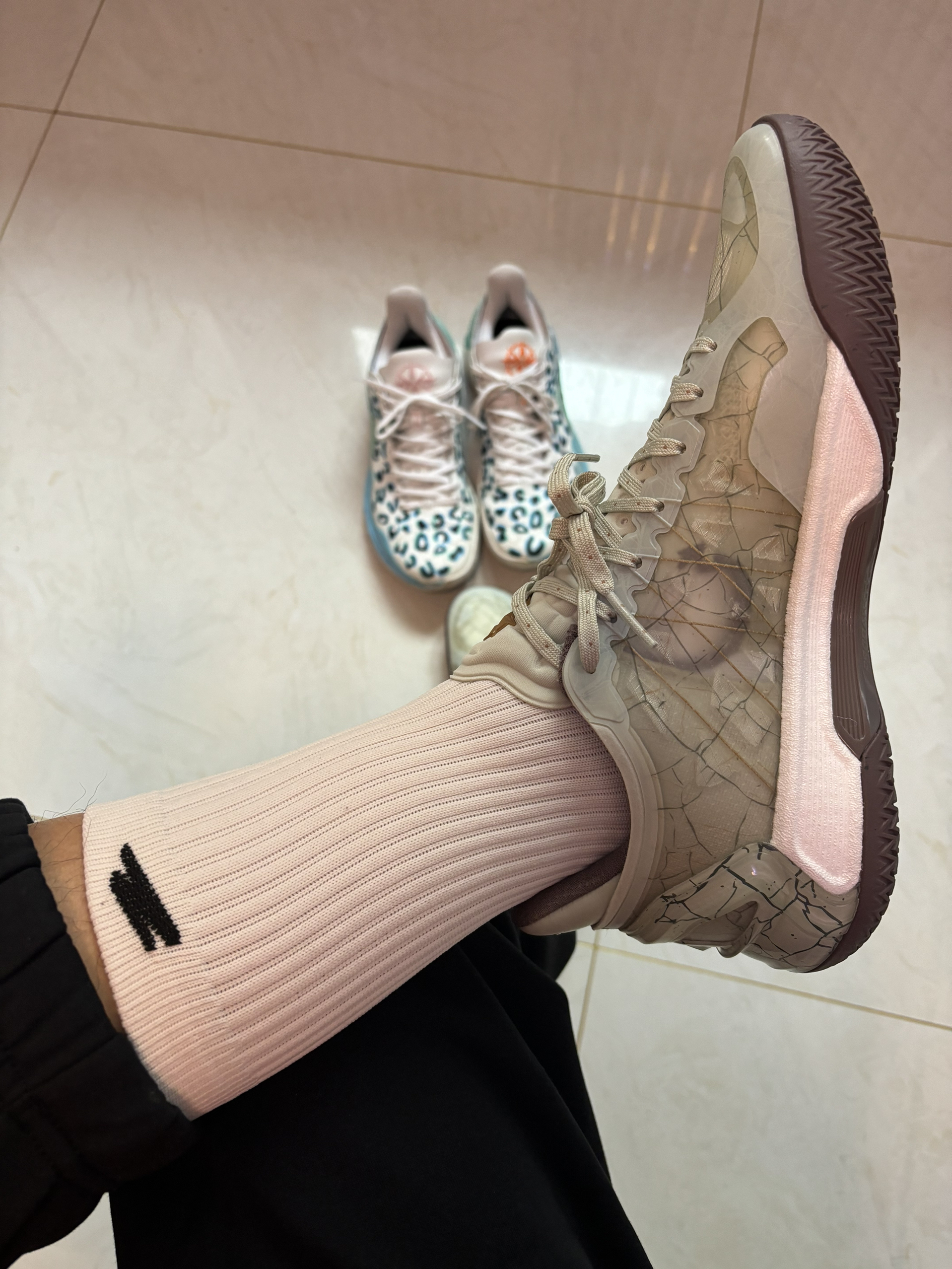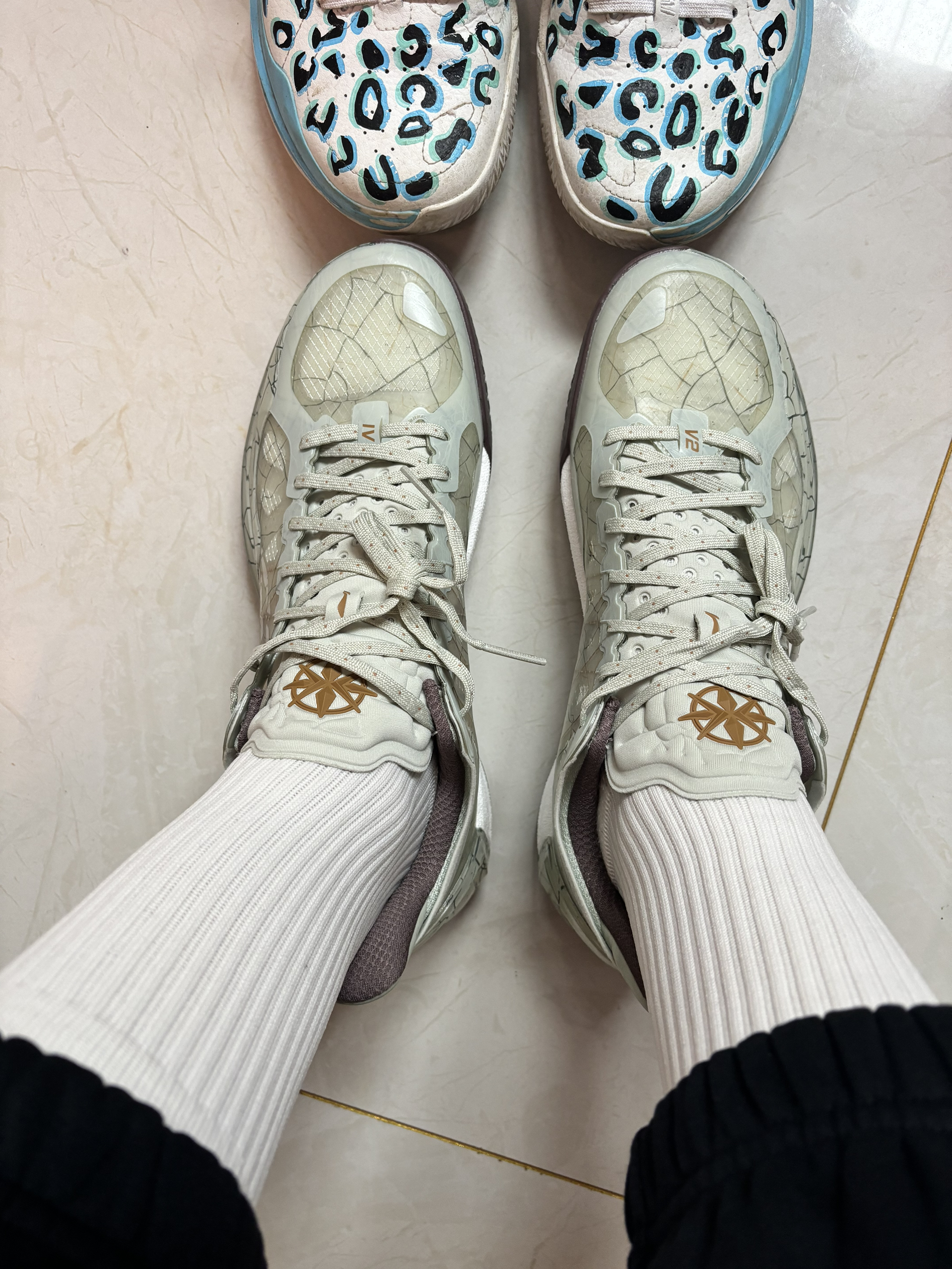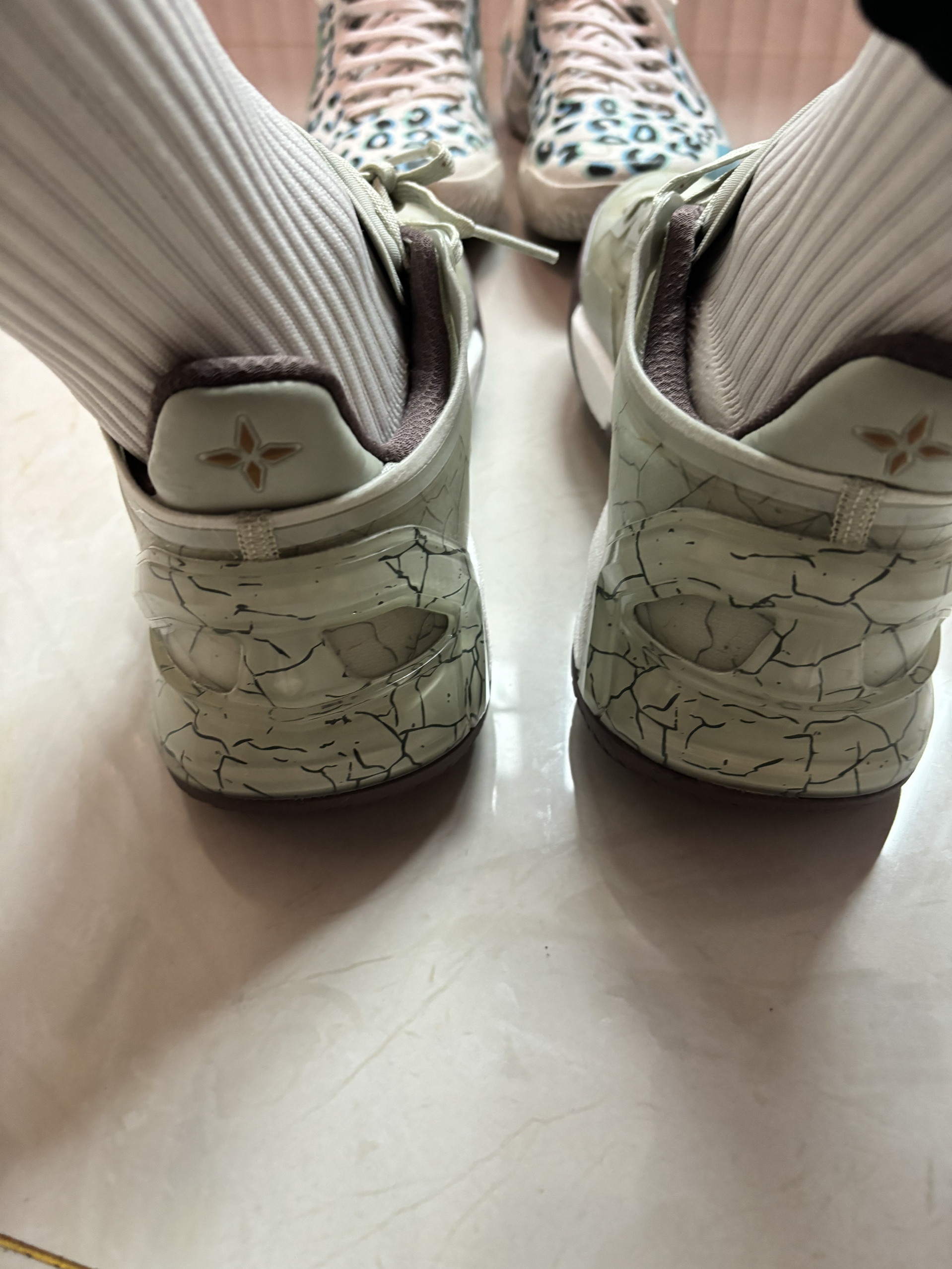 利刃4v2这个新配色 很有中国风,很像一件瓷器艺术品 细节的冰裂纹我很喜欢 侧面都是水晶框架 后跟的杯托挺像科比的 鞋舌和后跟相呼应 #关于秋冬的买买买 #我的降温装备 #东方的脚印