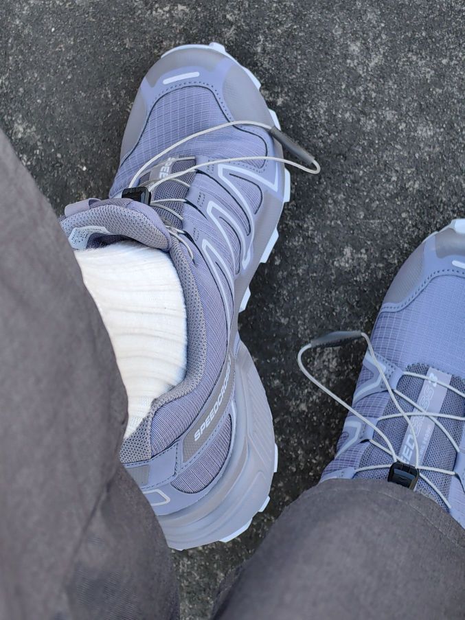 我还挺喜欢萨洛蒙speedcross3系列的鞋子,这次入手了一双刚发售的紫色配色 •颜值 紫色配色真不多见,搭配一条西裤还挺不错,很有个性! •脚感 很轻!包裹感特别棒,鞋舌鞋后跟填充都很厚,脚感要比xtquest系列好不少 我平常穿42-43码,这双穿42 2/3码,大家正常尺码入手就好