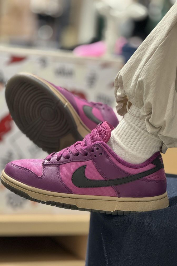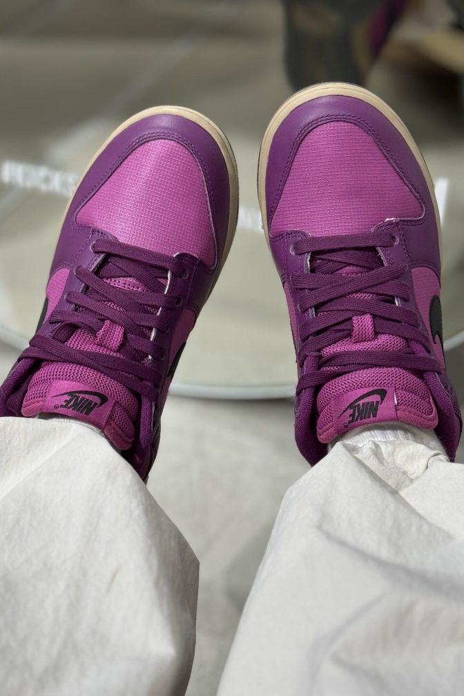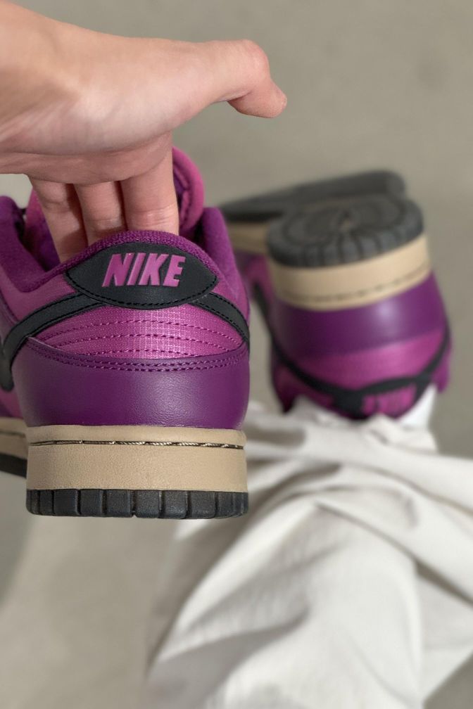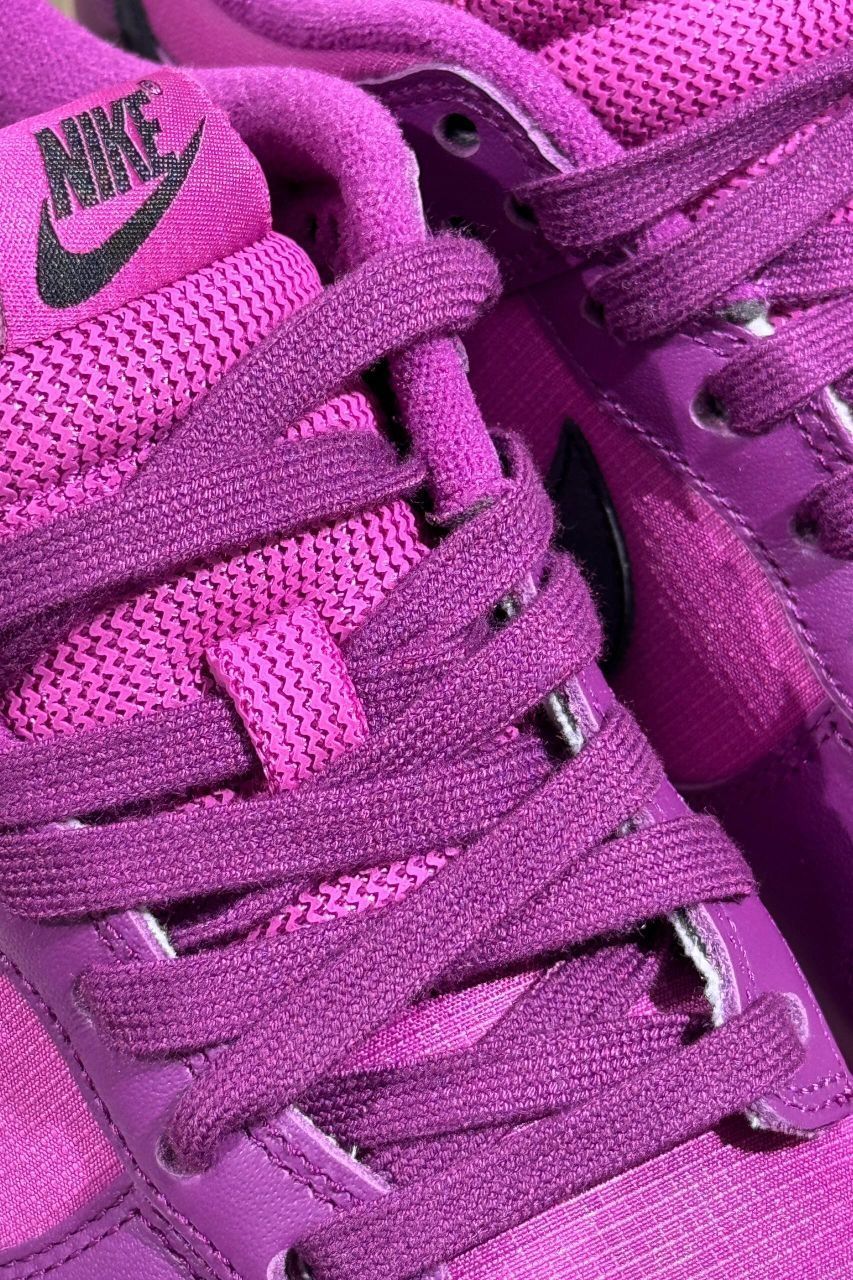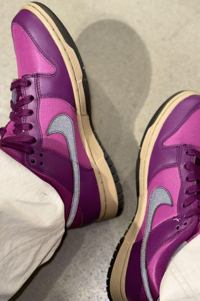 Nike|太帅了叭‼️这个还能反光⁉️||上帝吧偏爱都给了紫色吧💜太梦幻啦 黑色的Swoosh在闪光灯的照射下变成银色 超酷的好嘛🤩 自带黑色鞋带 两种搭配 做旧鞋底让整双鞋变得更复古 酷的勒~