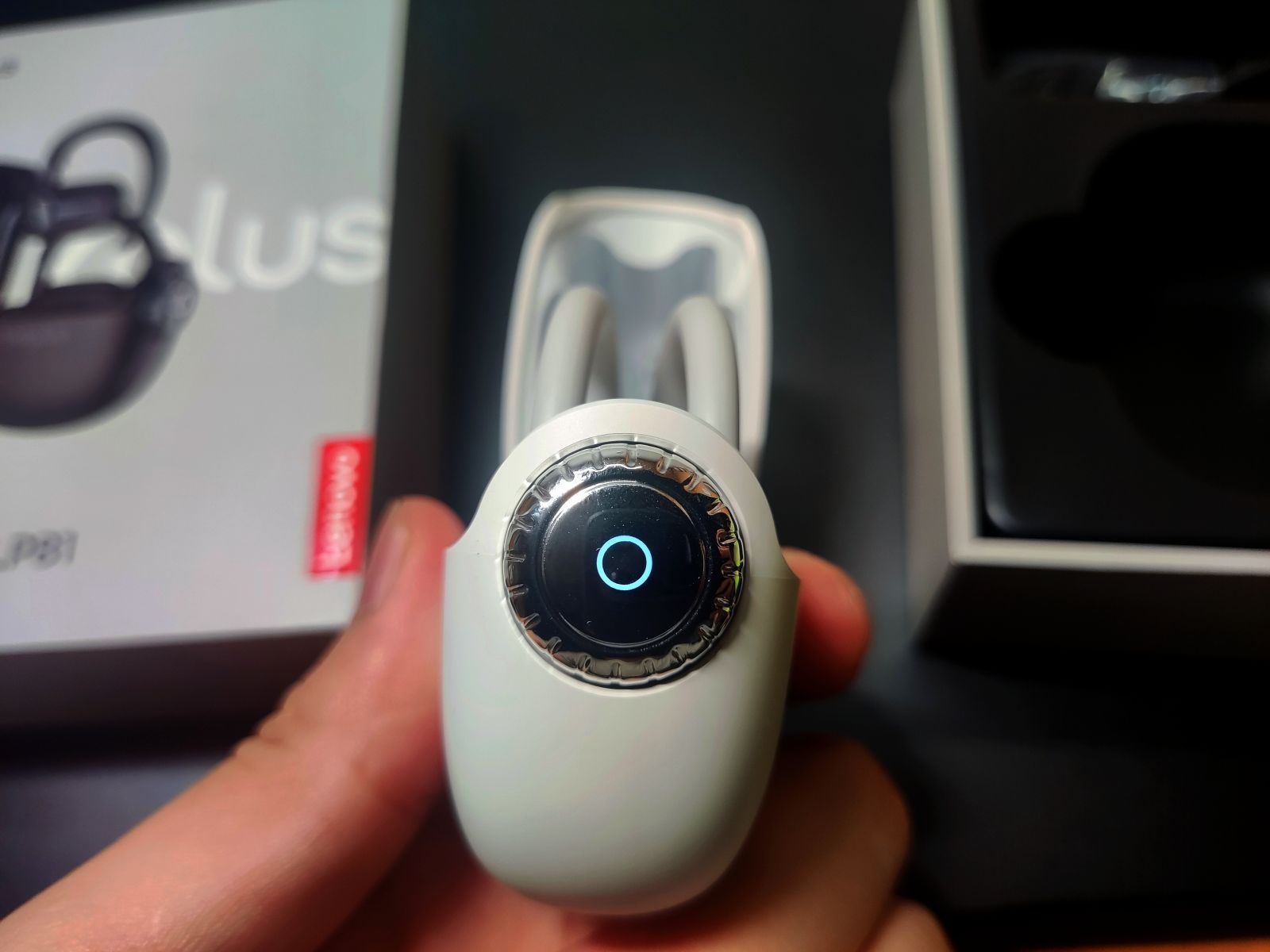 联想的lp81蓝牙耳机 首先耳机打开以后颜值不错,打开类似于打火机的形式,是侧面旋转的。 同时在侧面有一个小的圆形发光环可以显示状态,而且还能旋转十分有趣。 然后耳机是这种挂耳式的不入耳穿戴方便,对耳朵没有什么负担。 在运动方面:带着去跑步了,5公里慢跑也没有出现掉耳机的情况。 耳机的音质十分不错,在低音域表现不错,让我朋友坐在我旁边听,也没有存在漏音的情况。耳机质量还是十分能打的。