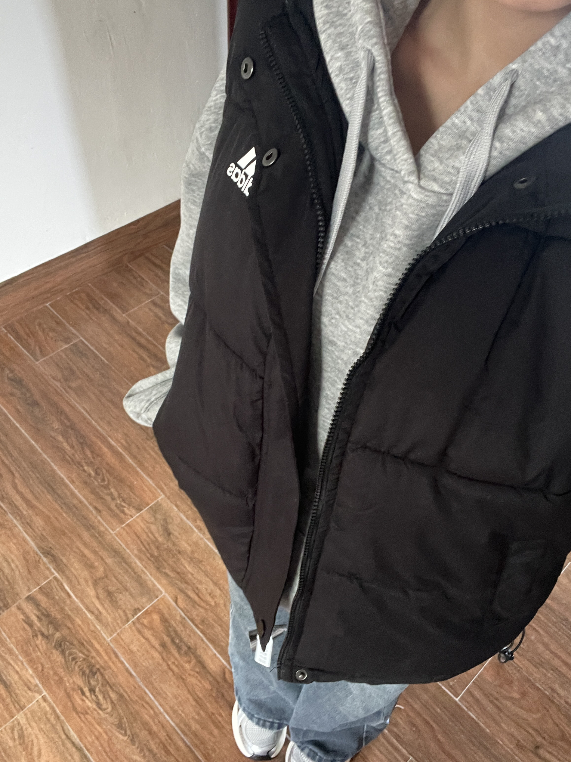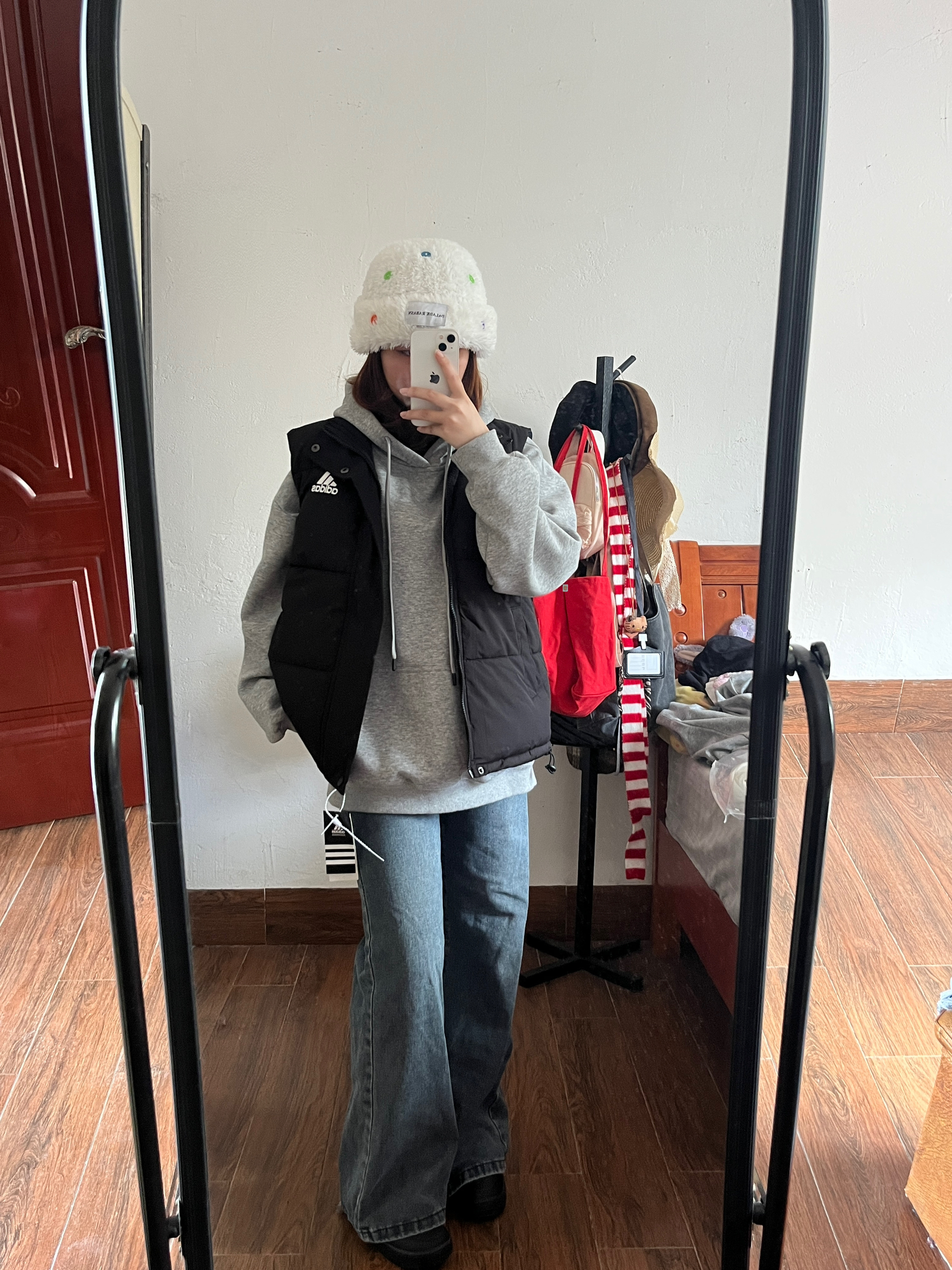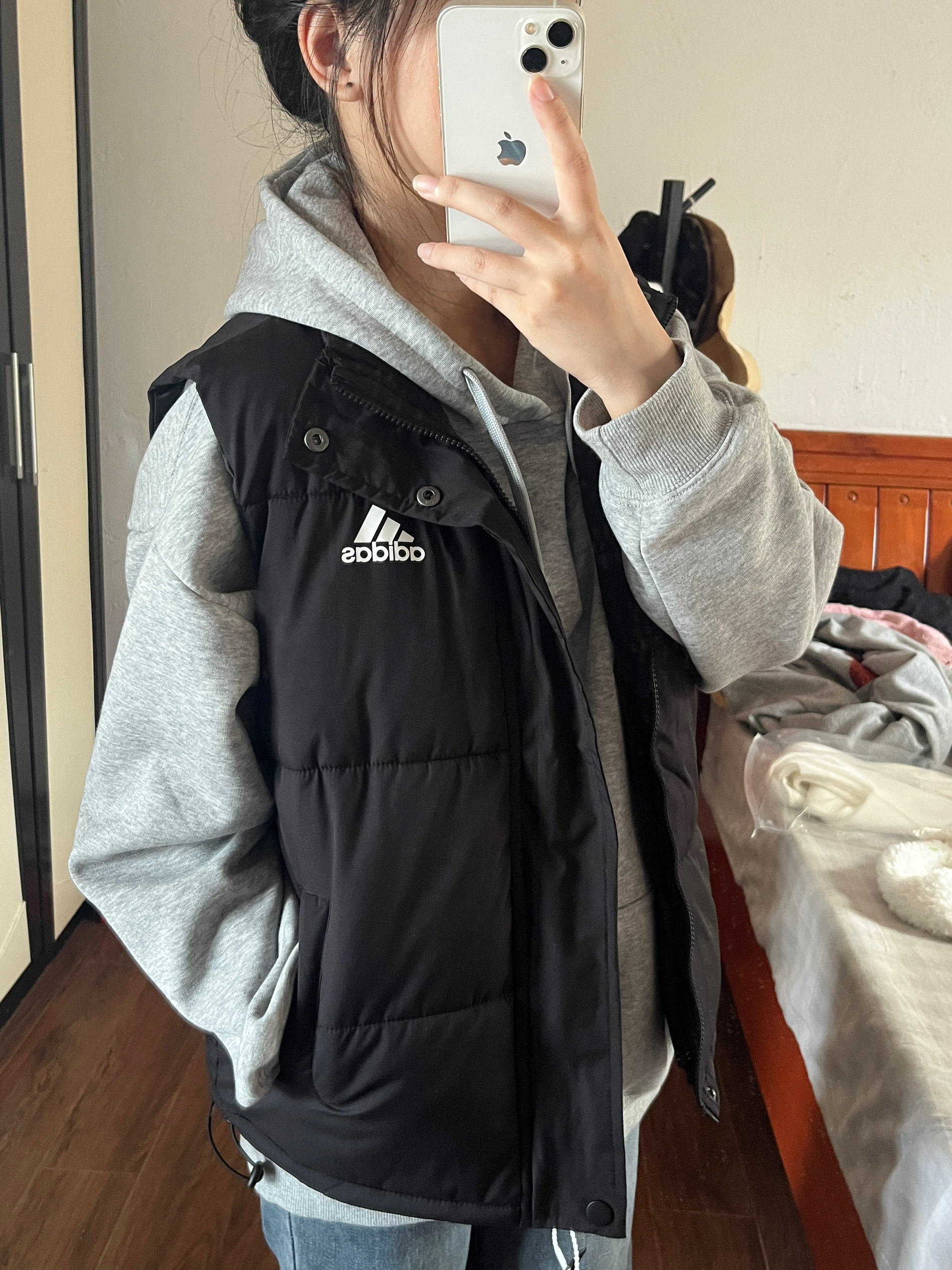质量好好!!版型也很不错 冬天穿个卫衣再套个马甲 避免了臃肿 以前穿了卫衣外套就跟熊一样 现在终于知道马甲的好处了✌️ 而且也很保暖 对于南方人来说就足够了 不得不说灰黑搭配真的是不会过时的选择!!!!