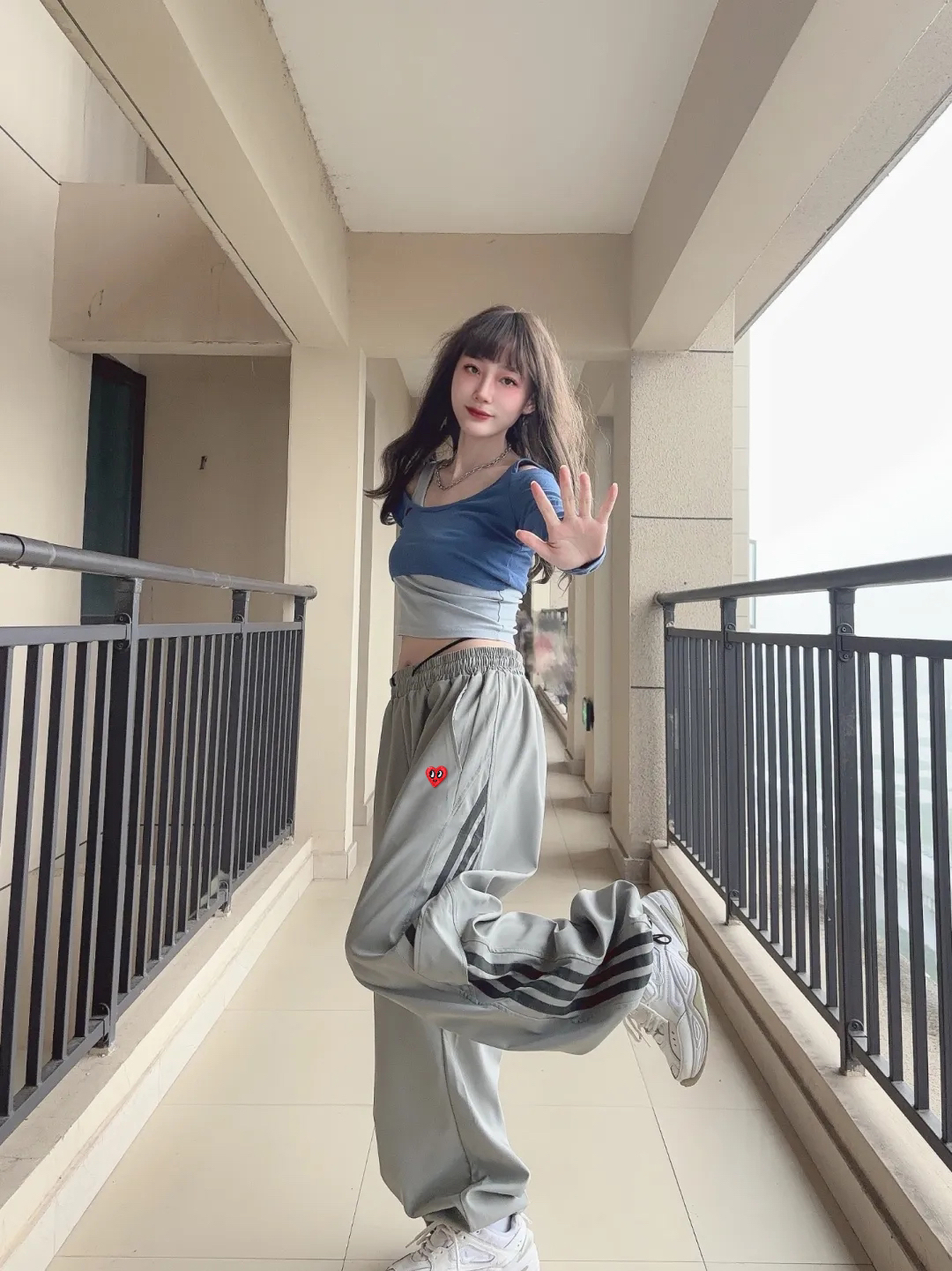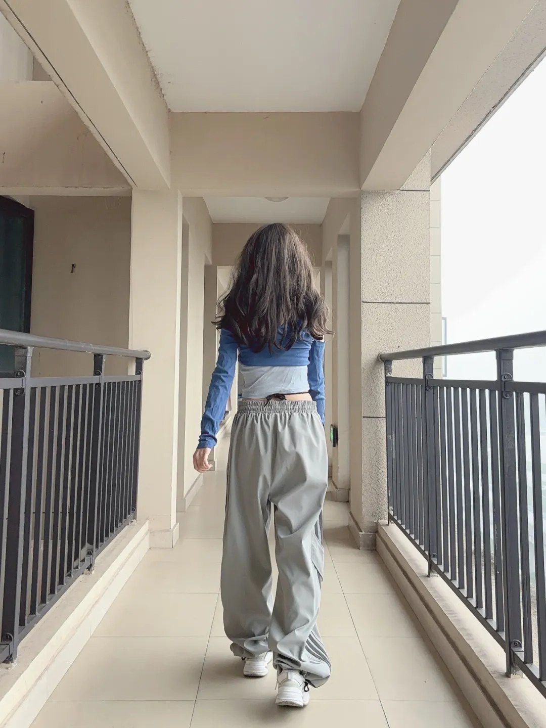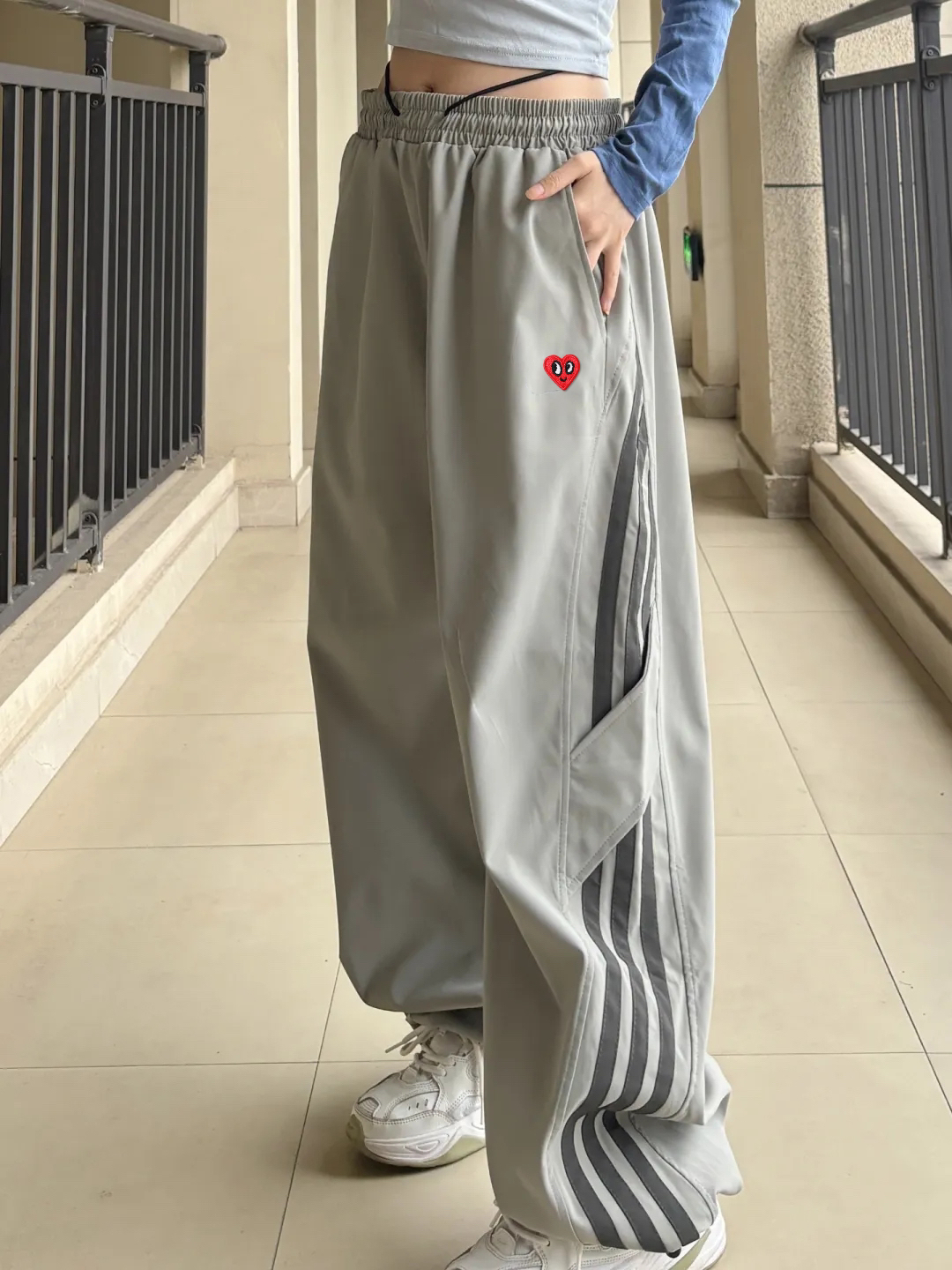 灰色真的是百搭的颜色,垂感十足的阔腿版型,经典侧边三条杠设计真的爱了,拉长腿型还遮肉显示,真的谁穿谁时髦的一条裤子了