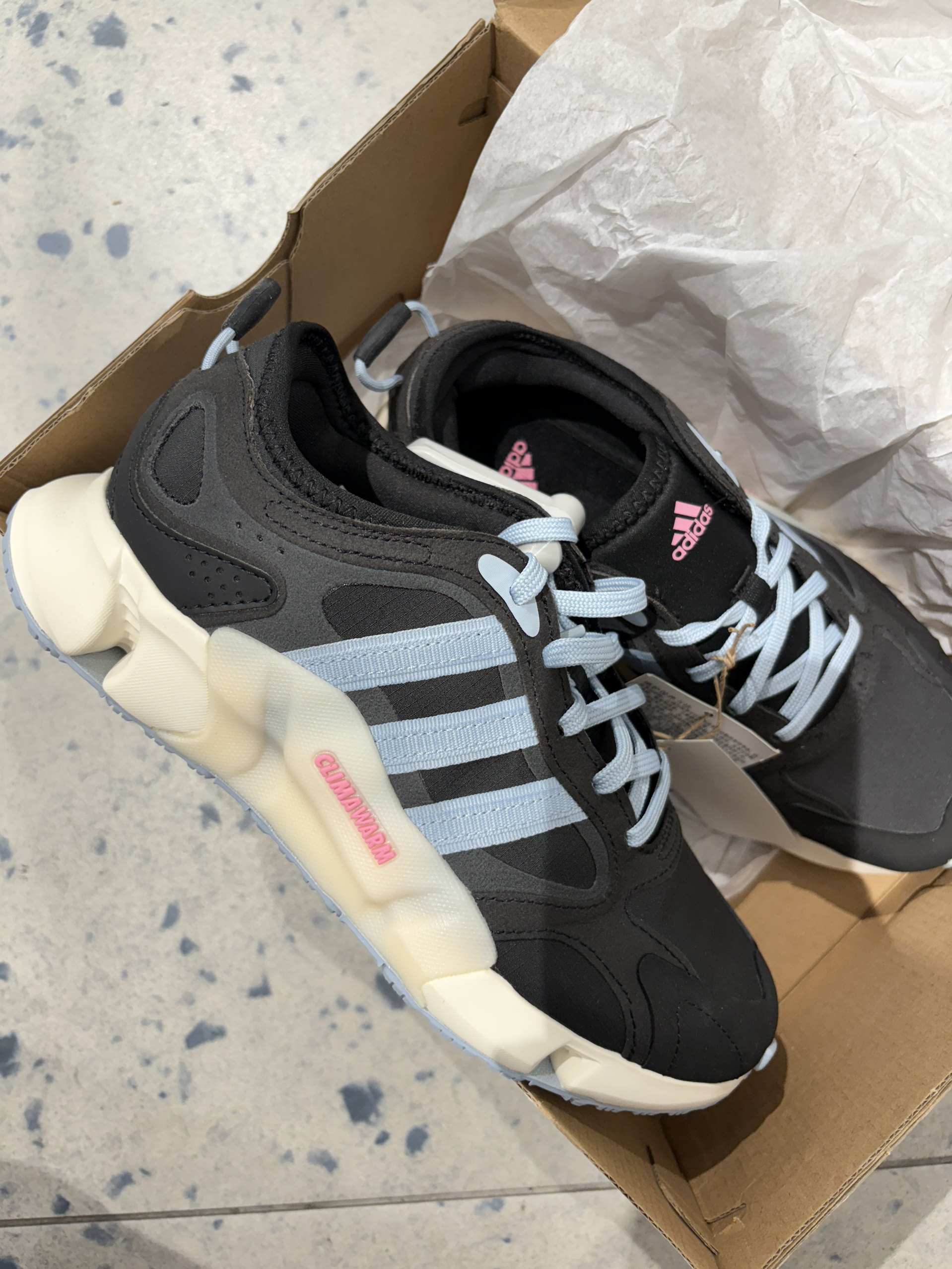 👟球鞋名称:CLIMAWARM暖「芯」科技保暖缓震防滑拒水防泼跑鞋adidas阿迪达斯 🔍分享理由:买这双鞋真的是冲着阿迪的颜值去的!但是实物尊嘟超乎意外,细节和上脚都满分💯,下雨天跑步再也不用担心了哈哈哈 🤔整体感受:据水防泼 舒适度强 真的好难拒绝啊!!