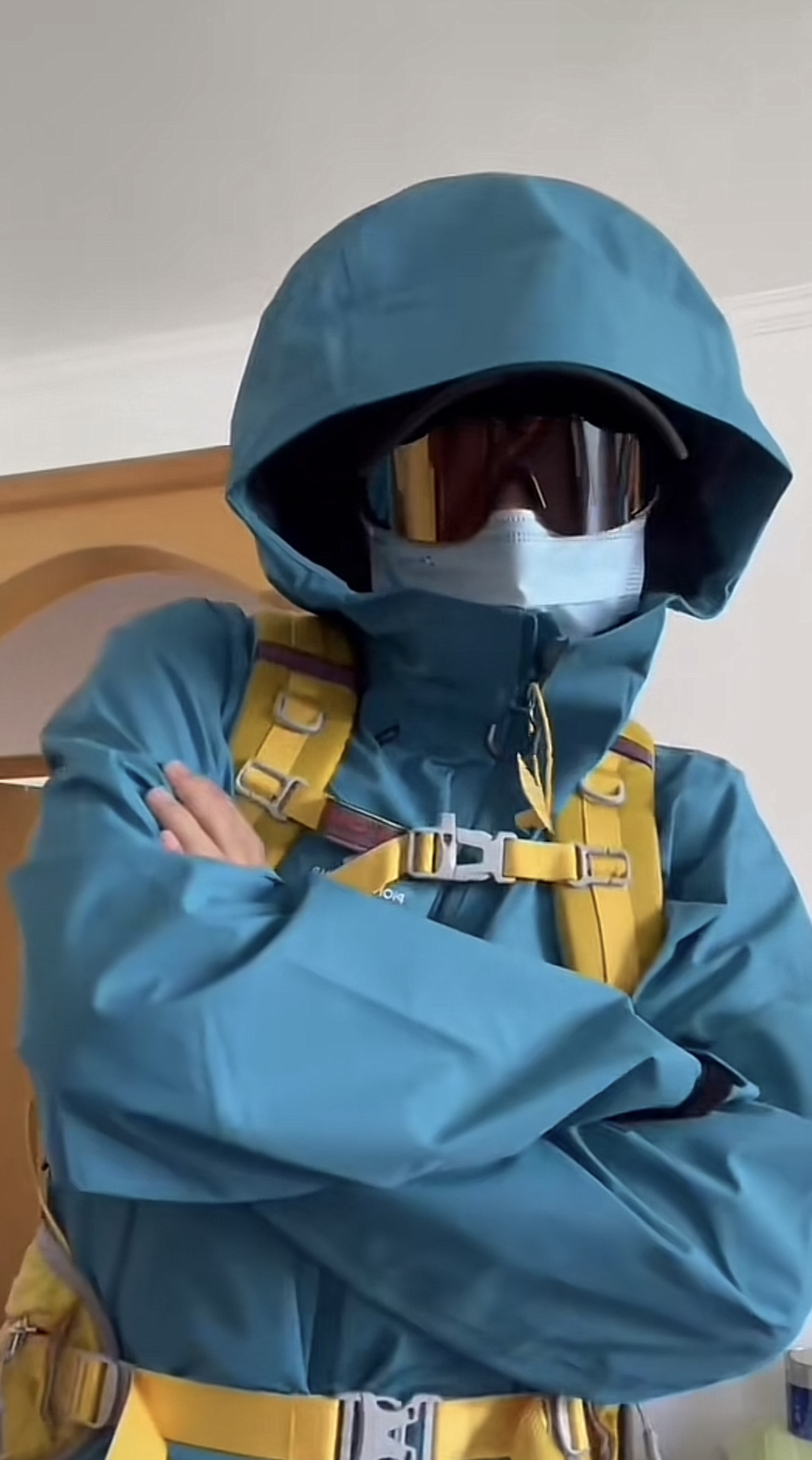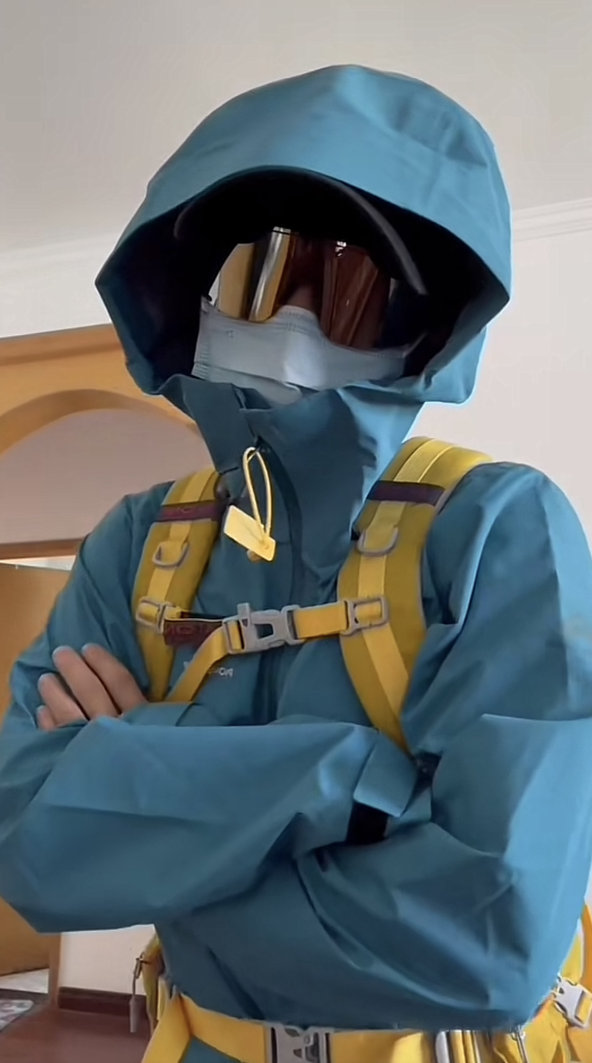 去这种高海拔户外怎么能没有一件专业的冲锋衣,上身的是拓路者小鹰,蓝色真的显白拍照超级出片