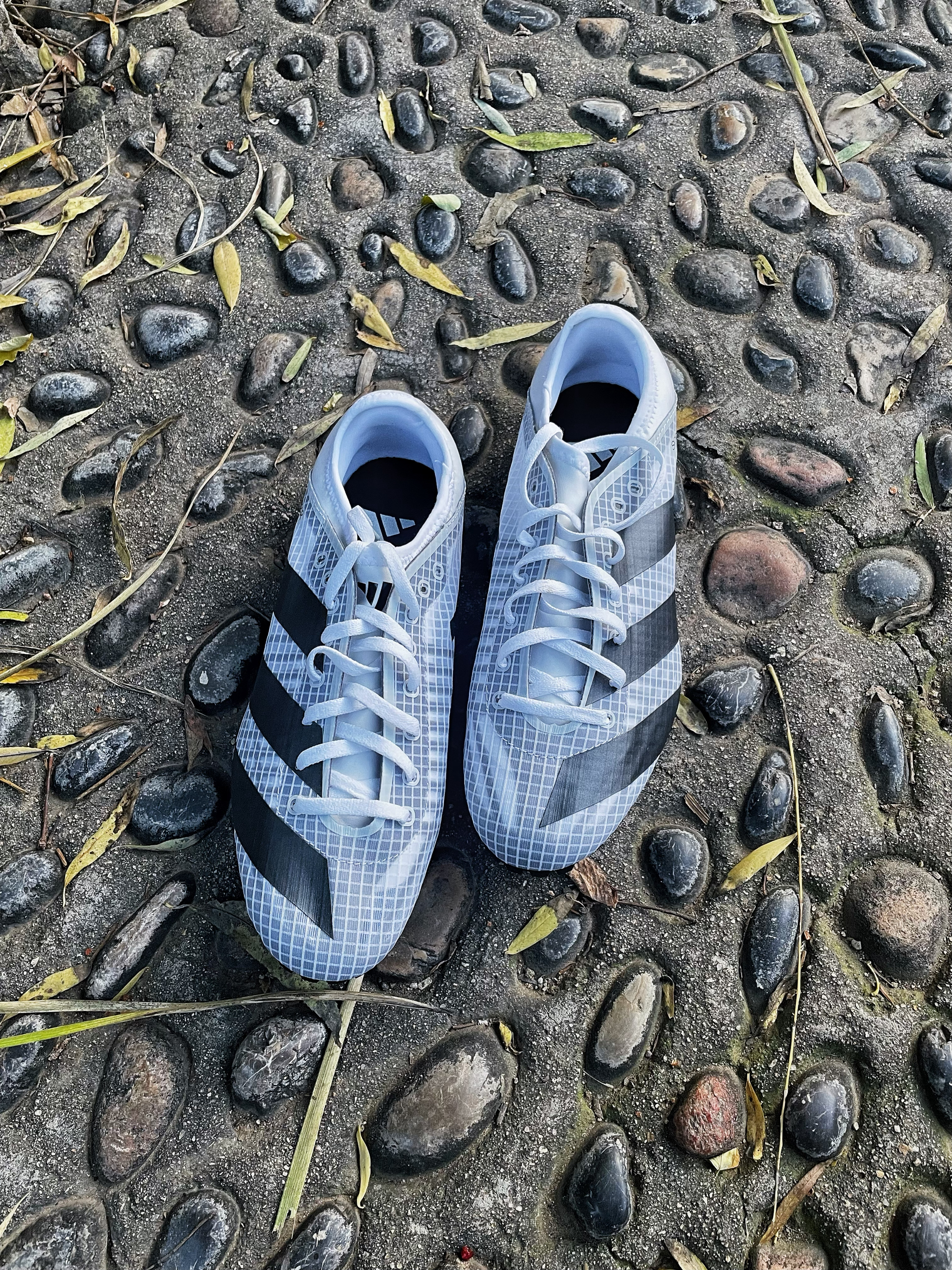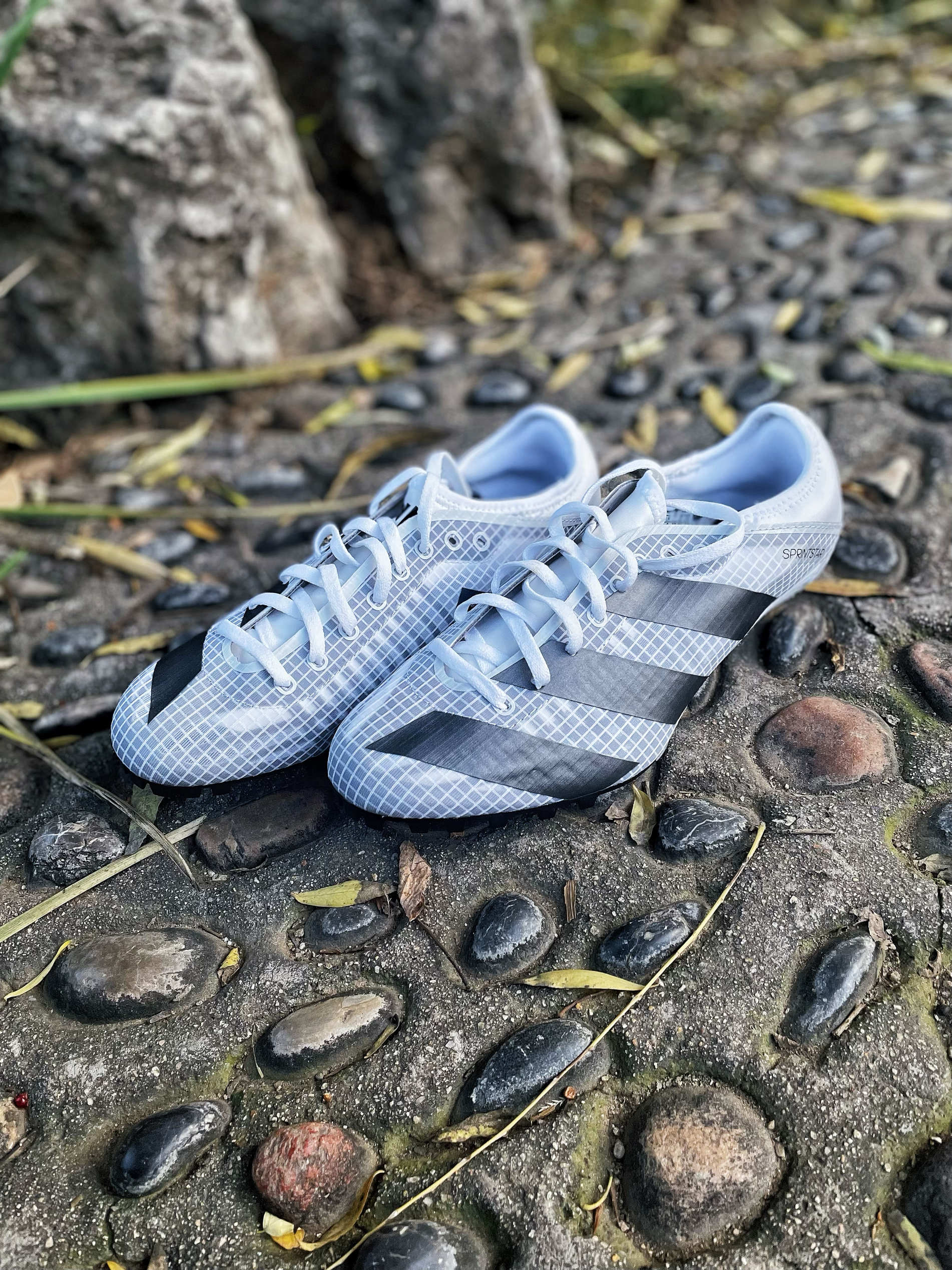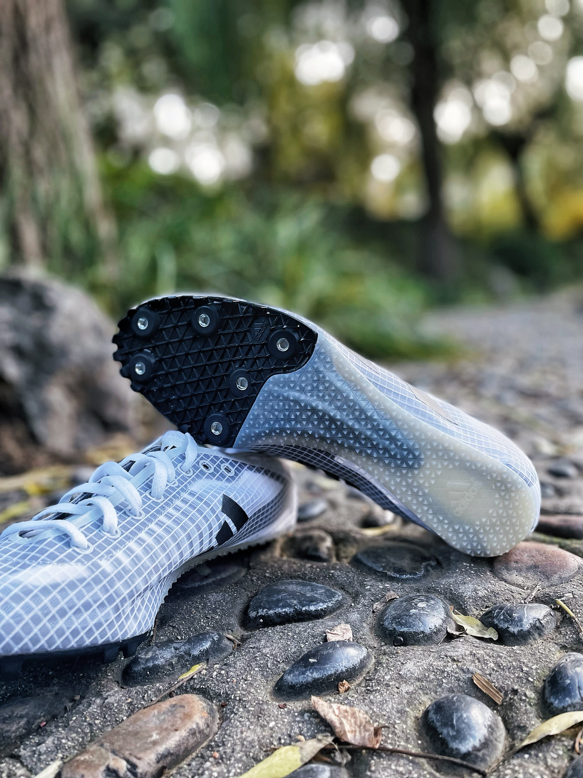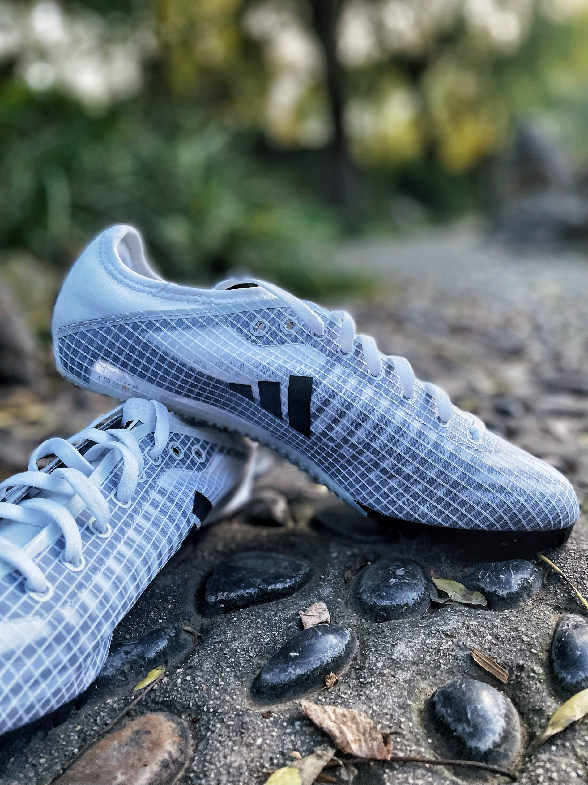 阿迪达斯入门短跑钉鞋,性价比非常高的一款黑白配色的适合绝大多数人的一款。 鞋整体很轻,针织物网面设计,透气性很好。后跟处棉质材质,使得脚跟不被磨。鞋底前脚掌可拆卸6颗鞋钉,并运用了Pebax推进板,后脚掌为橡胶小碎钉,这样的抓地力还是蛮不错的。鞋型比较偏瘦,脚面宽的朋友应该选稍微大半码的。 这款鞋,跑步的推进力也不错,加速情况下也可以保持不错的推进力。鞋面的耐磨损性也算是可以,属于比较耐用的。训练...