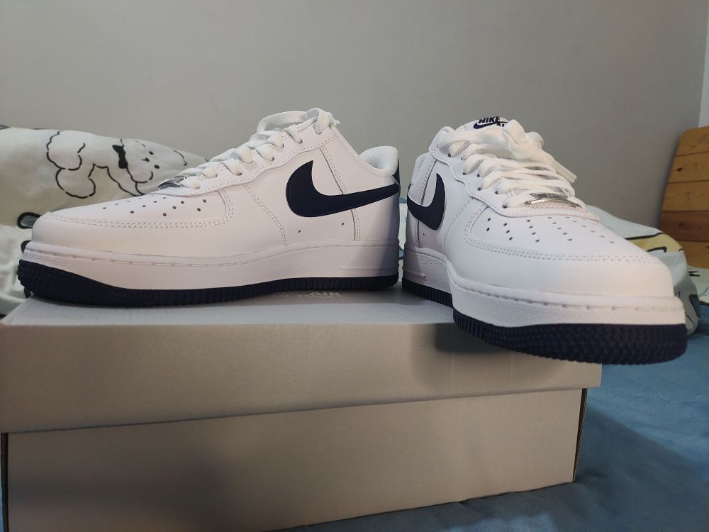 👟球鞋名称:空军一号蓝白配色 📌是否偏码【偏大/不偏码/偏小】:正码 ⛹️性能打分(每项满分均为10): 包裹:8 抓地:7 耐磨:8 稳定:7 透气:9 重量:8 📖总结评价:鞋子的款式和颜值都特别好看,价格方面也比较平价。