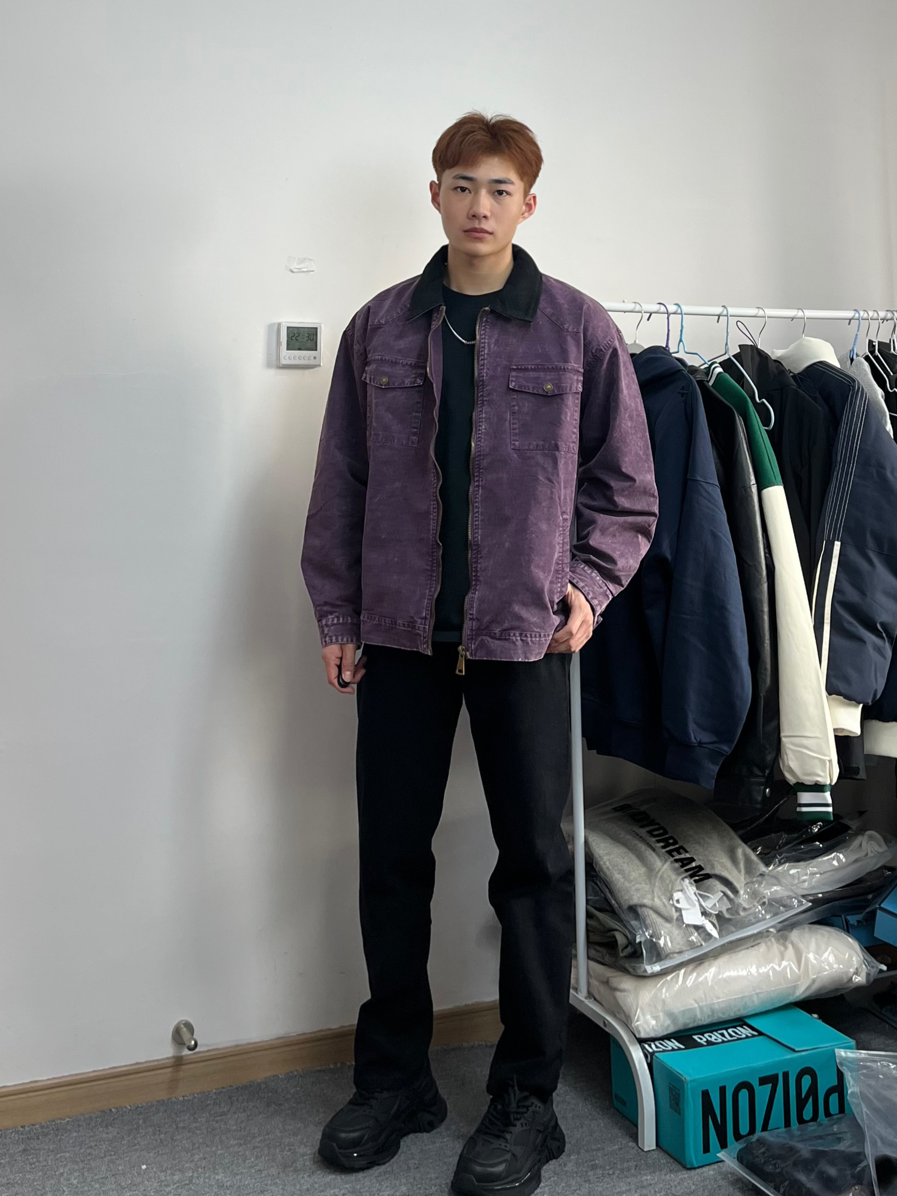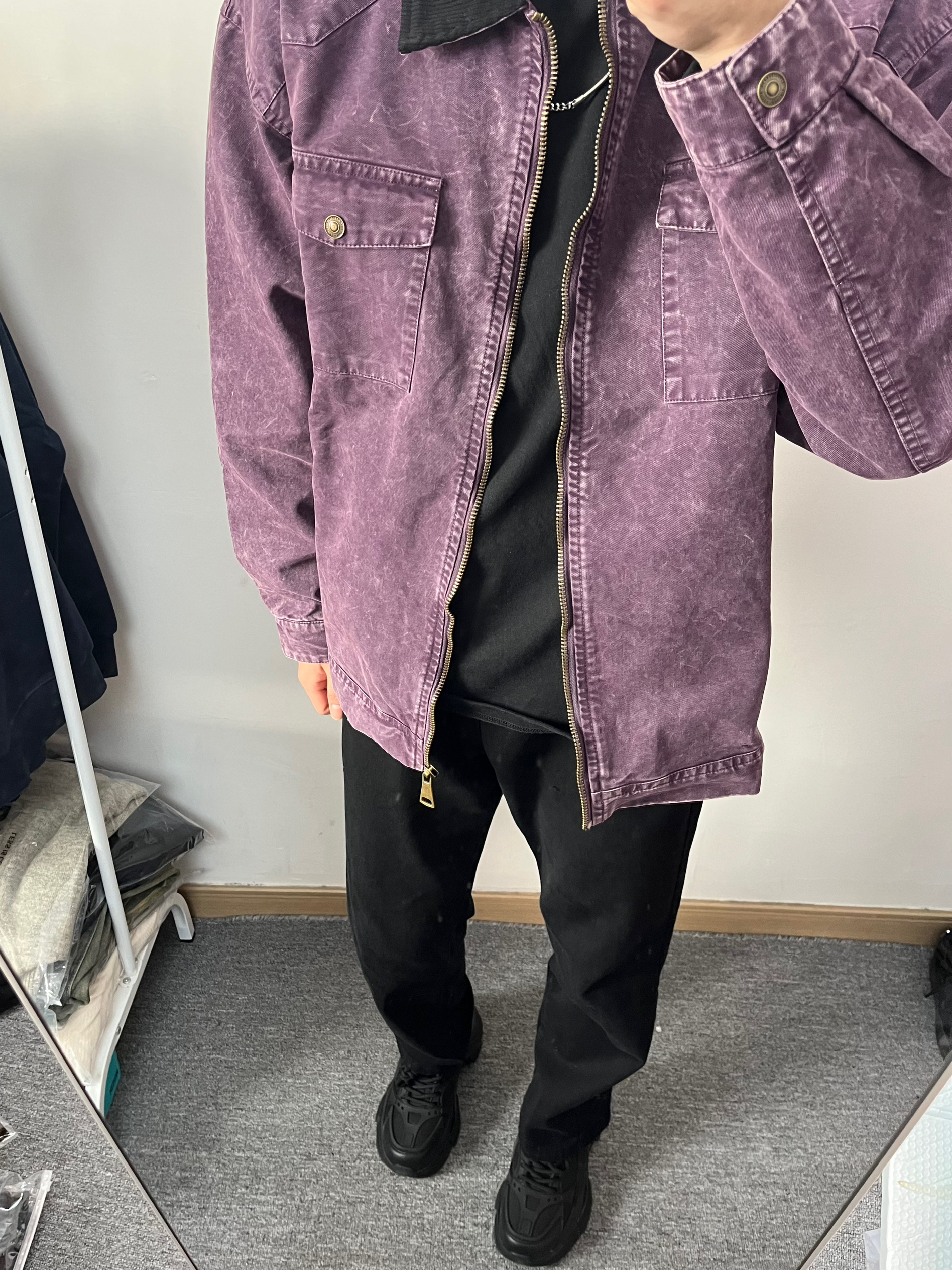 好喜欢这一套, 中性风格防风又保暖,面料 这方面真是没得说,做工用料很细致,领子做了灯芯绒设计,拉链顺滑,紫色上身很好看,可以尝试一下不同颜色,氛围感满满,版型修身立体很好穿,搭配黑武士老爹鞋,大爆米花底即能增高又显得腿部更加修长,底部软糯,走路多了不会累脚,