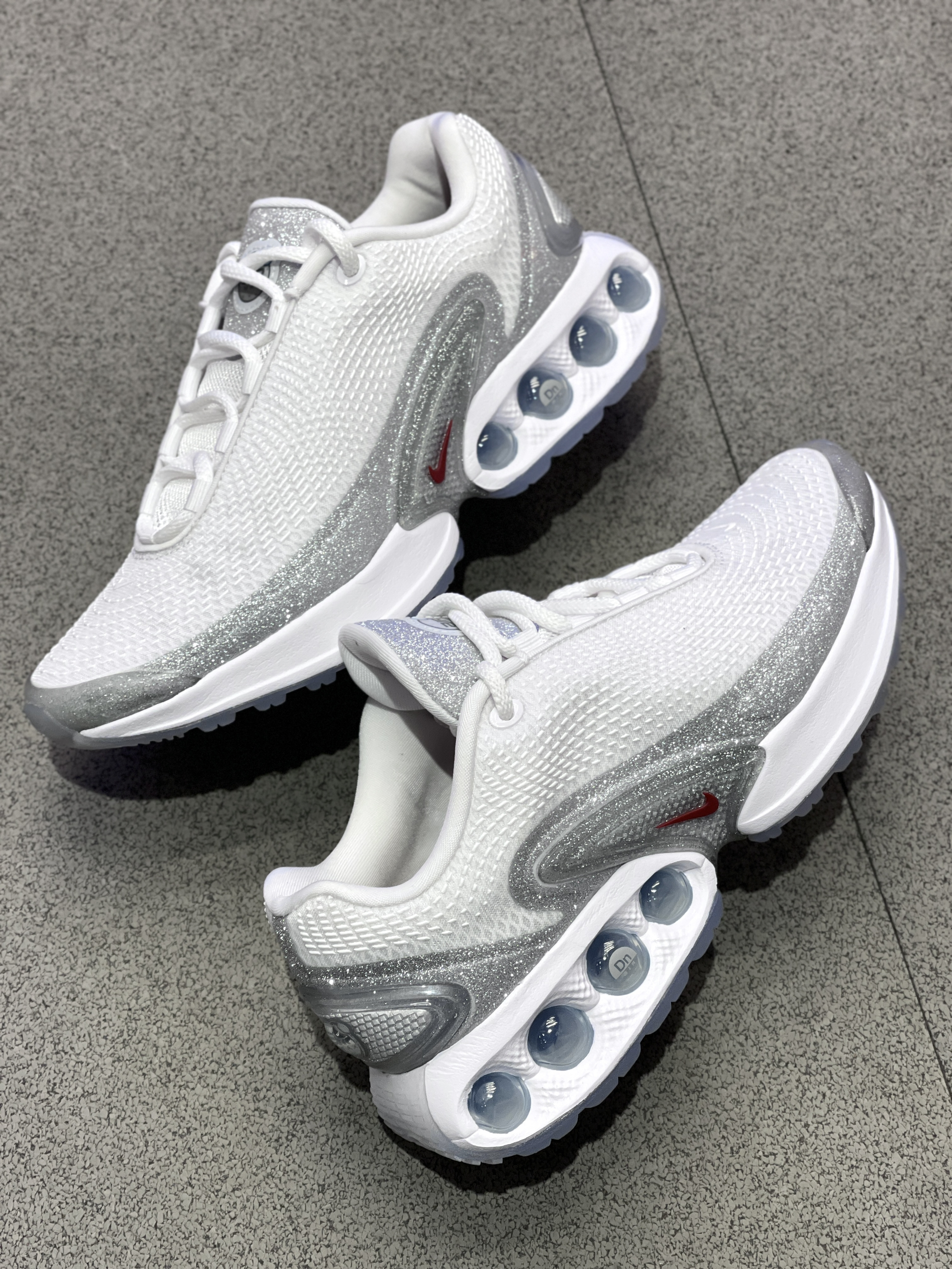 越来越多的小伙伴选择Nike来做婚鞋~💒 Nike|Air Max Dn “Team Red” 低帮跑步鞋“浅灰色”🪩,开箱还是独特前卫的DN鞋型,四个气柱加持➕BulingBuling的爆闪鞋面,整体层次感十足,小众又高级~🔥
