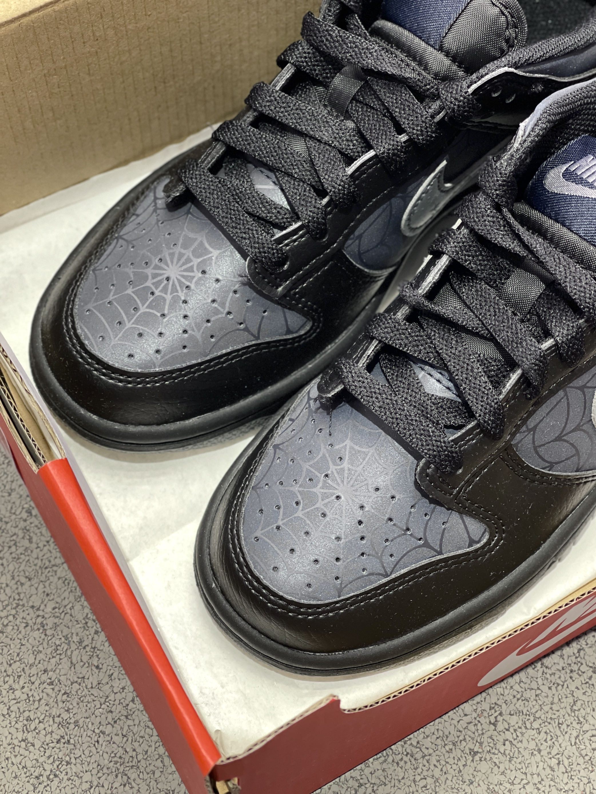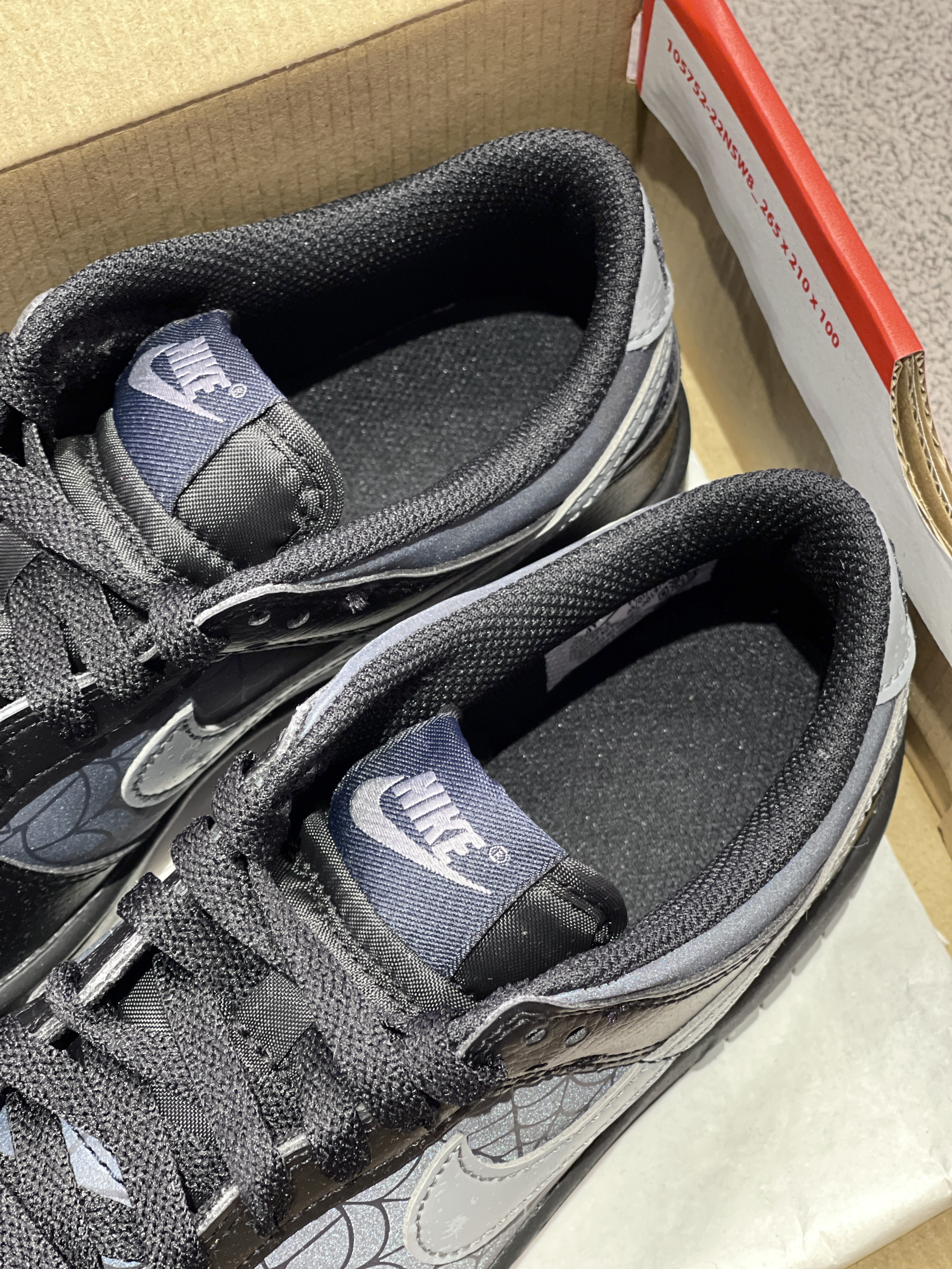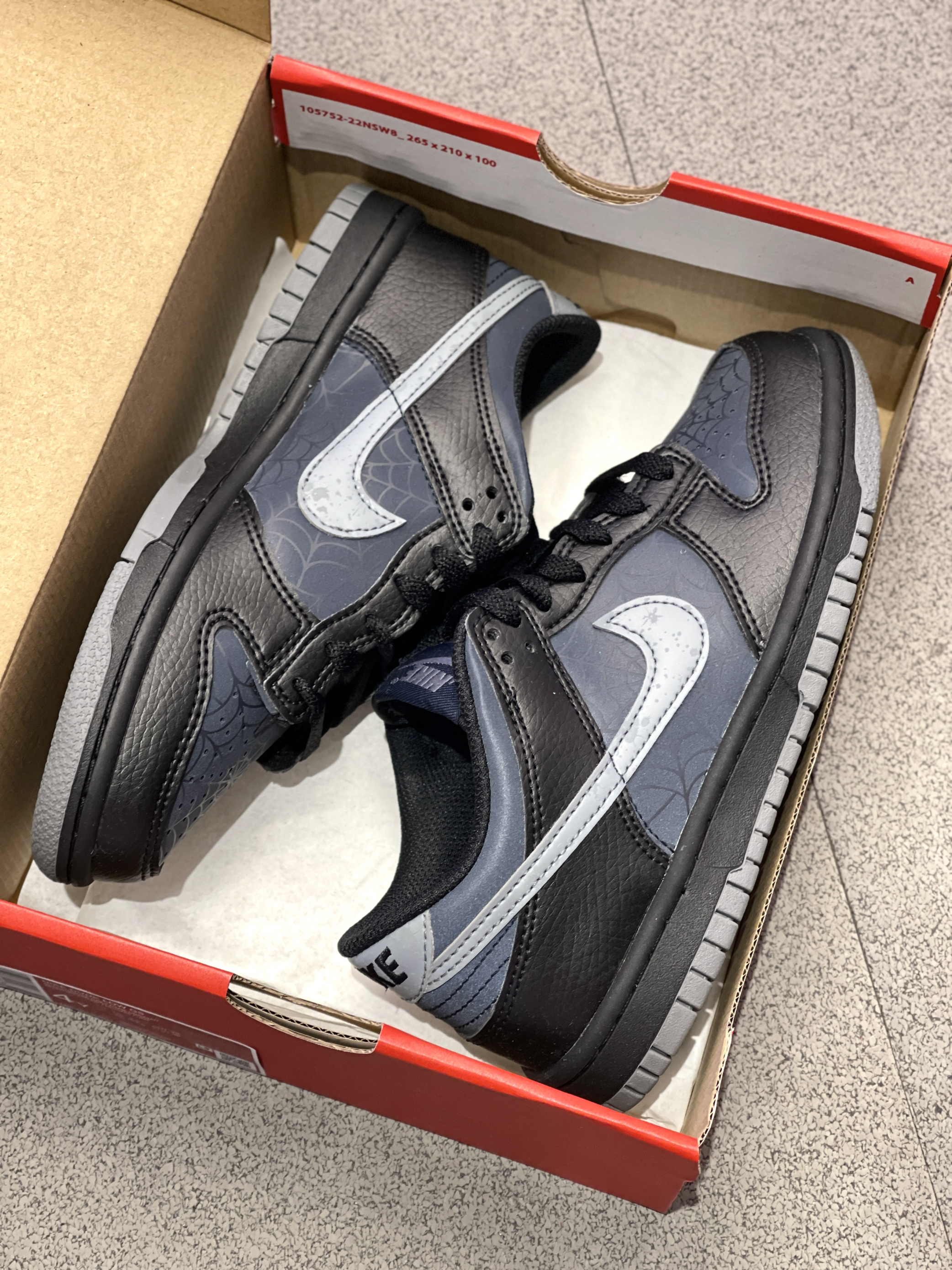 虽然是普款Dunk,但一点也不输联名款的细节! Nike|Dunk 低帮板鞋🕷️,实物开箱是经典百搭的低帮Dunk鞋型,黑灰配色鞋面➕蛛网、夜光设计,整体酷炫细节丰富!400+的价位,可惜没有男码!🥲
