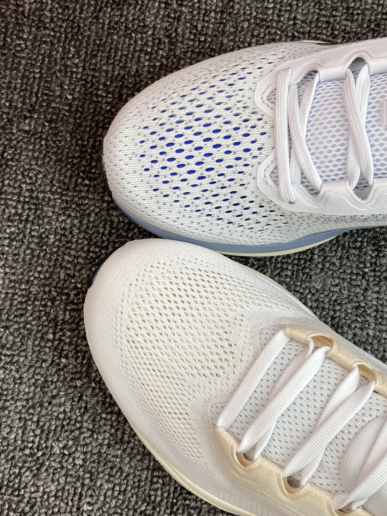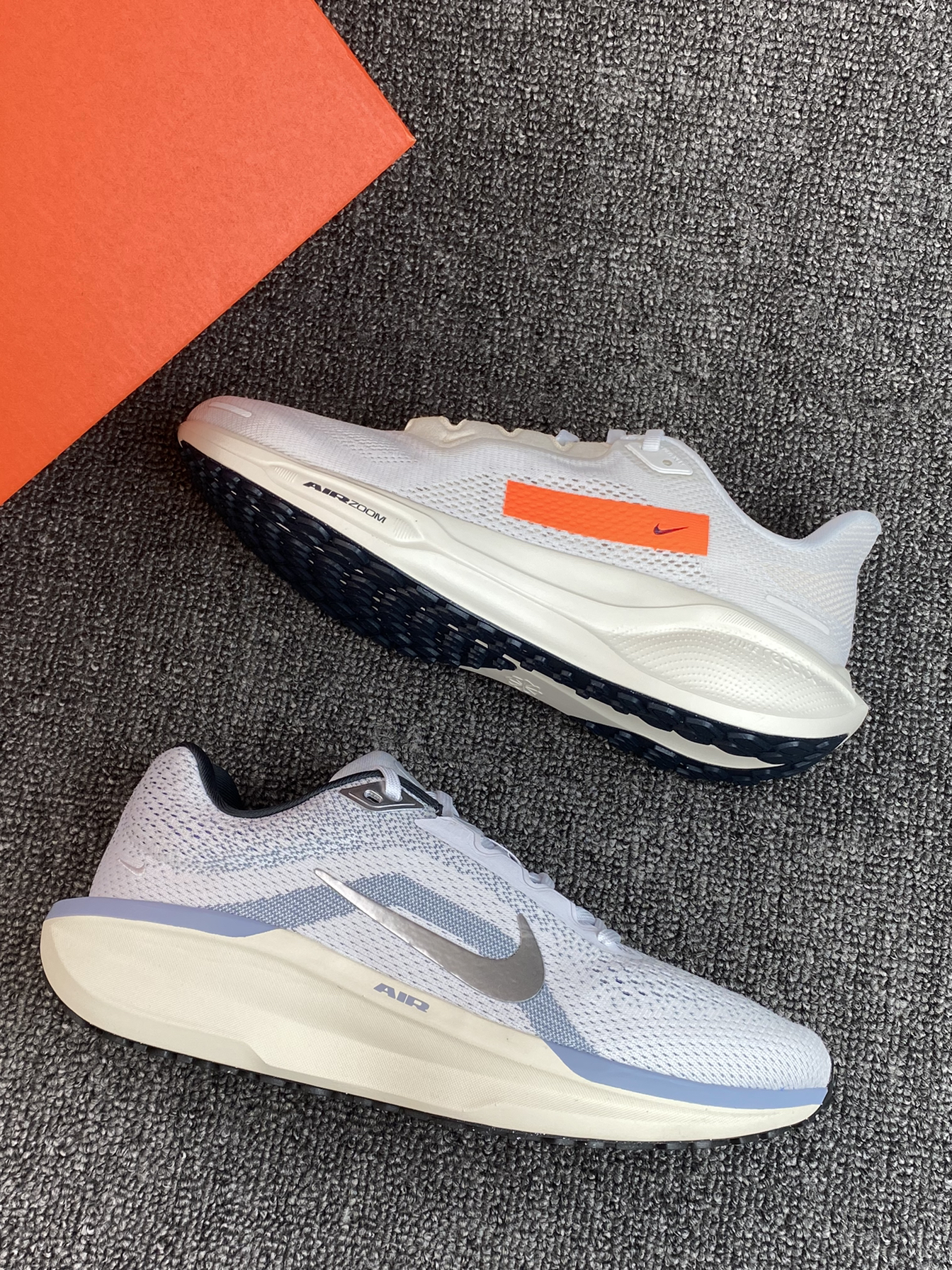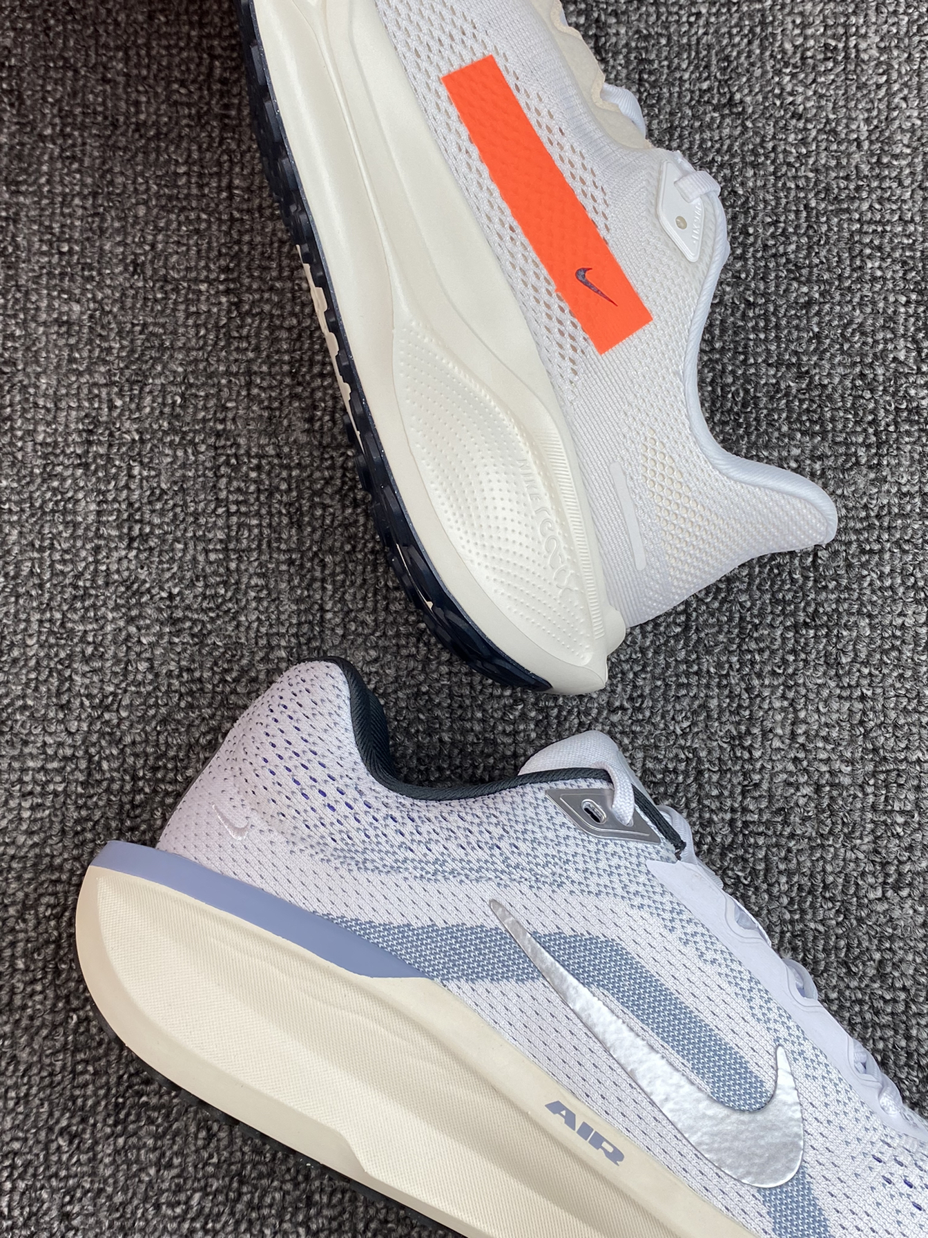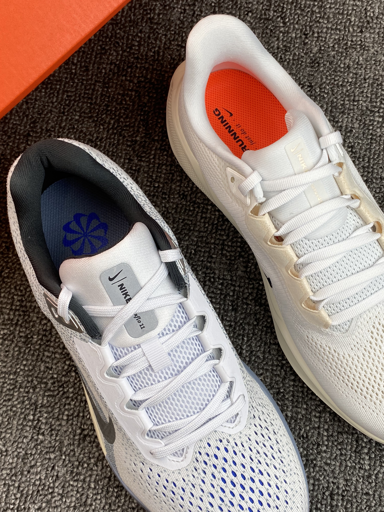 ✨两双跑鞋都是我平时运动会选择的,脚感舒适透气,而且颜值上也是我比较喜欢的运动感。 🌸飞马41这双亮点还是侧边的Logo,改用了标签式,我觉得很亮眼,比之前的款来的独特些👍Winflo 11蓝白色,少年感十足,相对更沉稳些吧。 💫配置都是气垫➕泡棉,脚感没得说,平常通勤、跑步等都能穿,如果是你,你会选哪双?