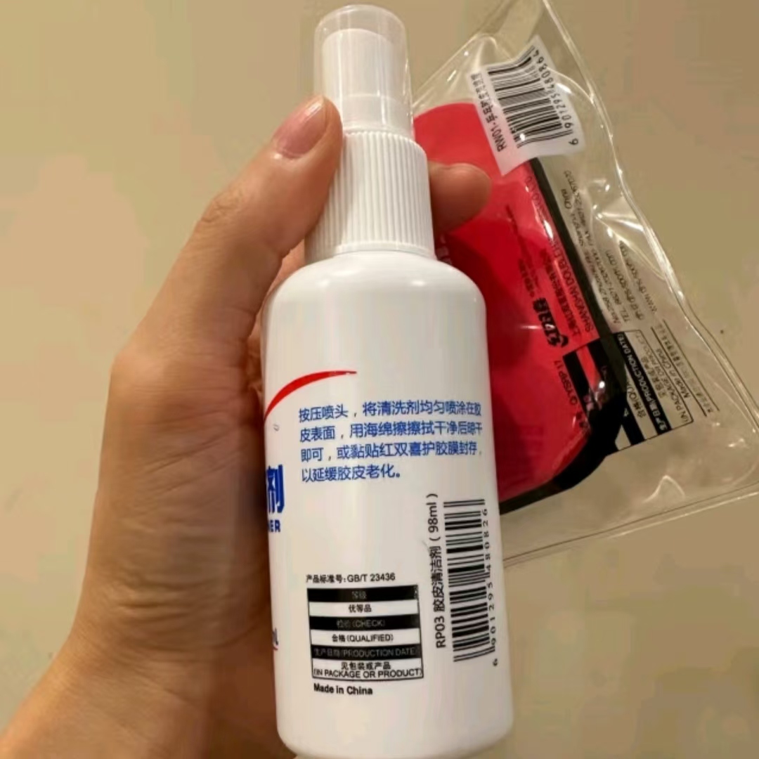 这个清洁剂和海绵擦的套装我一直在用,真的很不错。清洁非常到位,能把乒乓球拍胶皮清理得干干净净。而且一瓶的量很足,可以用很长时间,性价比超高。图片源于网络 侵删。