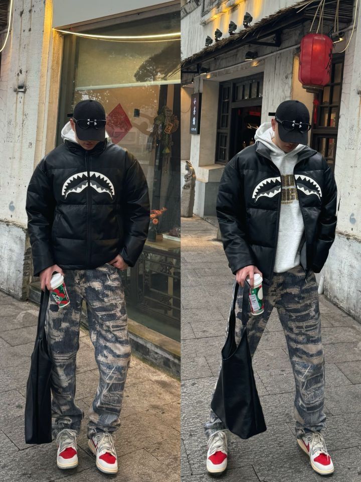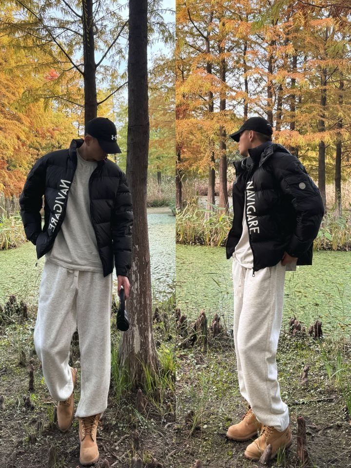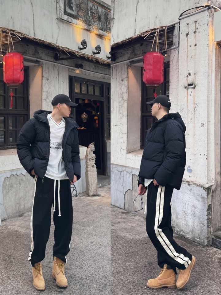 入冬羽绒服都准备好了嘛👻 想帅又保暖咱该怎么穿? 一周穿搭作业告诉你☑️ 第1️⃣ 这一套是以黑灰色系为主 简单好穿 不挑人 关键羽绒服版型好看 显肩宽 小个子穿了都显高👻 灰色裤子➕大黄靴 冬天穿不要太好看! 👔 #NAVIGARE 意大利小帆船 👖 #P8H9 👟 #Timberland 添柏岚 第2️⃣ 这身呢偏潮范一点 首先羽绒服胸前鲨鱼嘴造型的设计挺特别 夹克的版型穿着肩...