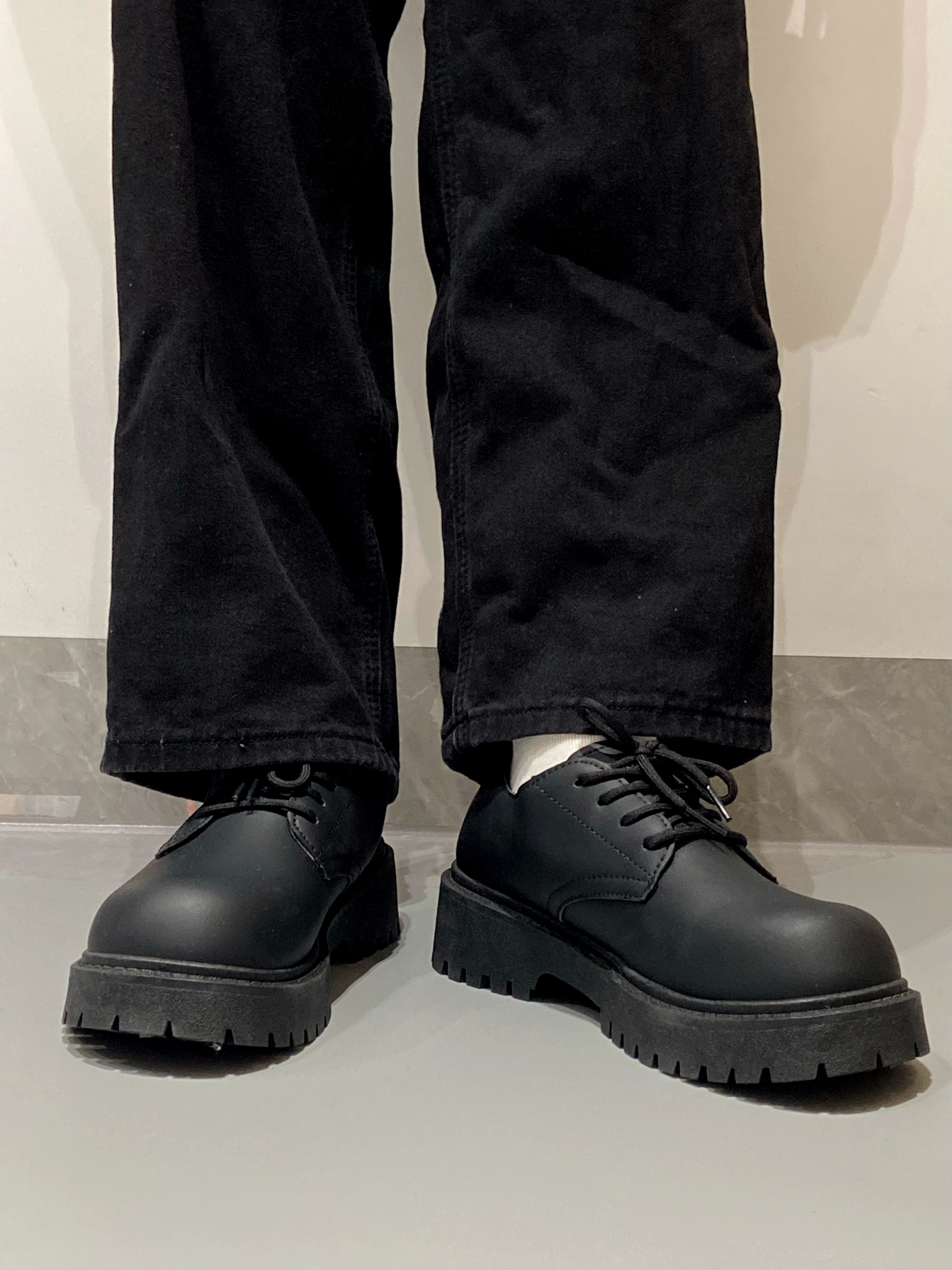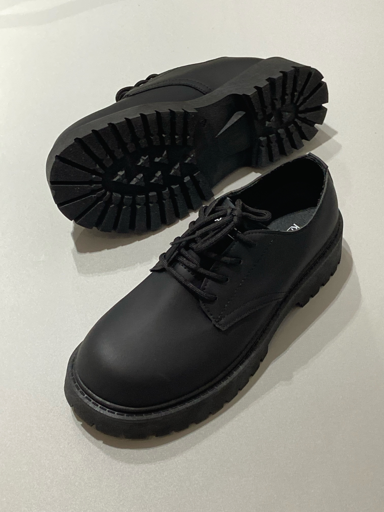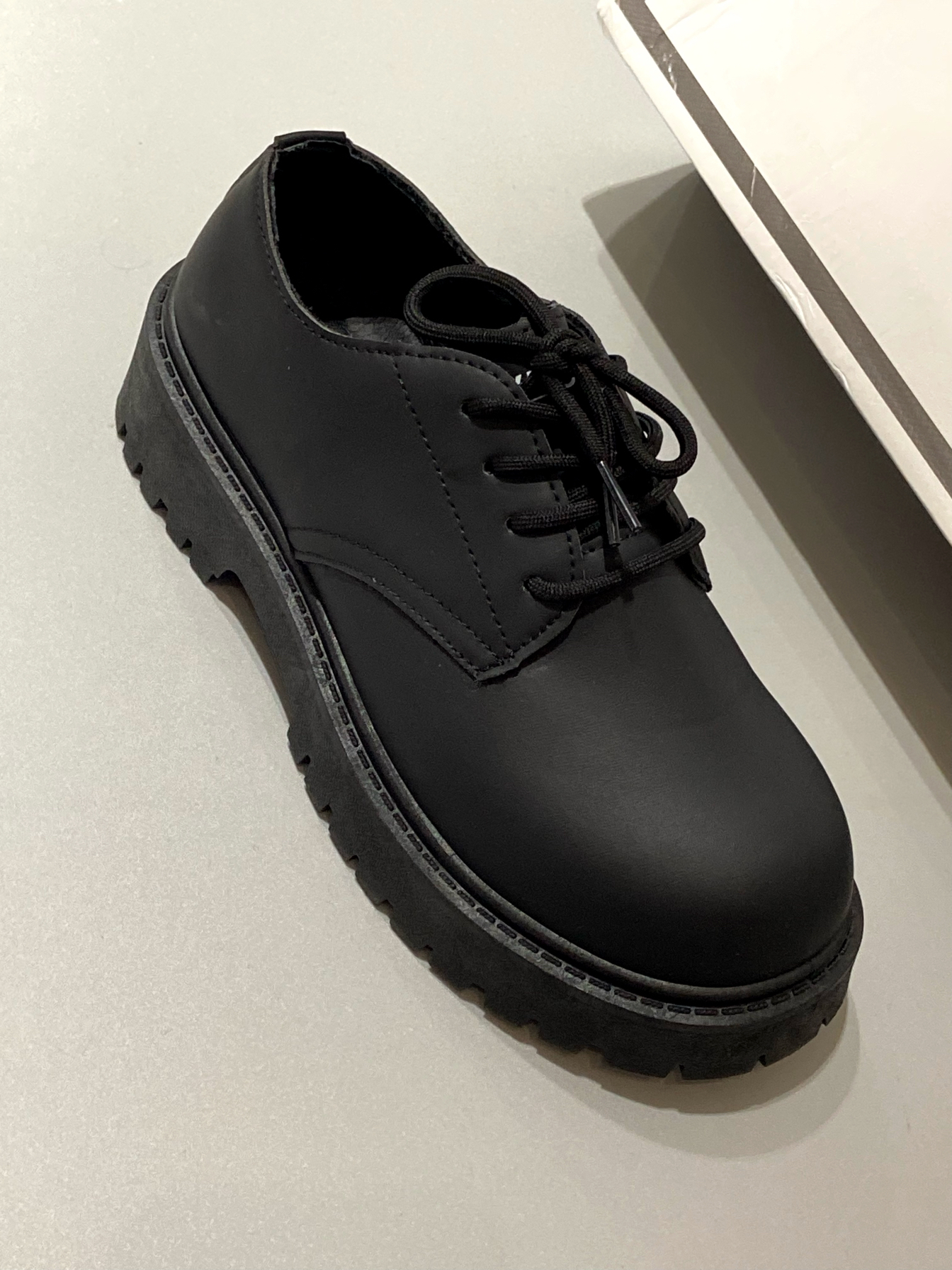 最近种草了很久的凯撒德比鞋 鞋子是全黑的 高级感满满 4cm左右厚底 穿上我也有大长腿了😃 脚感蛮舒服的 久穿走路不累脚 黑色日常好搭配 随便配条阔腿裤都嘎嘎酷 ~ 不过尺码偏大比较多 我平常穿球鞋 41的 ,这个40还得厚袜子才行 可能脚瘦,正常脚型建议拿小一码 !
