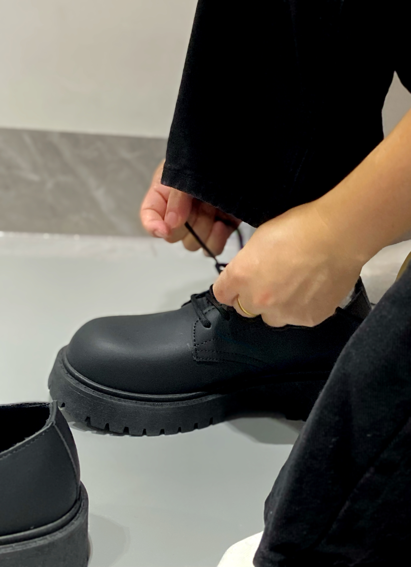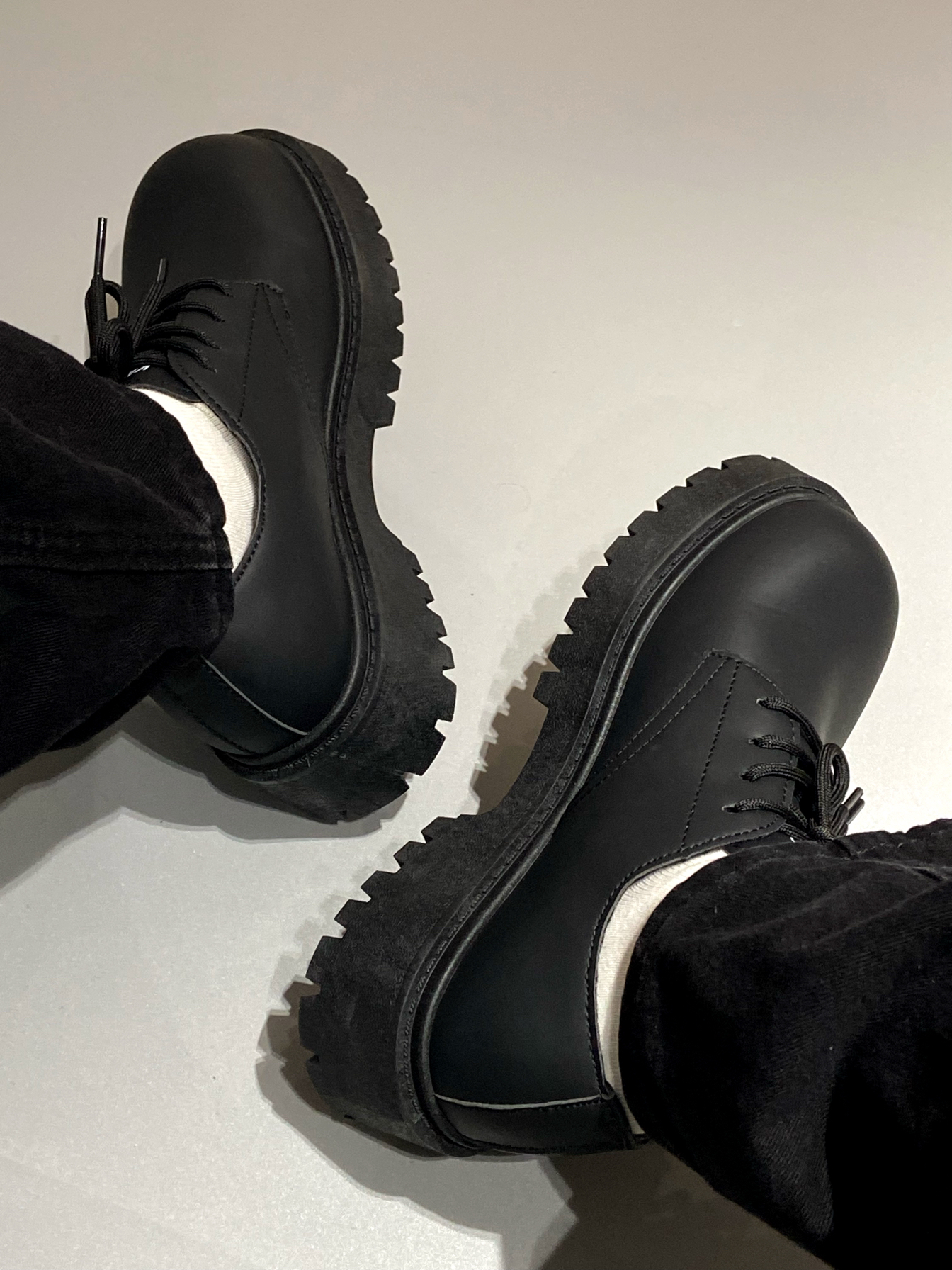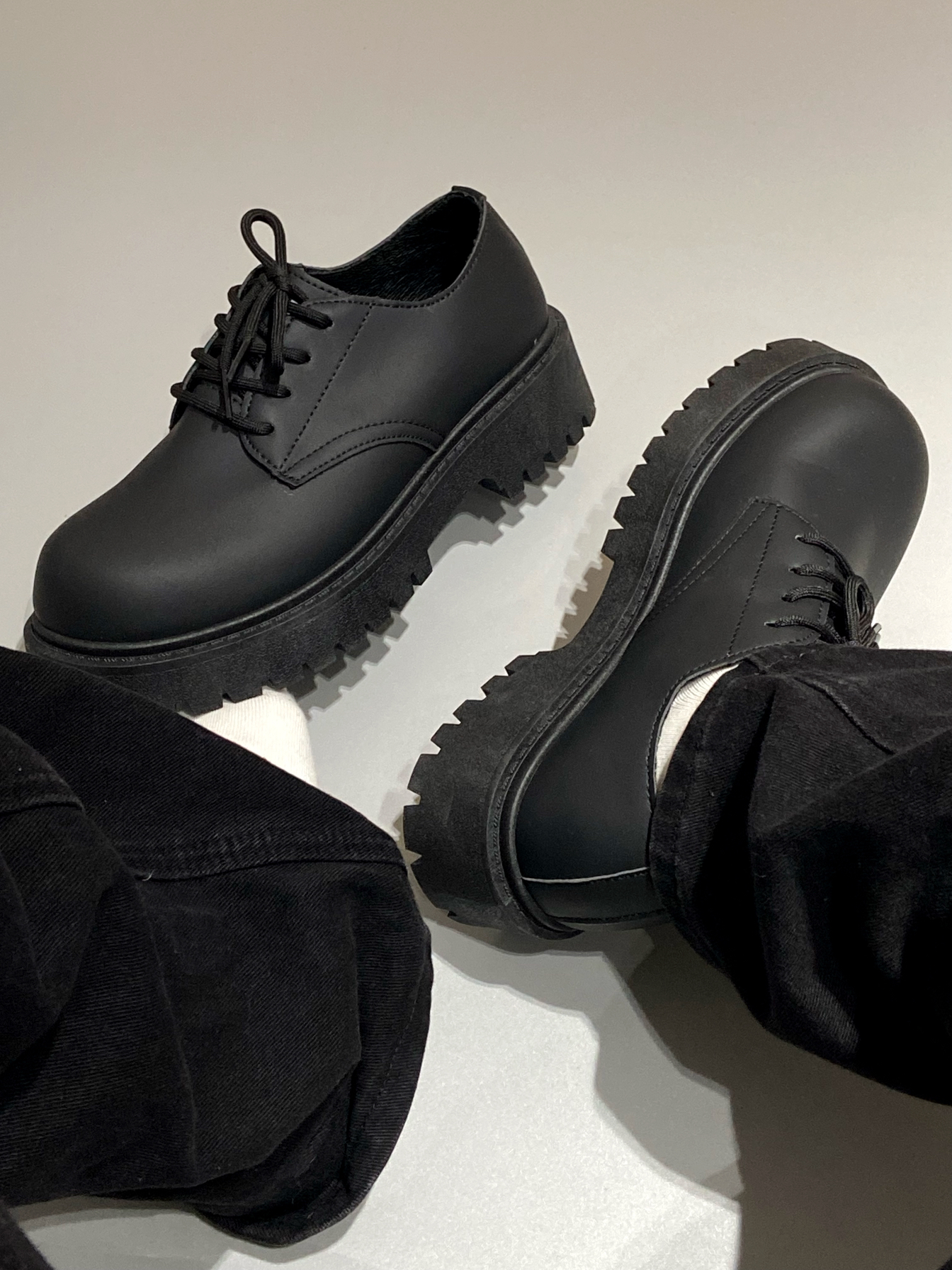 最近种草了很久的凯撒德比鞋 鞋子是全黑的 高级感满满 4cm左右厚底 穿上我也有大长腿了😃 脚感蛮舒服的 久穿走路不累脚 黑色日常好搭配 随便配条阔腿裤都嘎嘎酷 ~ 不过尺码偏大比较多 我平常穿球鞋 41的 ,这个40还得厚袜子才行 可能脚瘦,正常脚型建议拿小一码 !