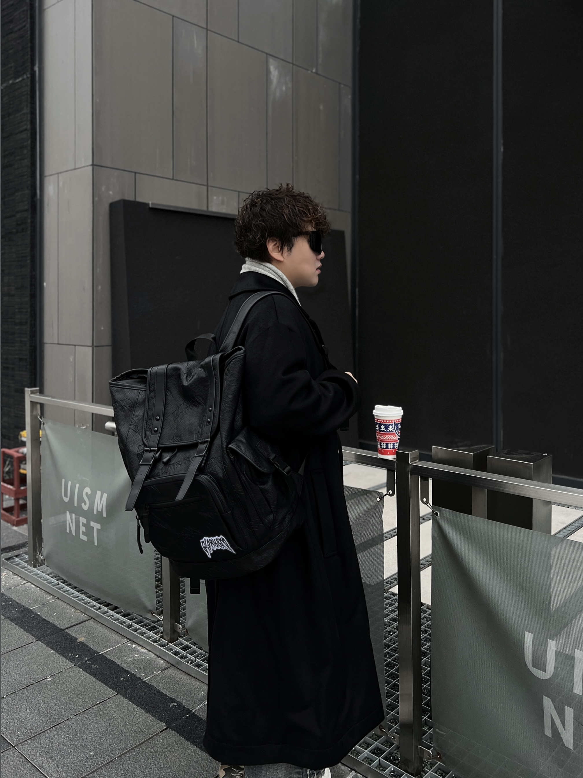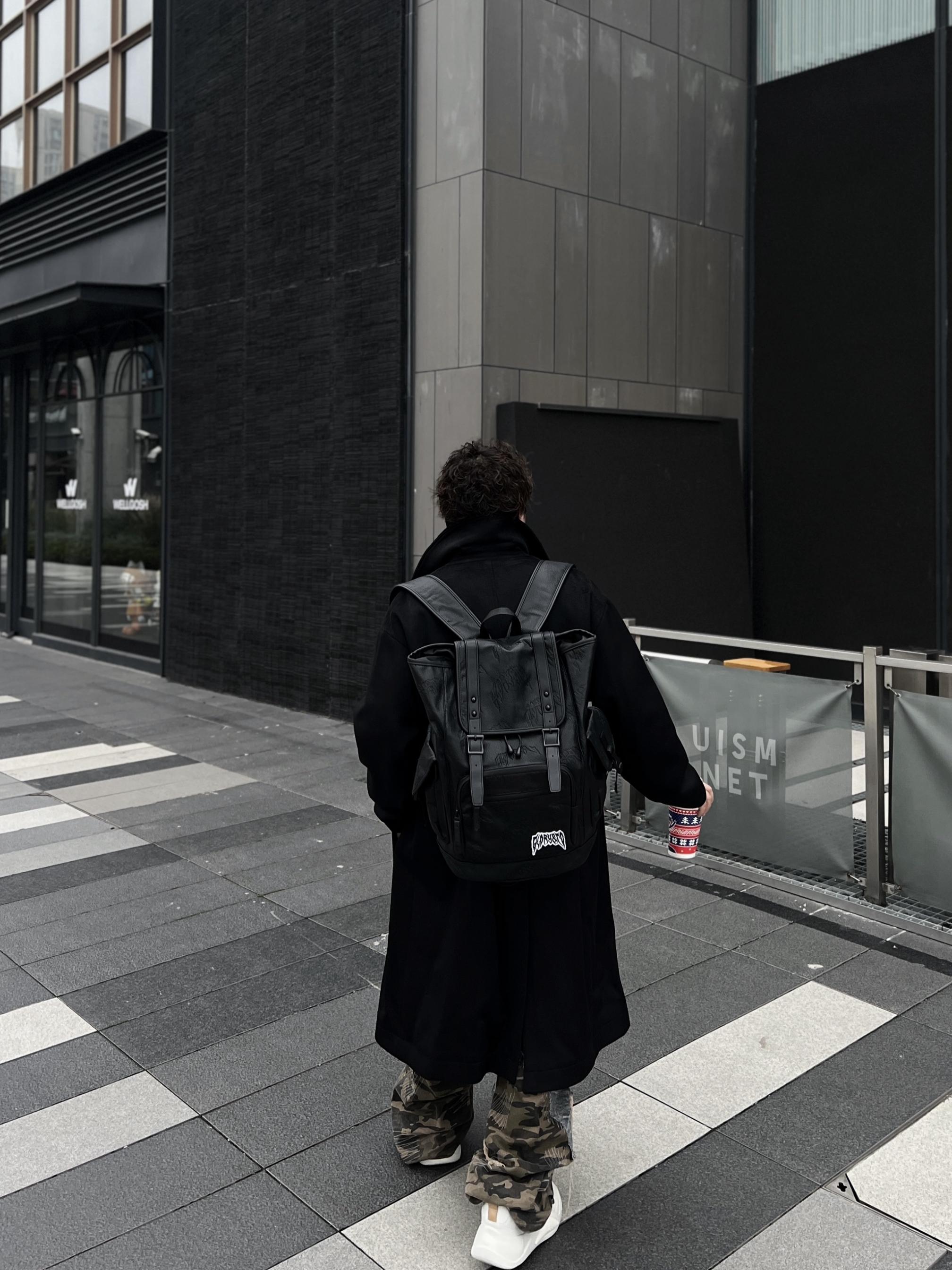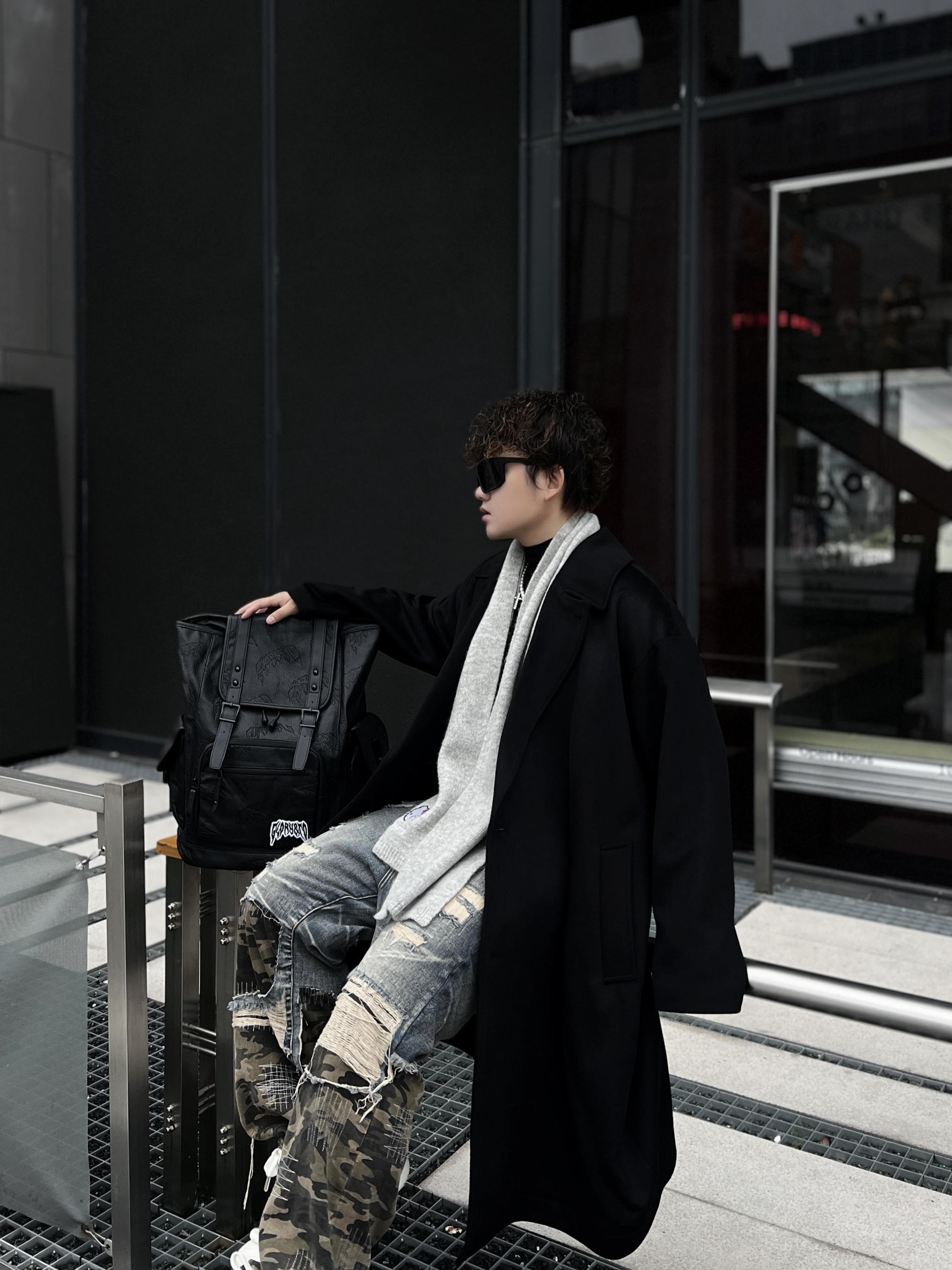 ‼️秋冬的时尚感总是来的要早一点📸 大衣🧥真的能改变穿搭品味 长款黑色就算是小个子也能轻松驾驭 自己要你选对单品叠加就Ok了☝️ 💥迷彩拼接长裤与白色面包鞋的叠加 在色调上真的是完胜了!