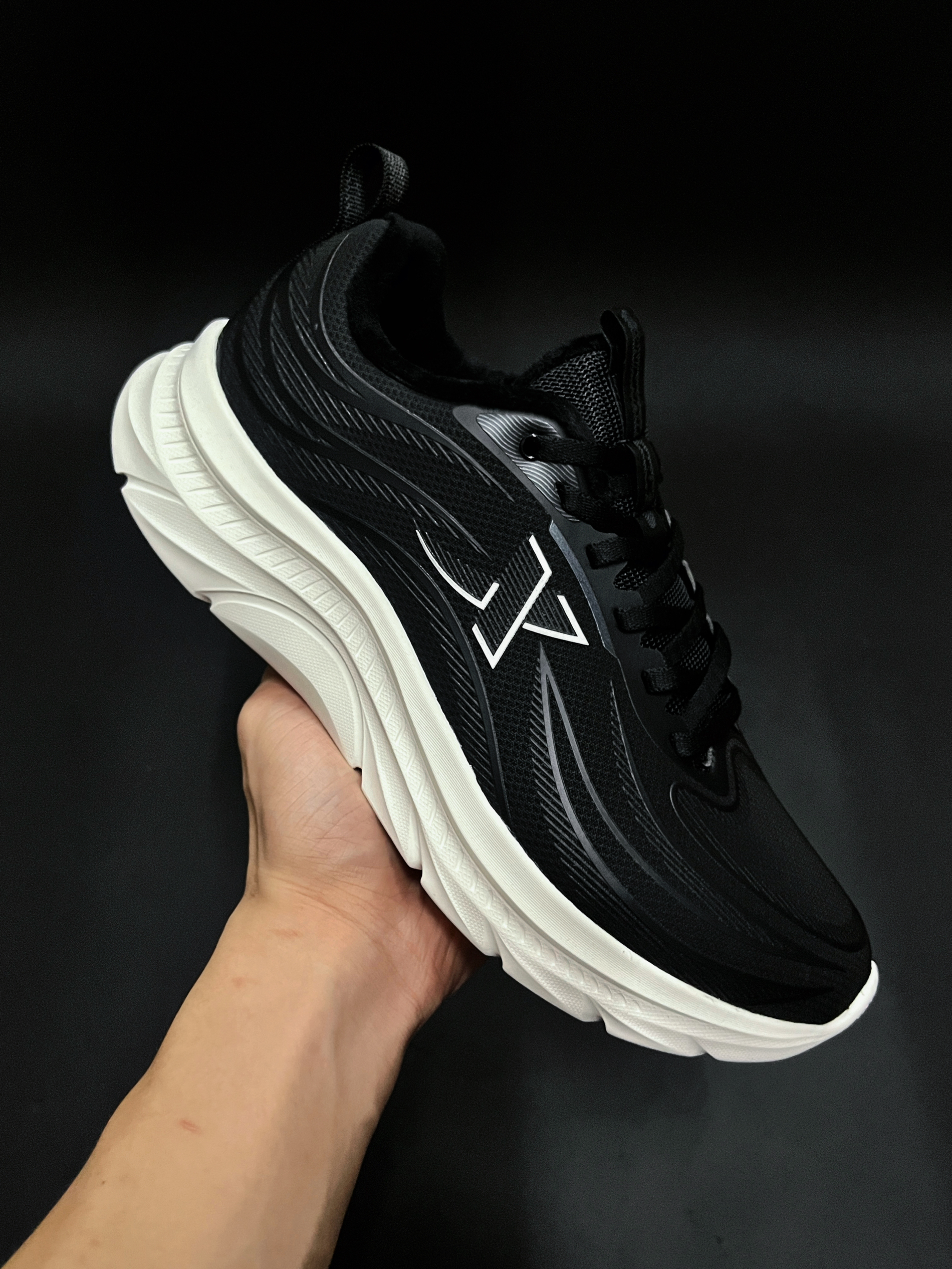 特步 轻悦Fw 黑色/银色是一双小众平价的宝藏 跑鞋,脚感不错上脚非常轻质,整双鞋的鞋面防水、内里加绒,非常适合冬季的日常出行和跑步,也是送给长辈做老人鞋的不二之选。