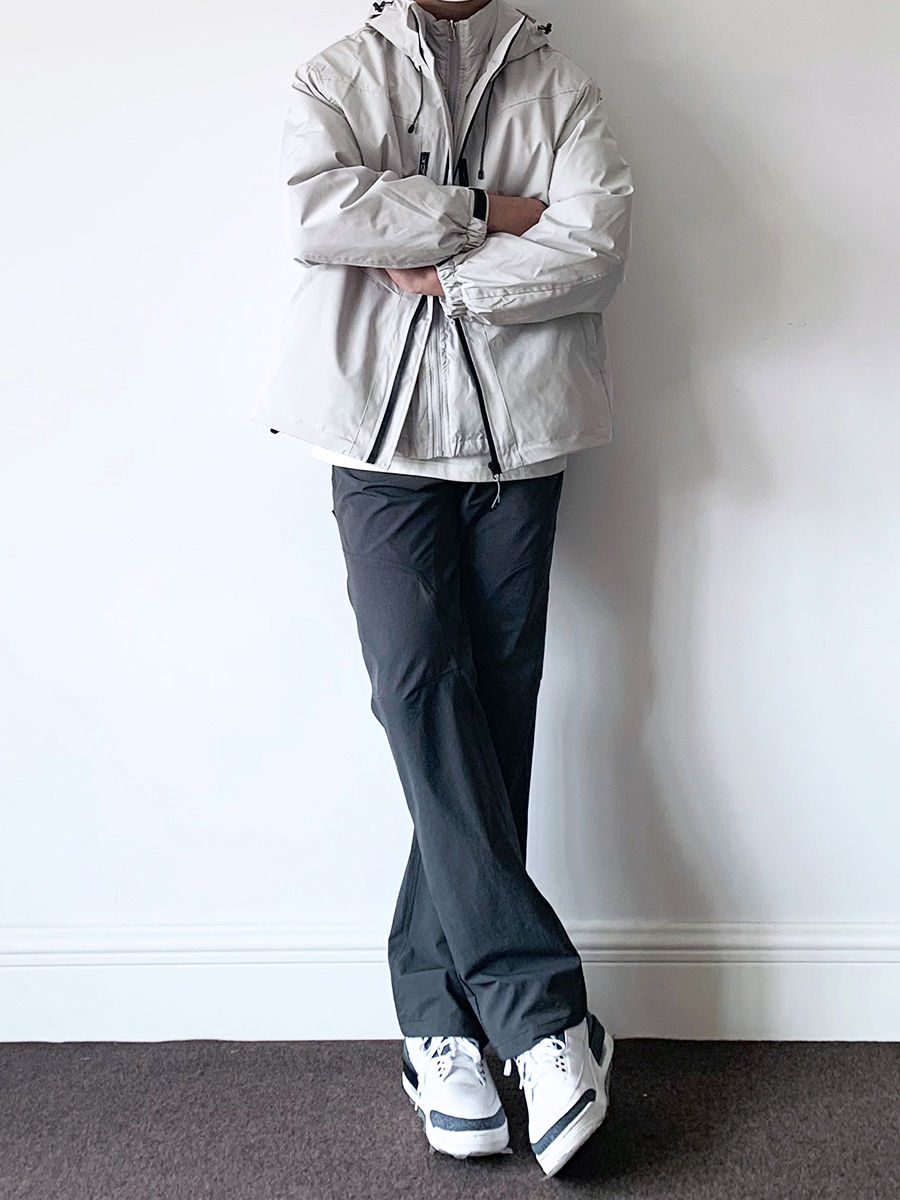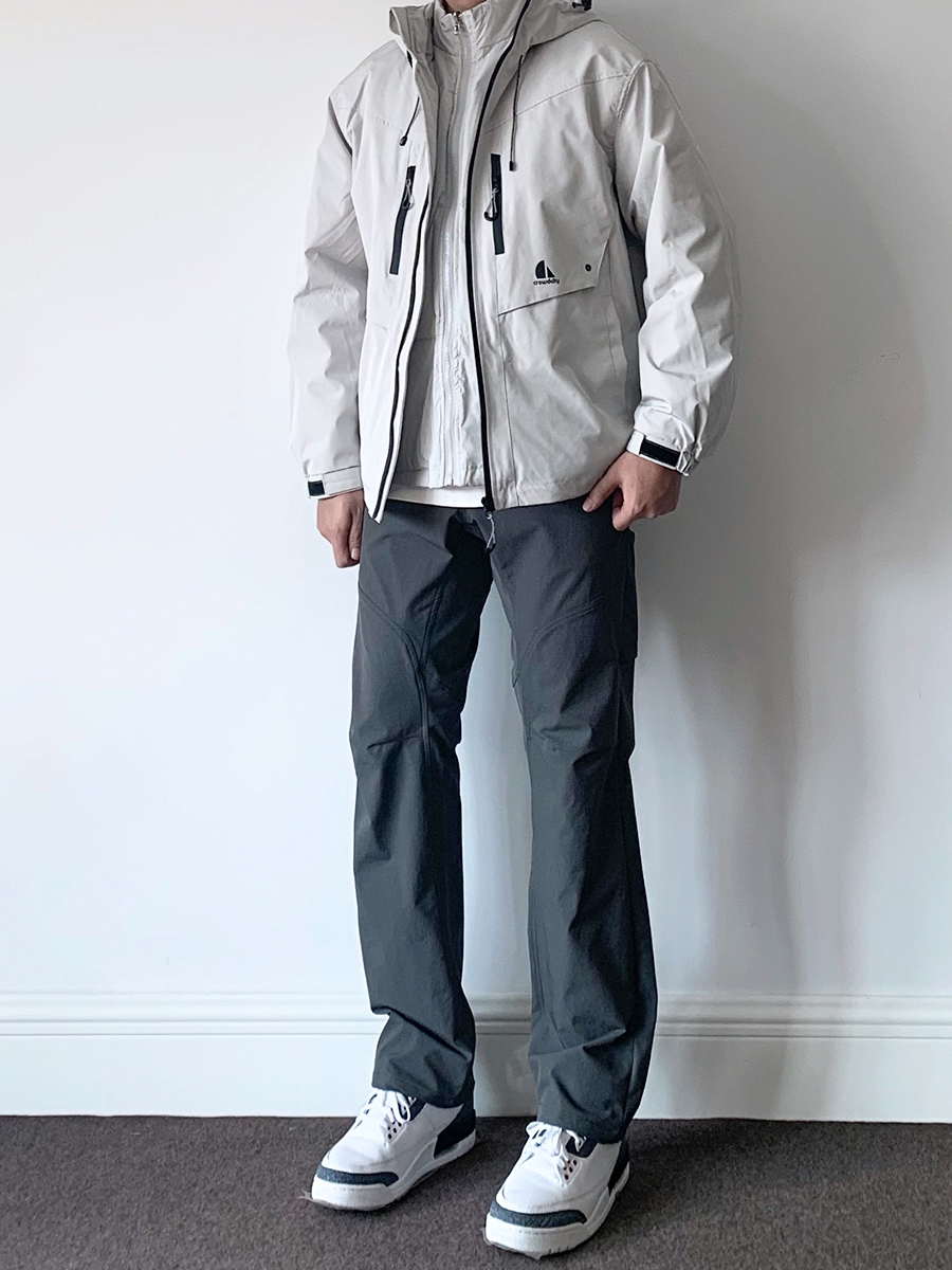 今日穿搭: 灰色三合一羽绒服 搭配灰色软壳机能裤搭配aj3球鞋 运动户外工装风拉满!