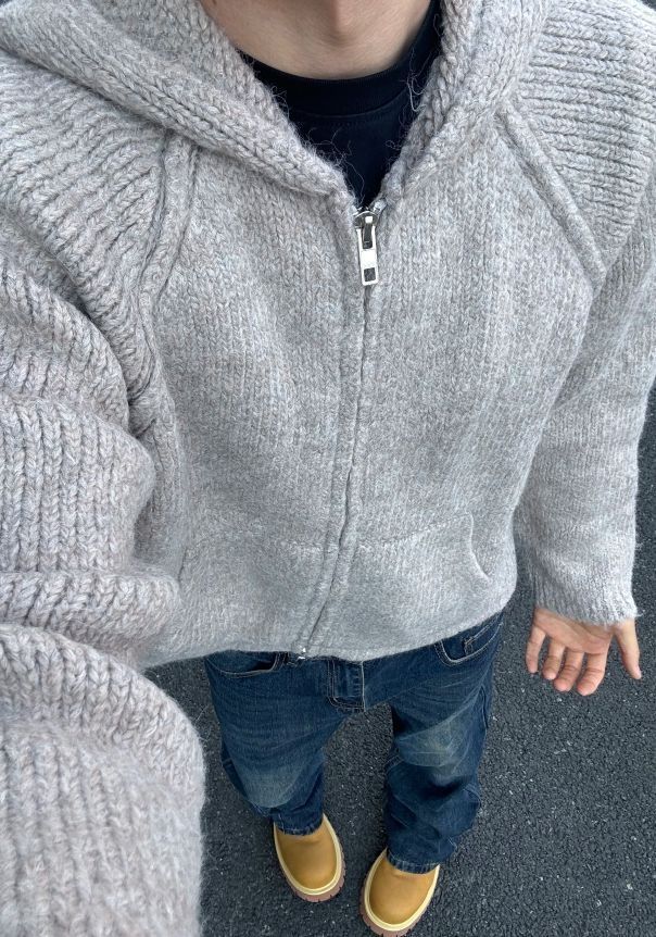 身高|体重:178cm|145斤 🧍♂️ 穿搭风格:氛围感男友风 👔 上衣:百搭开衫氛围感毛衣 👖 下装:牛仔裤 👟 鞋子:大黄靴