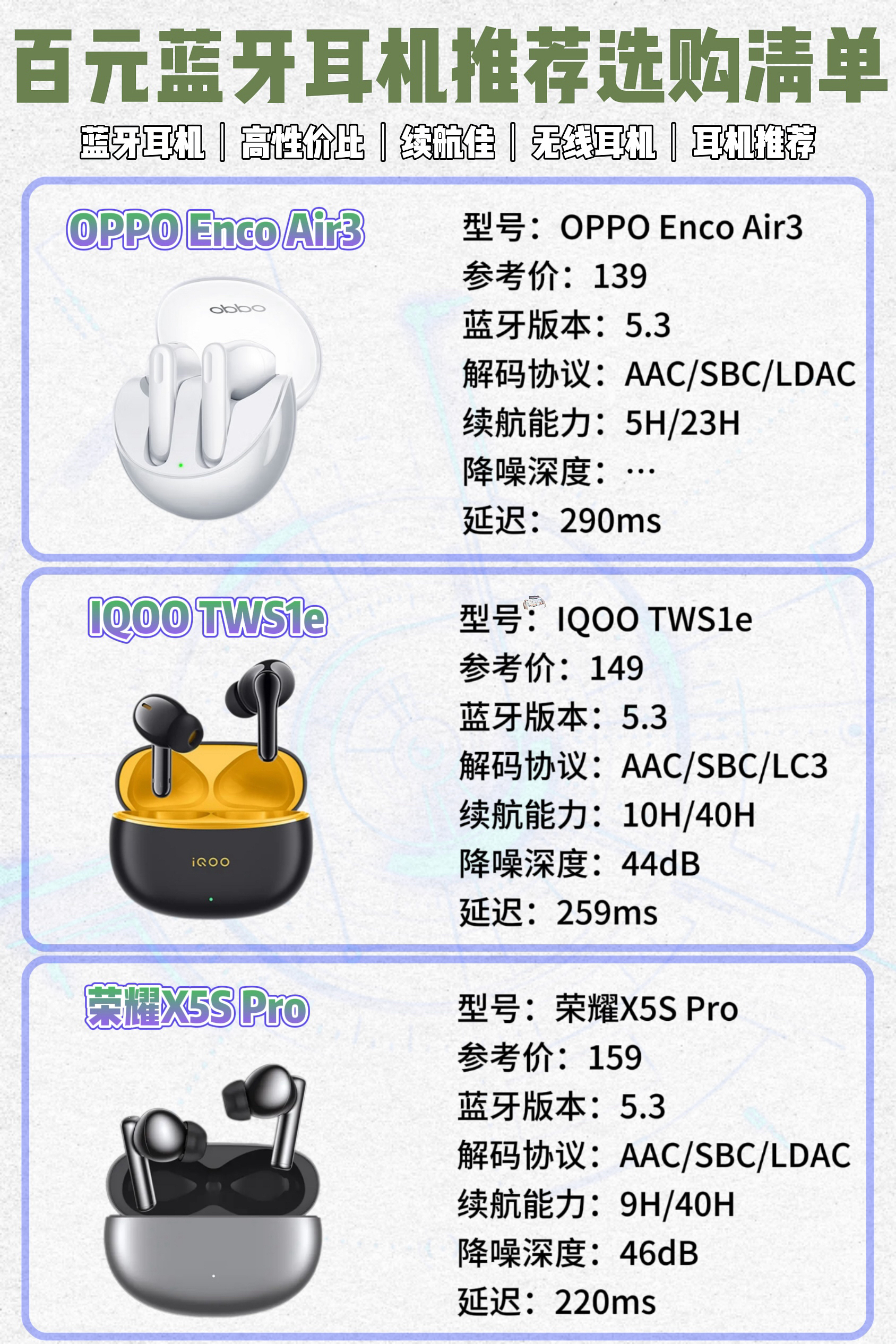 🎧本期给大家分享11款高性价蓝牙耳机。 🎧价格都在百元价位段。 🎧对于小白想入手蓝牙耳机的,可以参考一下这几款!