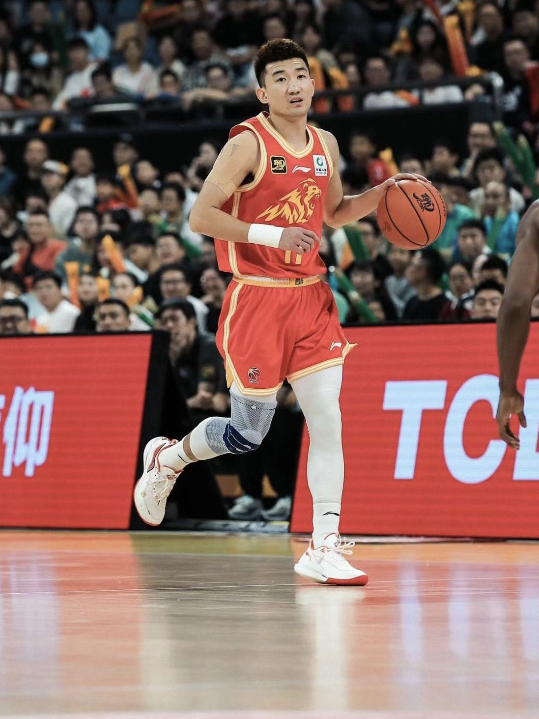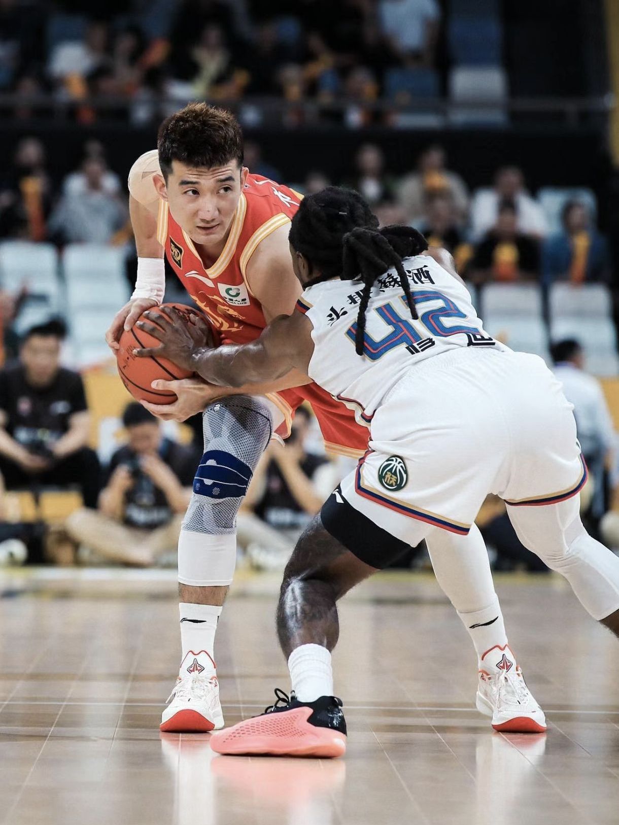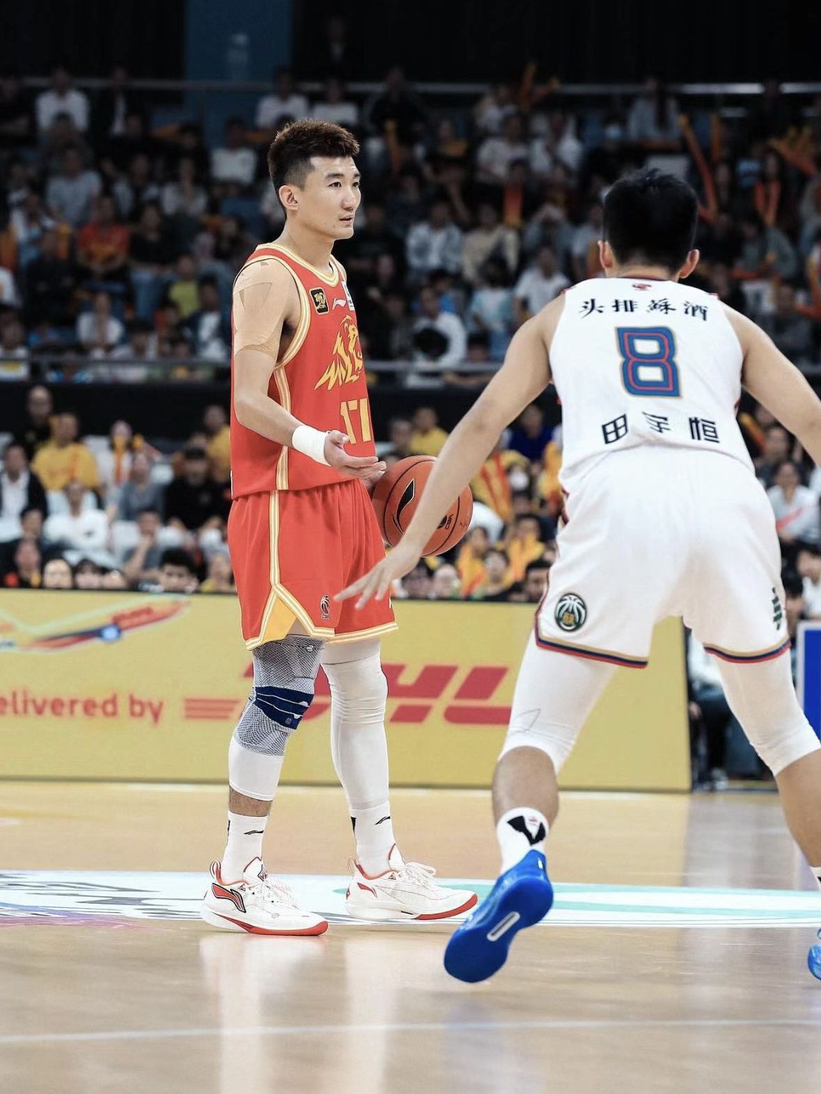 浙江广厦球员孙铭徽在赛前训练上脚巴特勒3代「咖 啡」配色,比赛中上脚巴特勒2代「主场球衣」配 色。