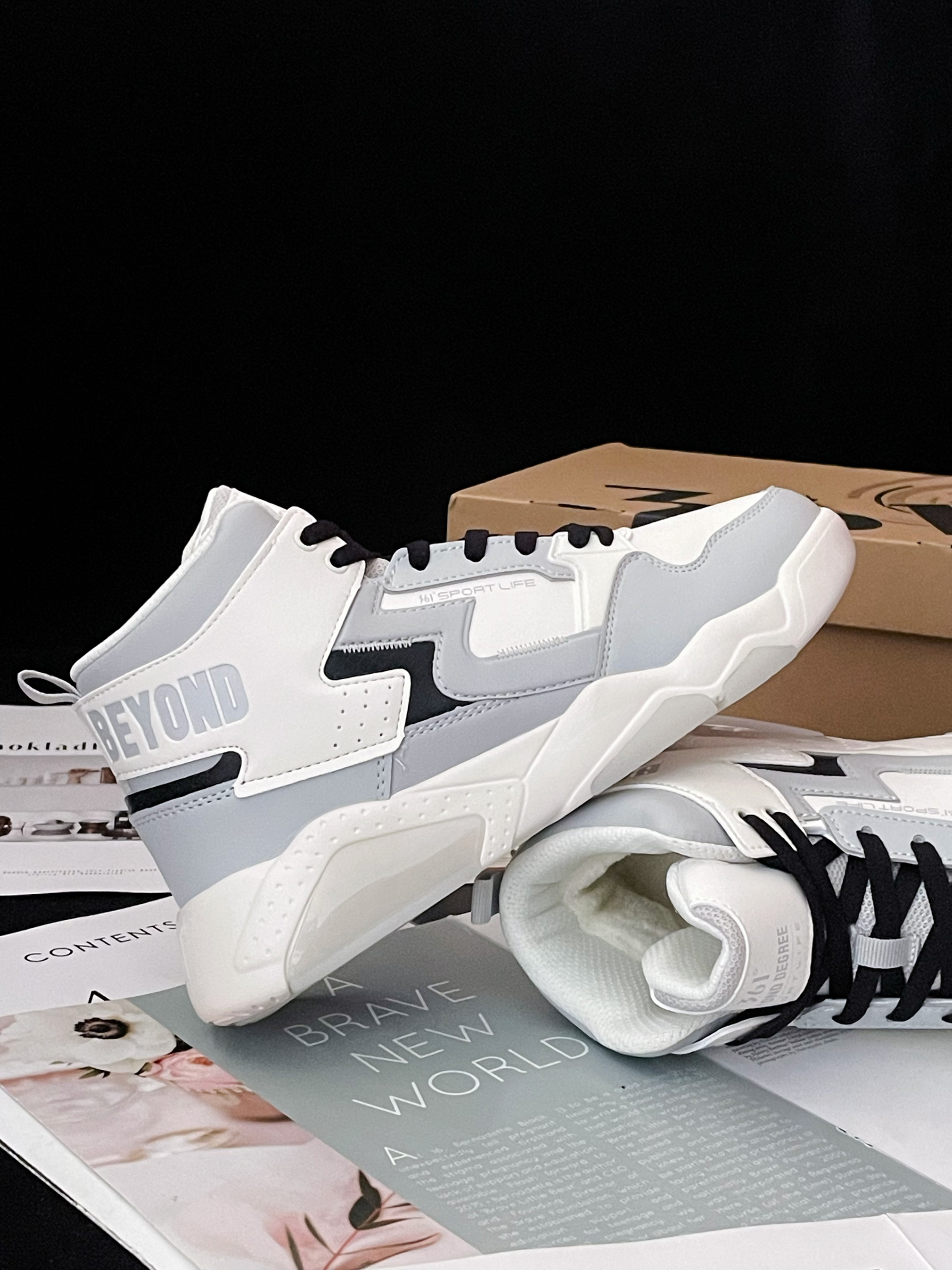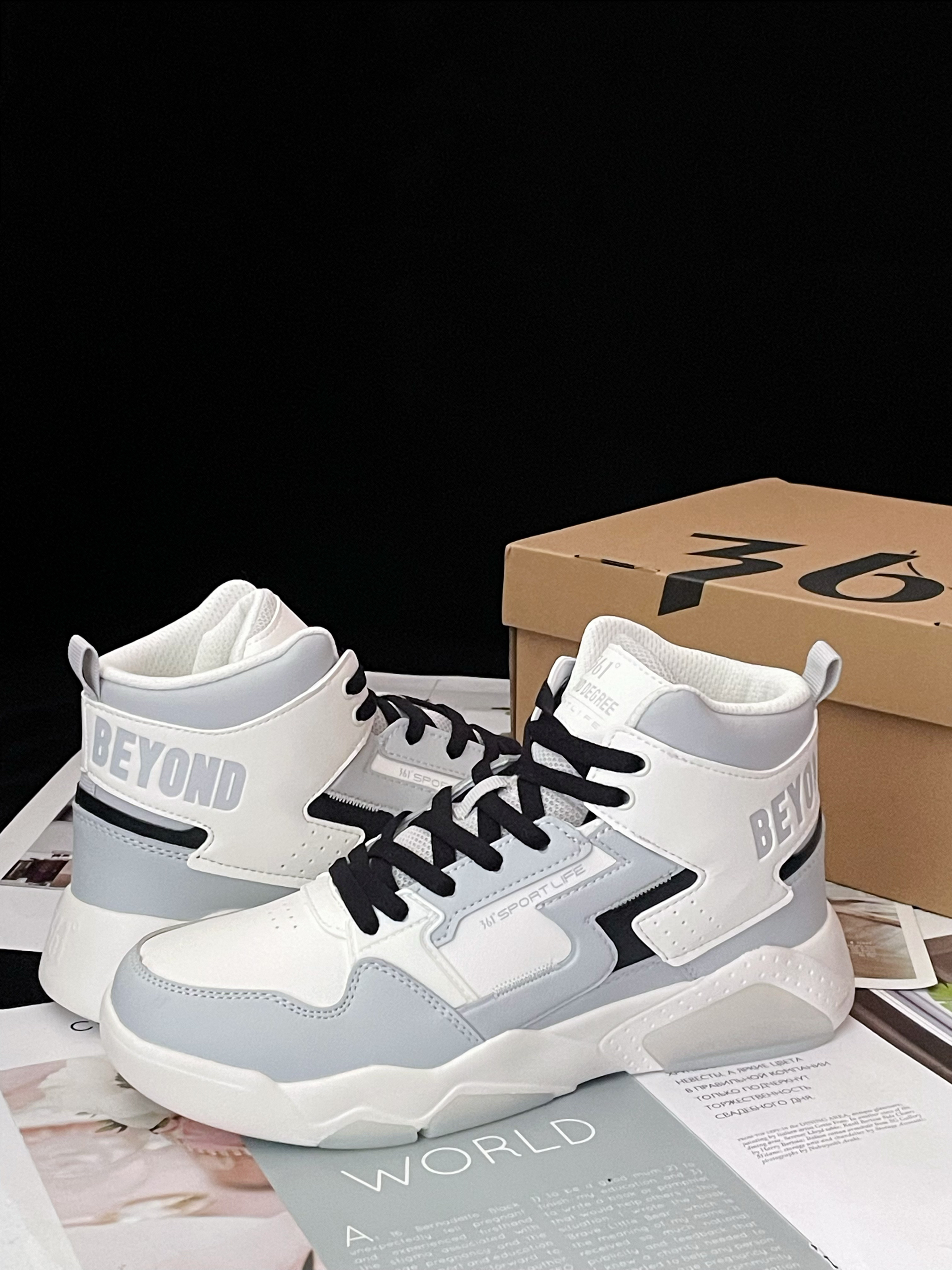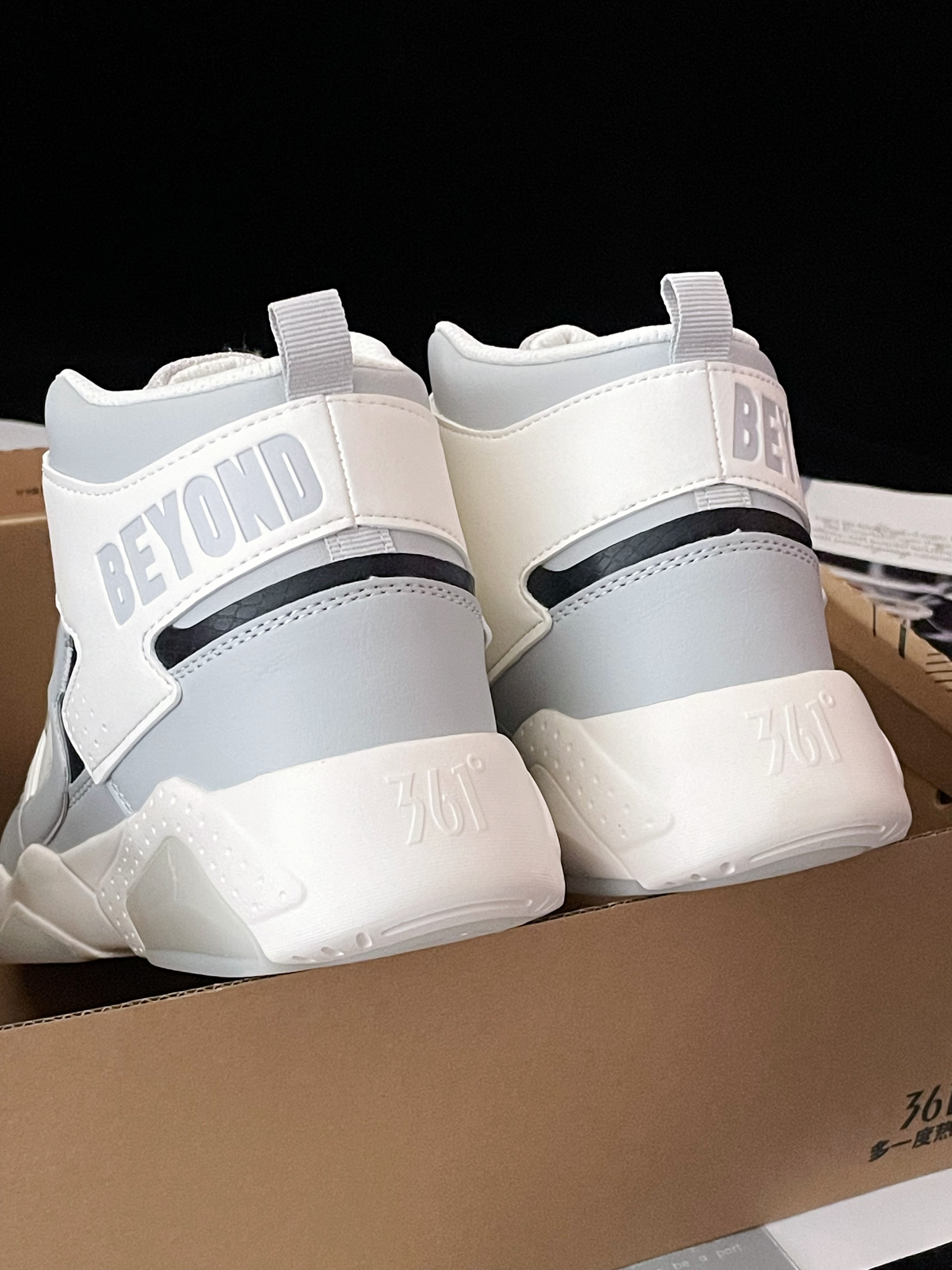 今天给大家分享这双 361° 『灰白』加绒高帮板鞋 鞋款由白色和浅灰色为主色调 整体的配色蛮清爽的 高级百搭 皮革材质的鞋面很好打理 也兼顾了良好的透气性和包裹性 高帮的鞋型搭配上保暖的加绒内里 冬天❄️穿着再也不会冻脚啦~ 泡棉中底脚感软弹 舒适轻便 还有很不错的增高效果呢~ ⚠️尺码方面不偏码 建议正码选择