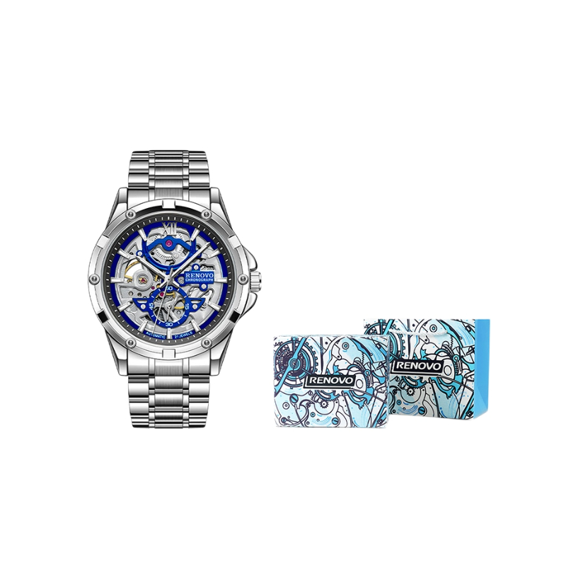 本篇笔记关联了RENOVO 探险者系列 时尚机械之心简约日历计时夜光防水镂空自动机械男女同款手表 【礼盒装】银壳蓝面等商品,为用户提供真实的使用体验和购买参考。