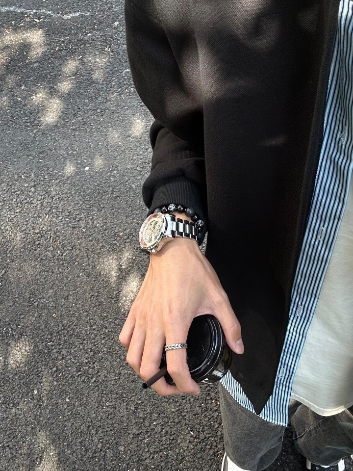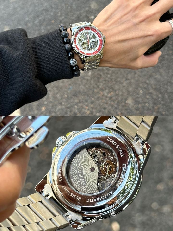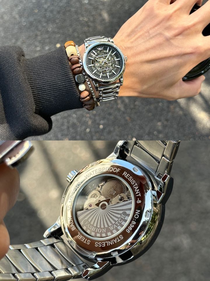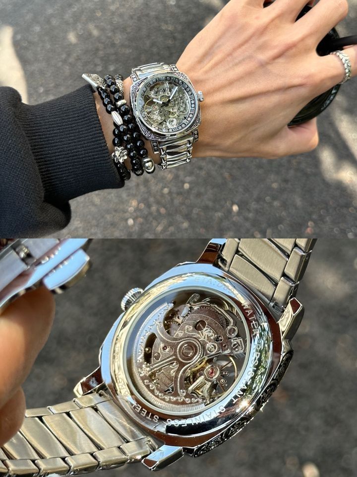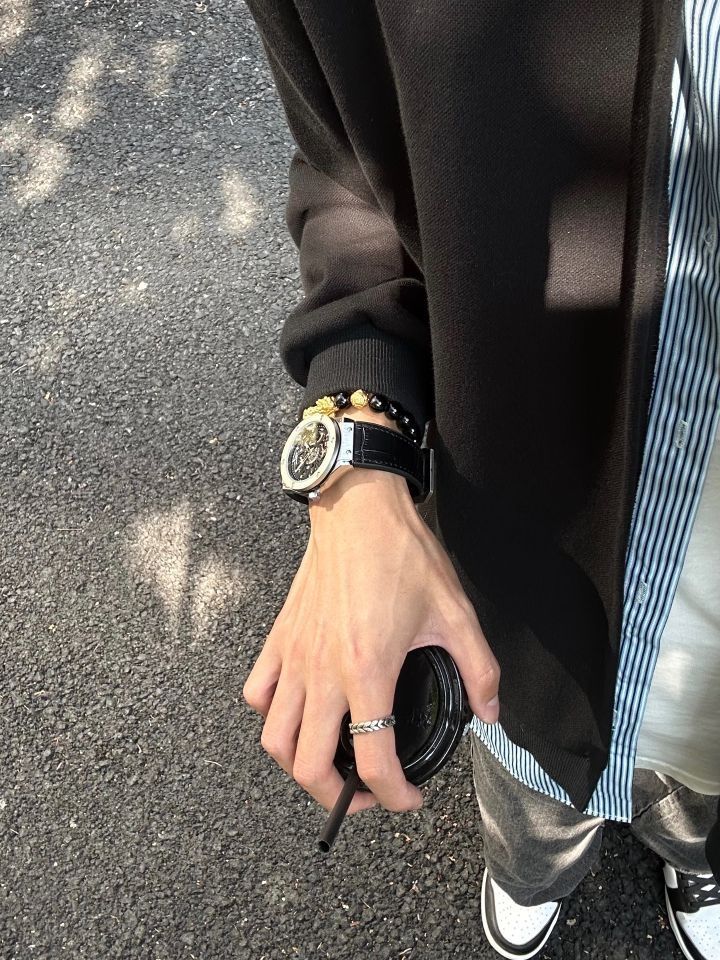 我就说最近很快乐似的 是穿搭好看的原因 还喜欢用配饰装饰下自己 用手表和手串来更换心情 分享几款近期的手搭子 钢质表有黑白灰三盘,机械感到位 是大气稳重~通勤日子居多再适合不过 另一个硅胶款 休闲时戴有个性质感都还行!功能设计也算方便