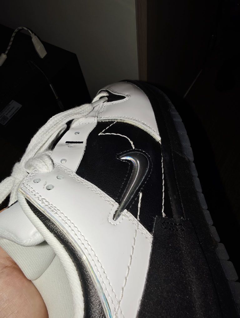 这双黑白熊猫搭配的dunk,简直就是所有dunk里最有质感的鞋款,整体皮质包裹,细节满满,加上银色logo点缀,很耐看!