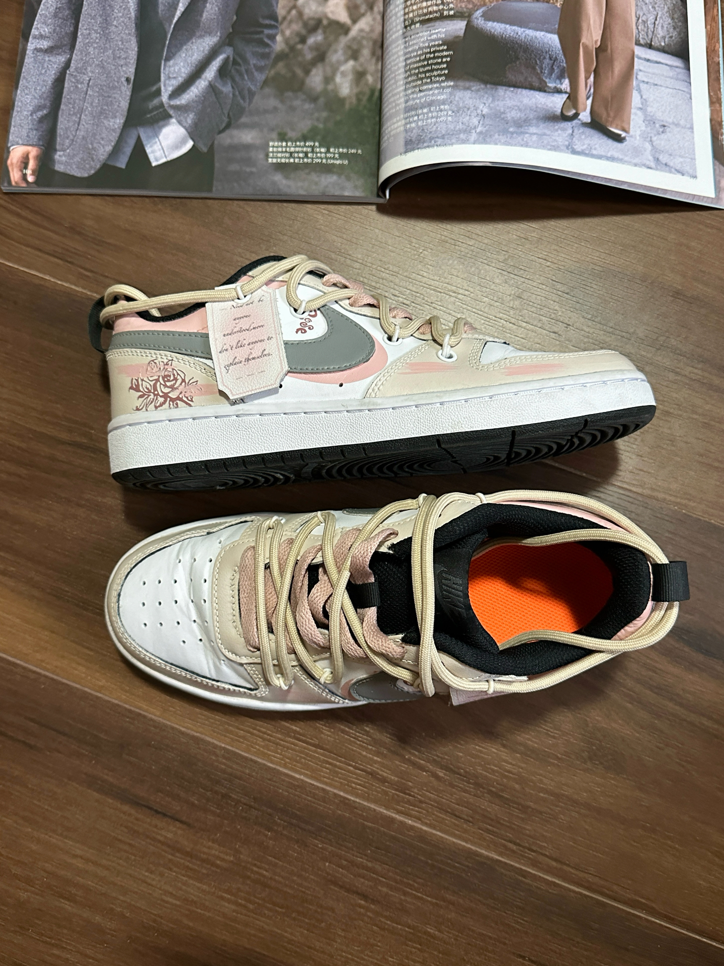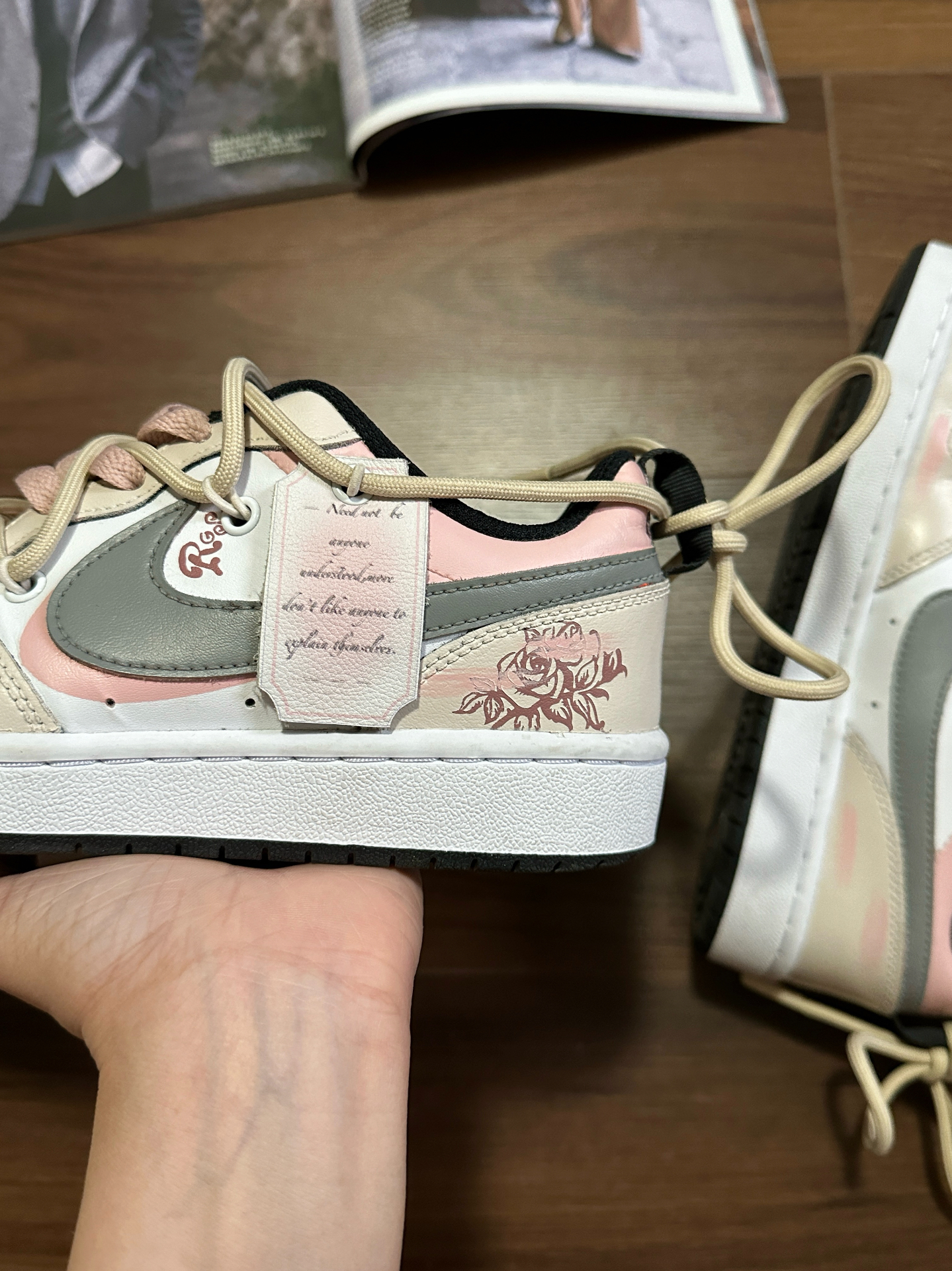高颜值的定制球鞋我推荐这双『誓言玫瑰🧚🏻』灰粉配色好看又百搭,非常适合送给女朋友☺️ 双鞋带的设计很有个性,手绘的玫瑰花心动又浪漫💕整体青春气息十足,脚感也很舒服噢~ #一脚踏入冬 #今日高颜值板鞋分享 #这双定制球鞋也太好看了 #宝藏板鞋分享nike #这双鞋我穿了很久